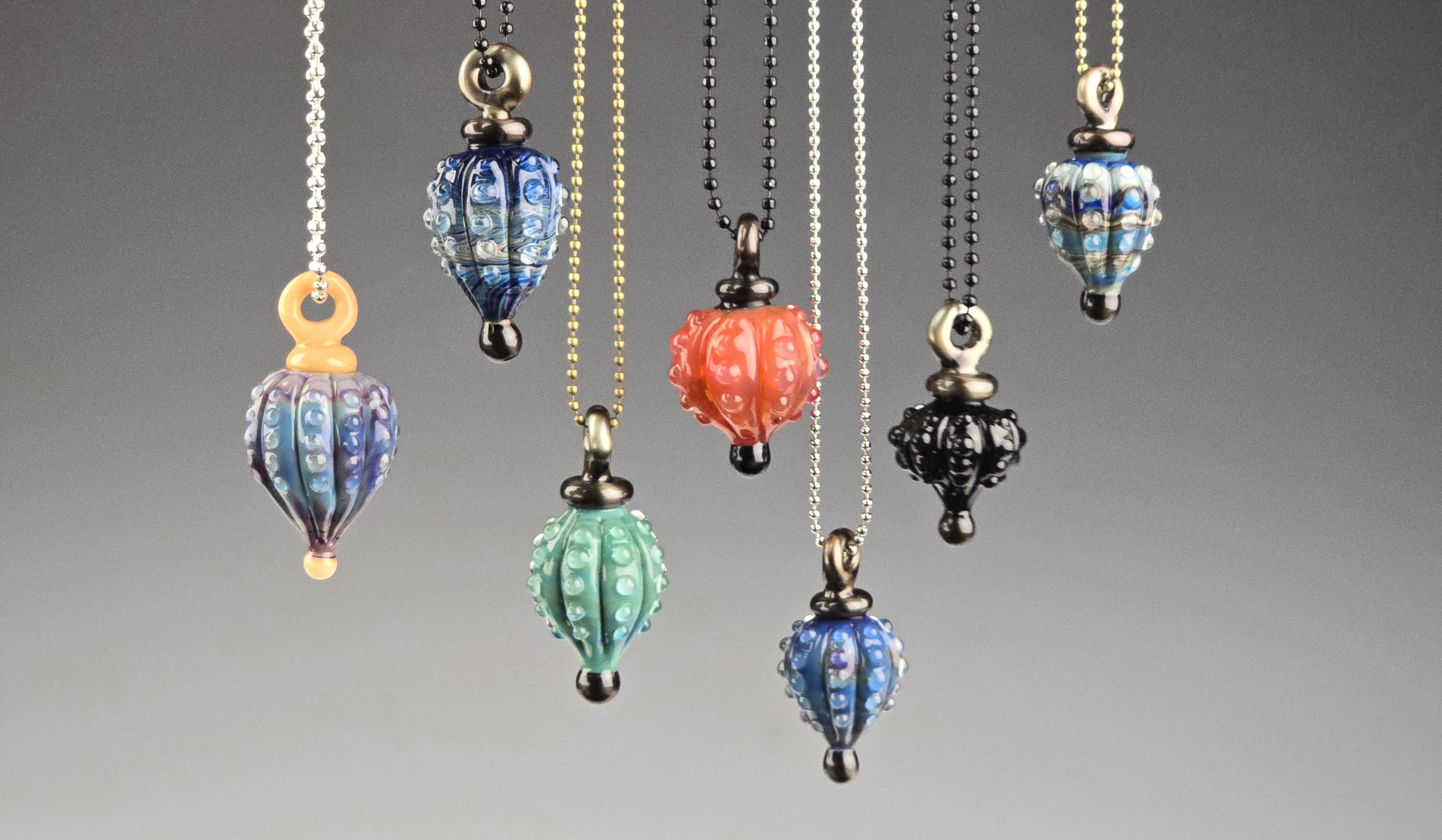 All pendants are made from COE 33 borosilicate glass and kiln-annealed at 1050°F to ensure strength and durability.