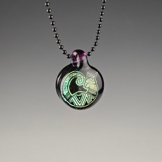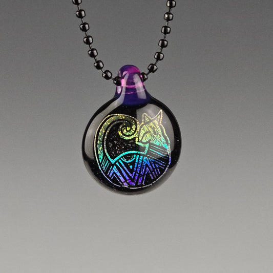 These dichroic designs are exclusive to my brand, based off my original paintings. I personally design each image and collaborate with a specialized company that laser-etches them onto sheets of dichroic glass.