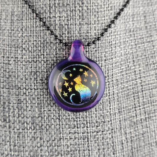 Purple Dichro Kitty Face Pentacle with Galaxy Black
