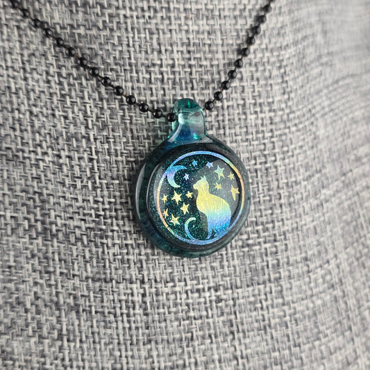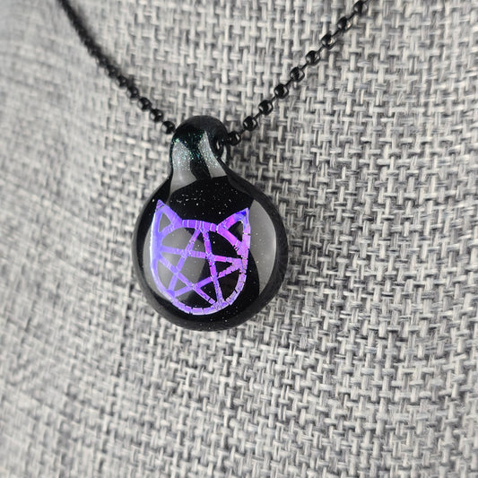 Purple Dichro Kitty Face Pentacle with HBL and Galaxy Black