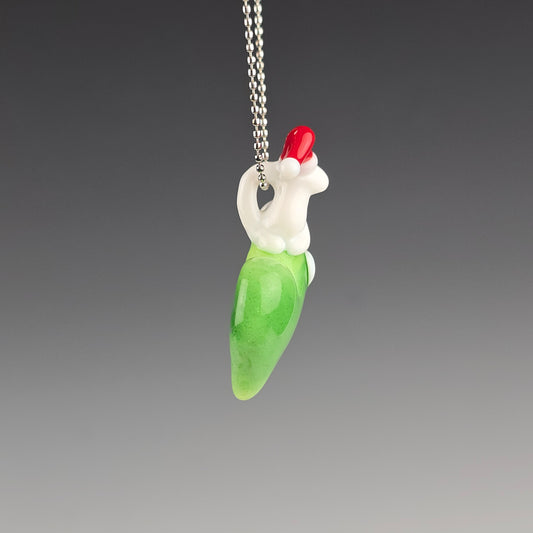 All of my pendants are individually handcrafted from COE 33 borosilicate glass—no molds are used. Each piece is shaped by hand using graphite tools and then kiln-annealed at 1050°F to ensure strength and durability.