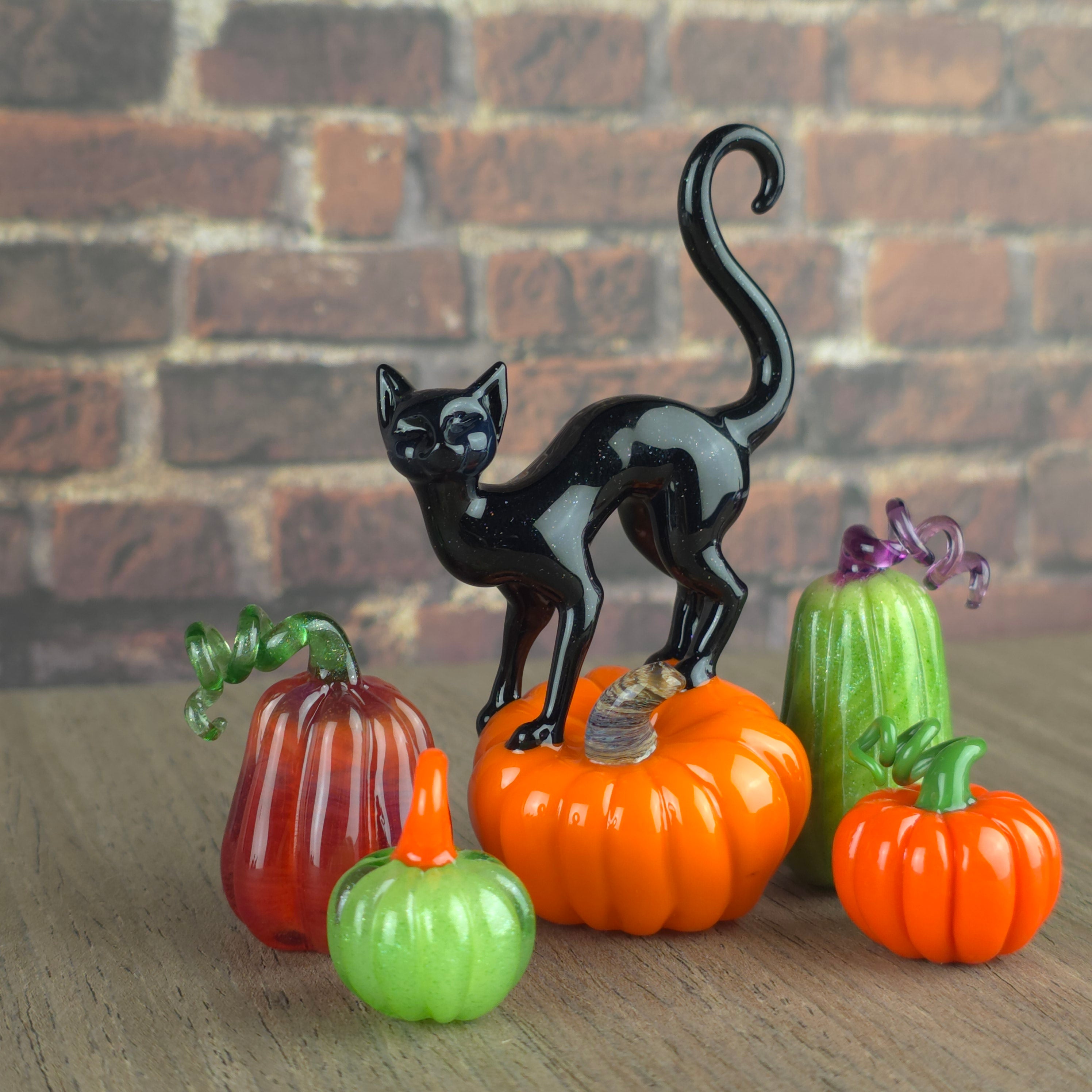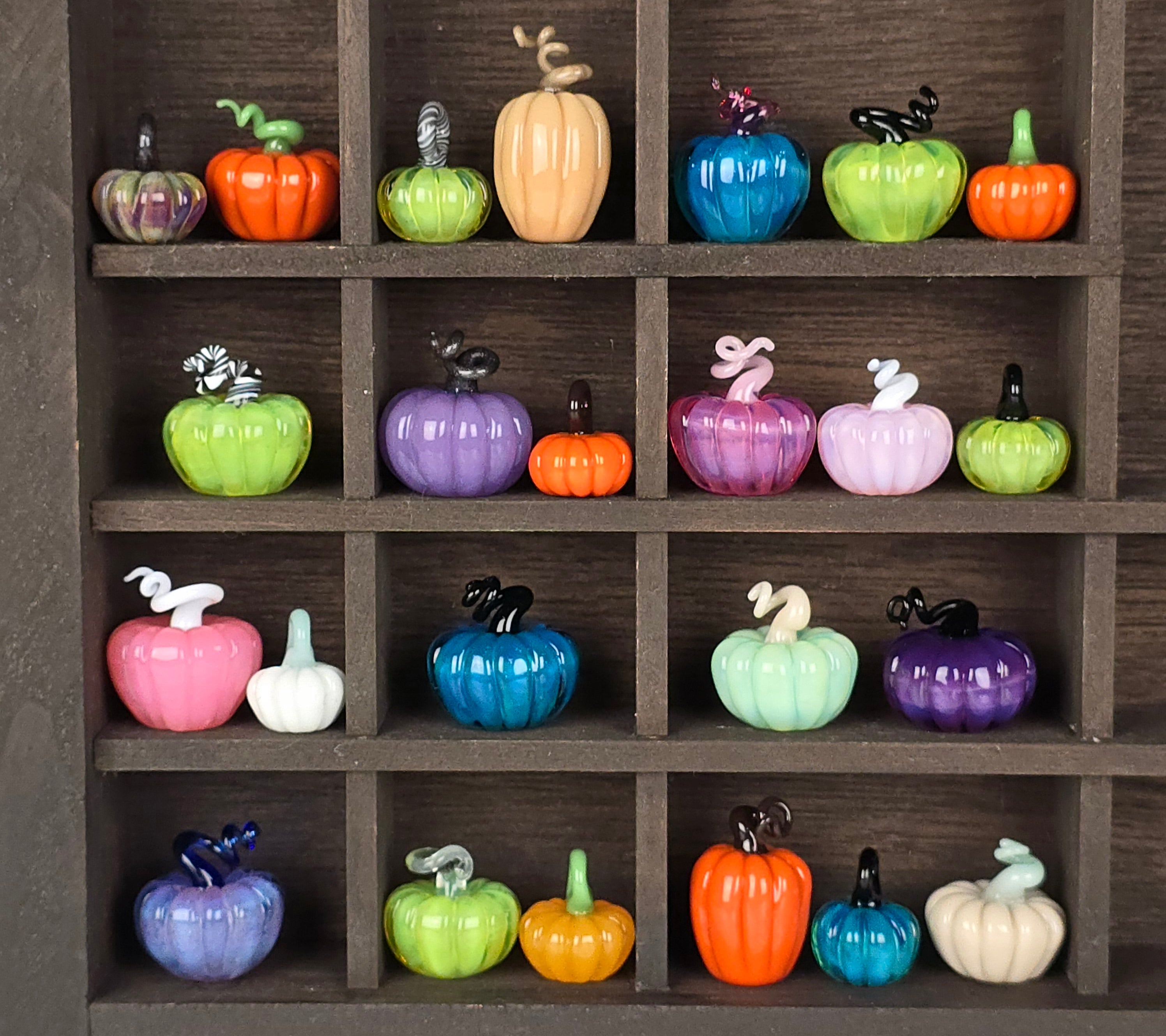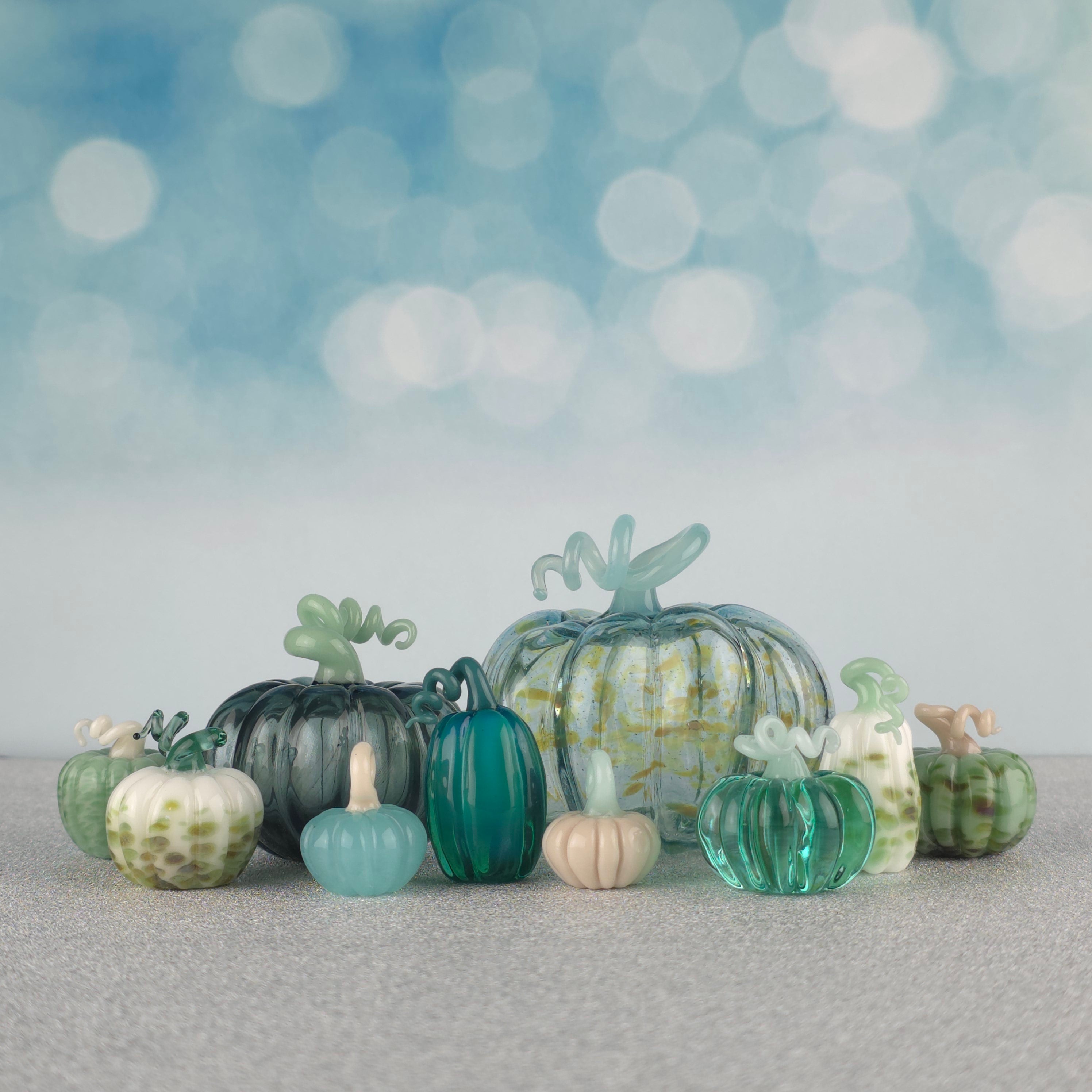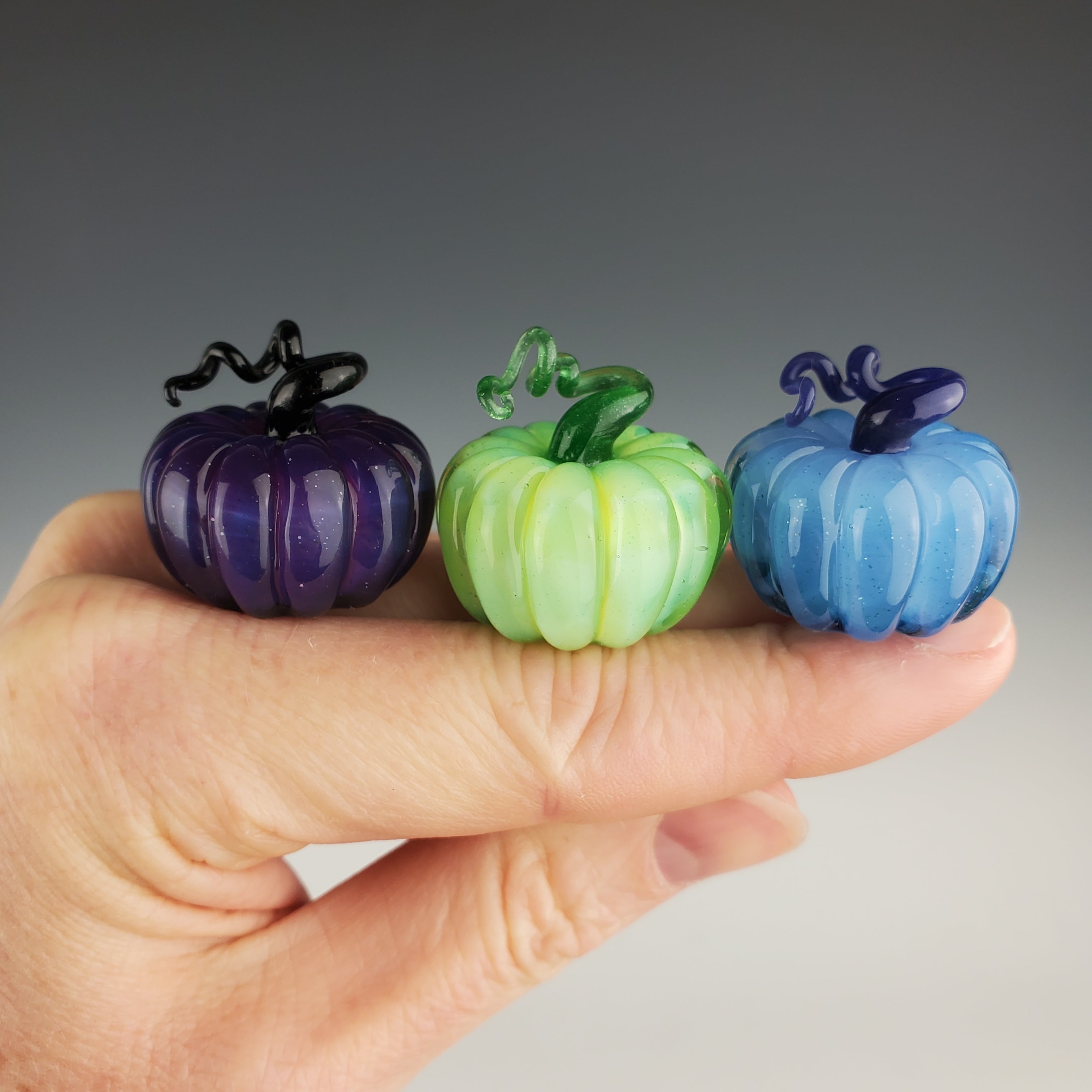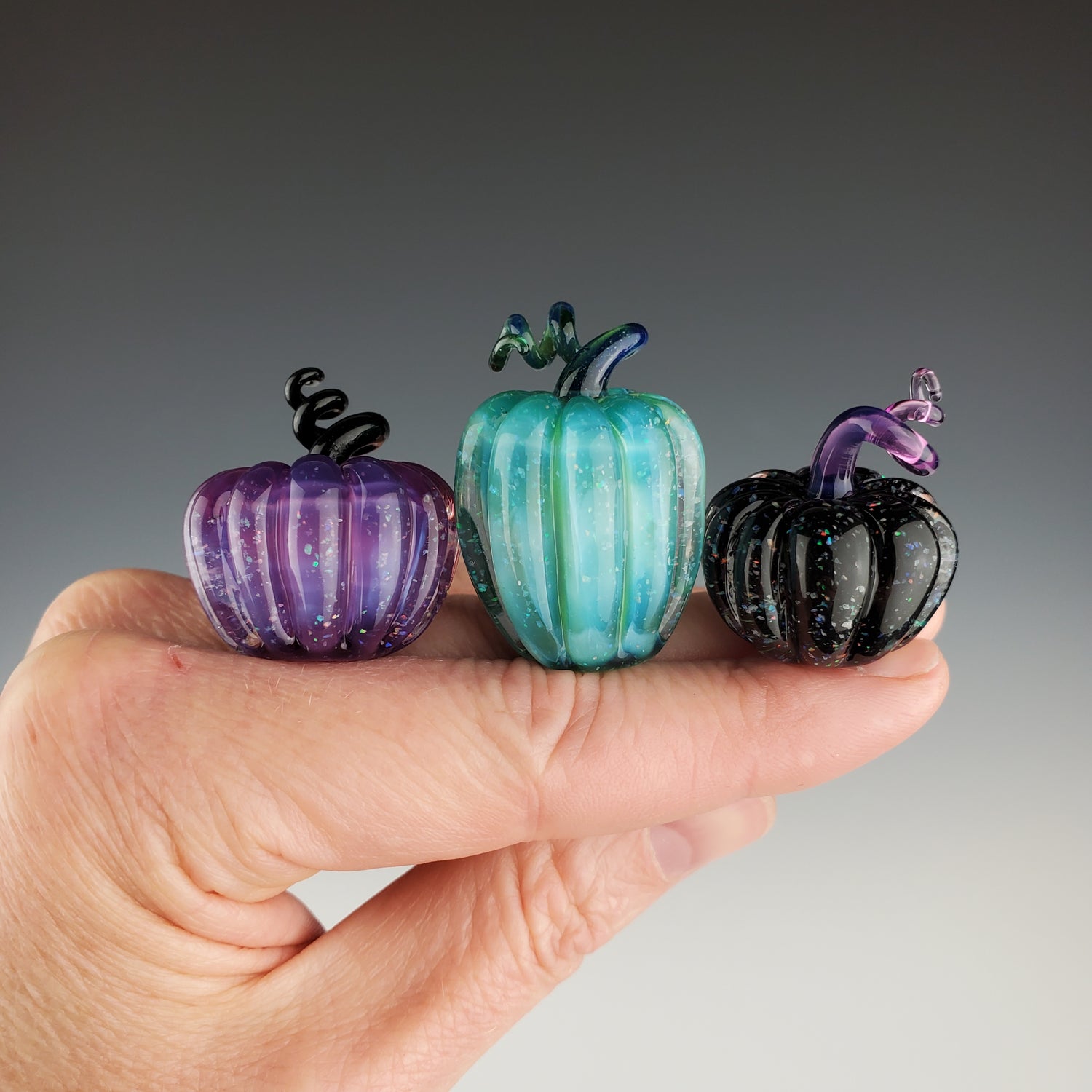 These fun colored pumpkins feature crushed synthetic opals that glimmer an array of colors as the light hits them.