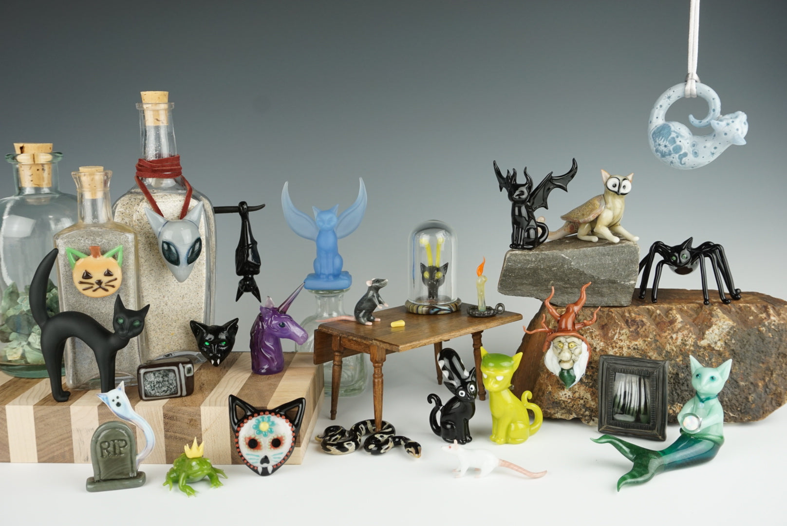 Trinket, knickknack, tchotchke, or keepsake— Whatever you like to call them, sometimes I create small, one-of-a-kind sculptures designed to entice feelings of joy and whimsy wherever they end up.