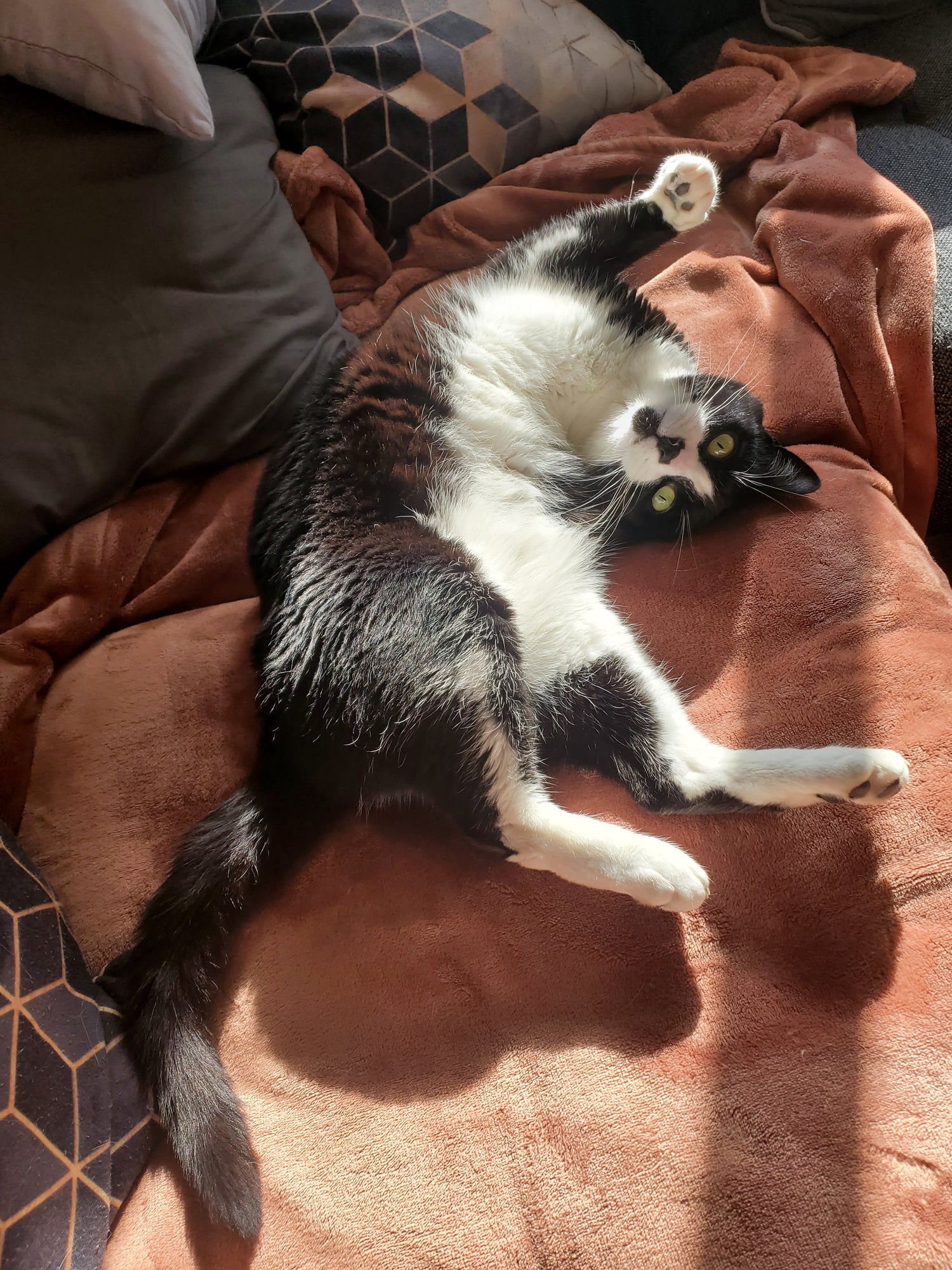 He’s a typical goofy tuxedo and doesn’t miss his arm one bit!