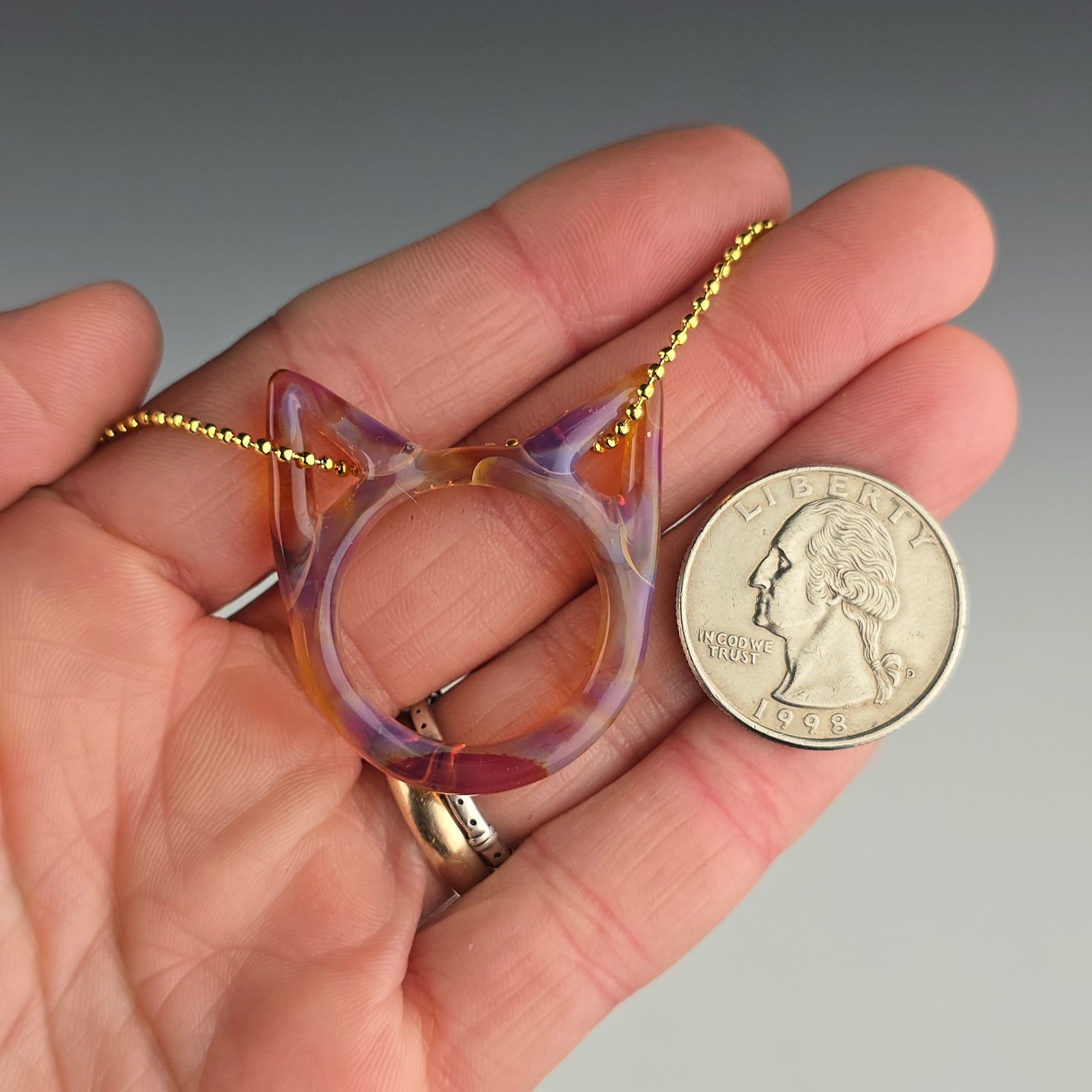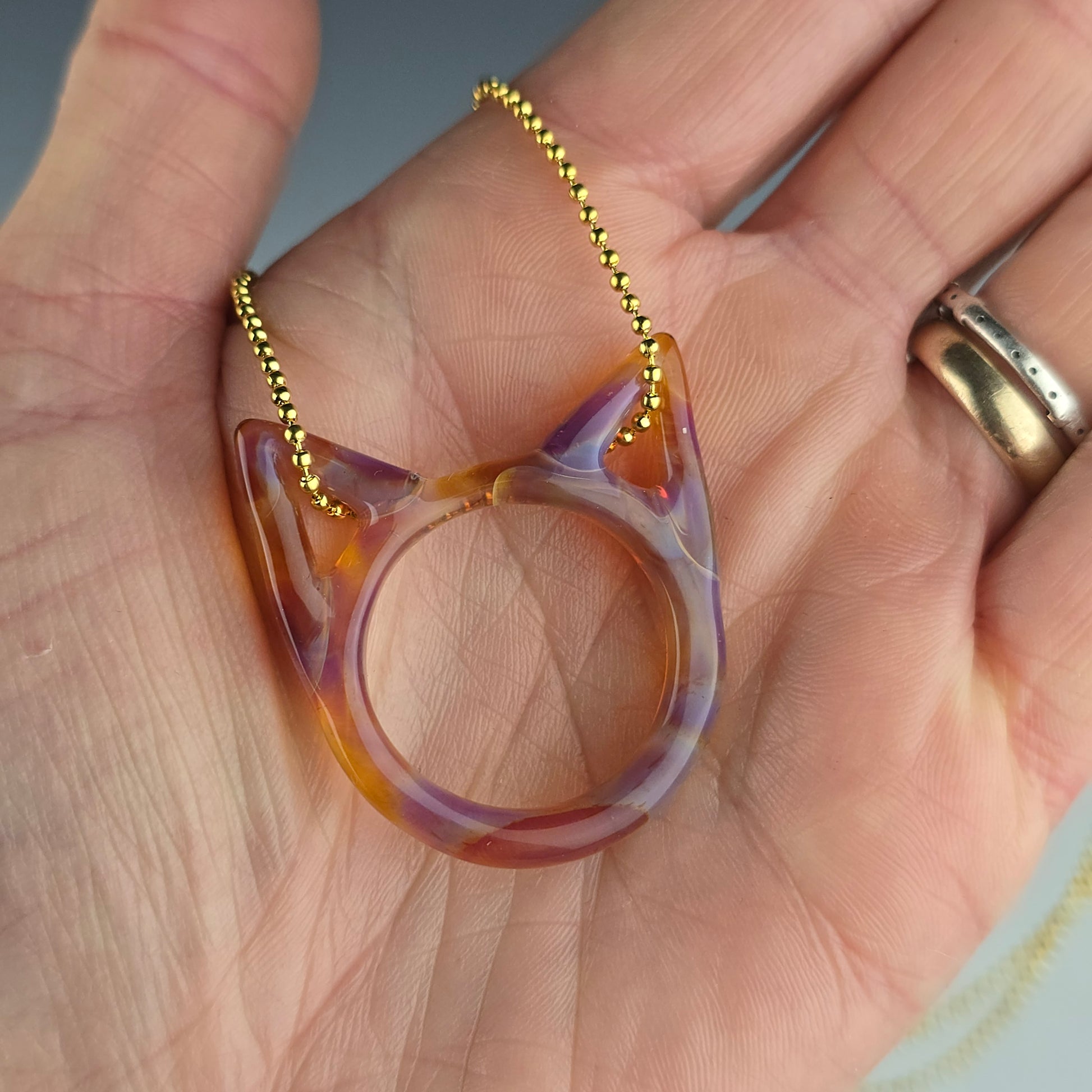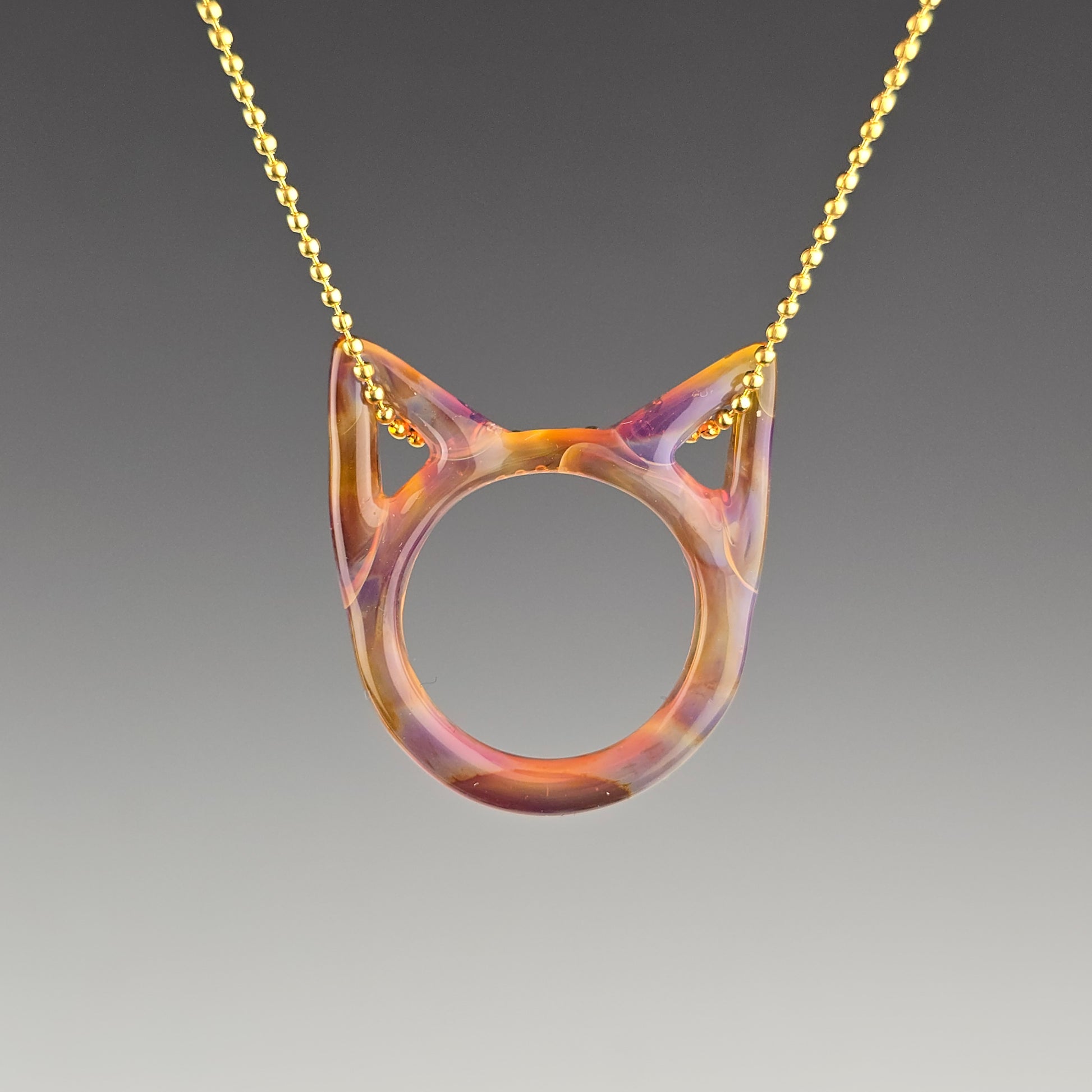 All Kitty Face pendants are individually handcrafted from COE 33 borosilicate glass—no molds are used. Each piece is shaped by hand using graphite tools and then kiln-annealed at 1050°F to ensure strength and durability.