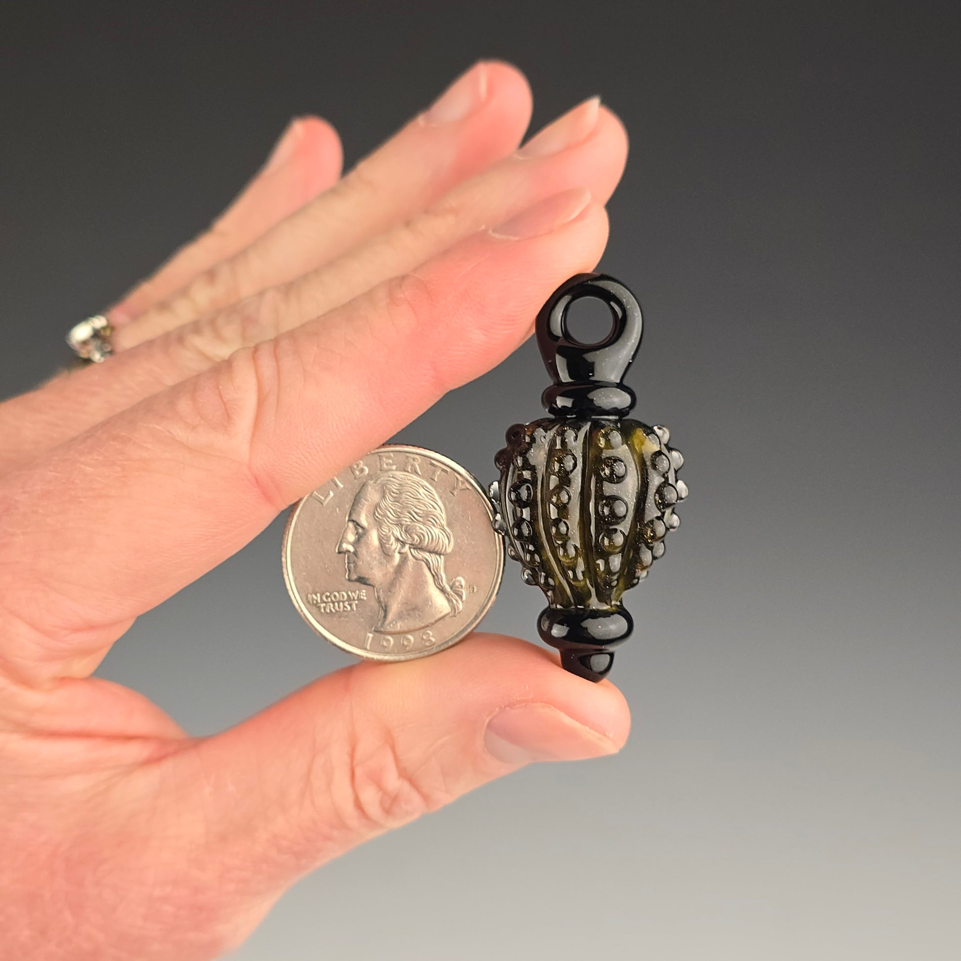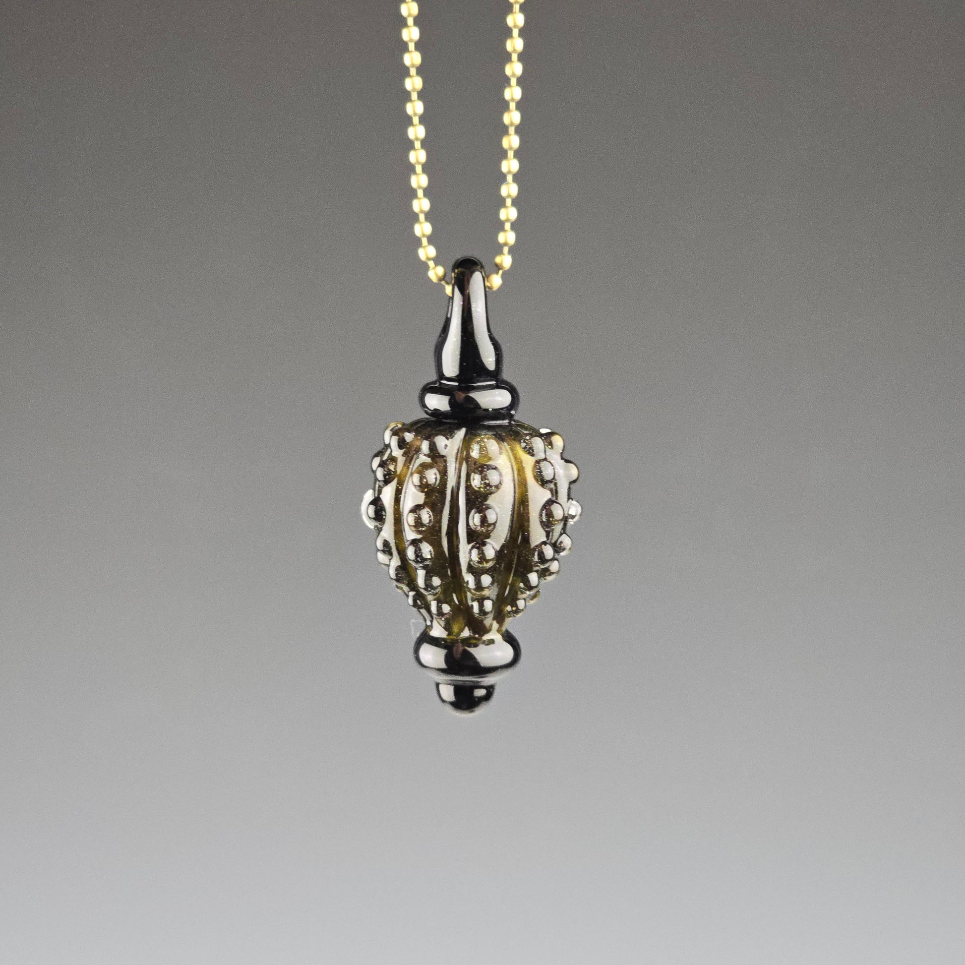 Comes boxed with a ball chain. If you’d like a different color than the one shown or prefer a colored hemp cord instead, please let me know in the special instruction box at the bottom of the cart page before you checkout.