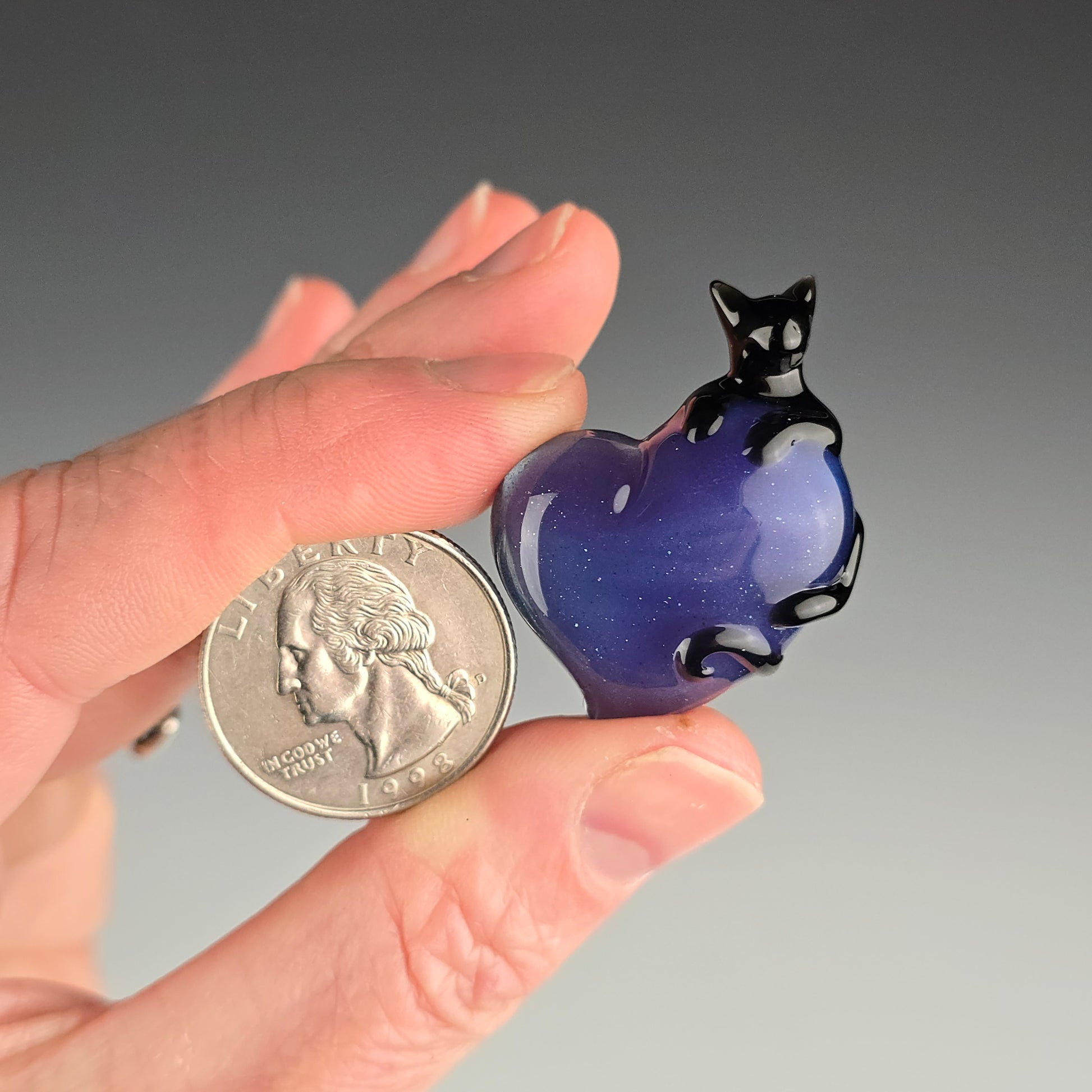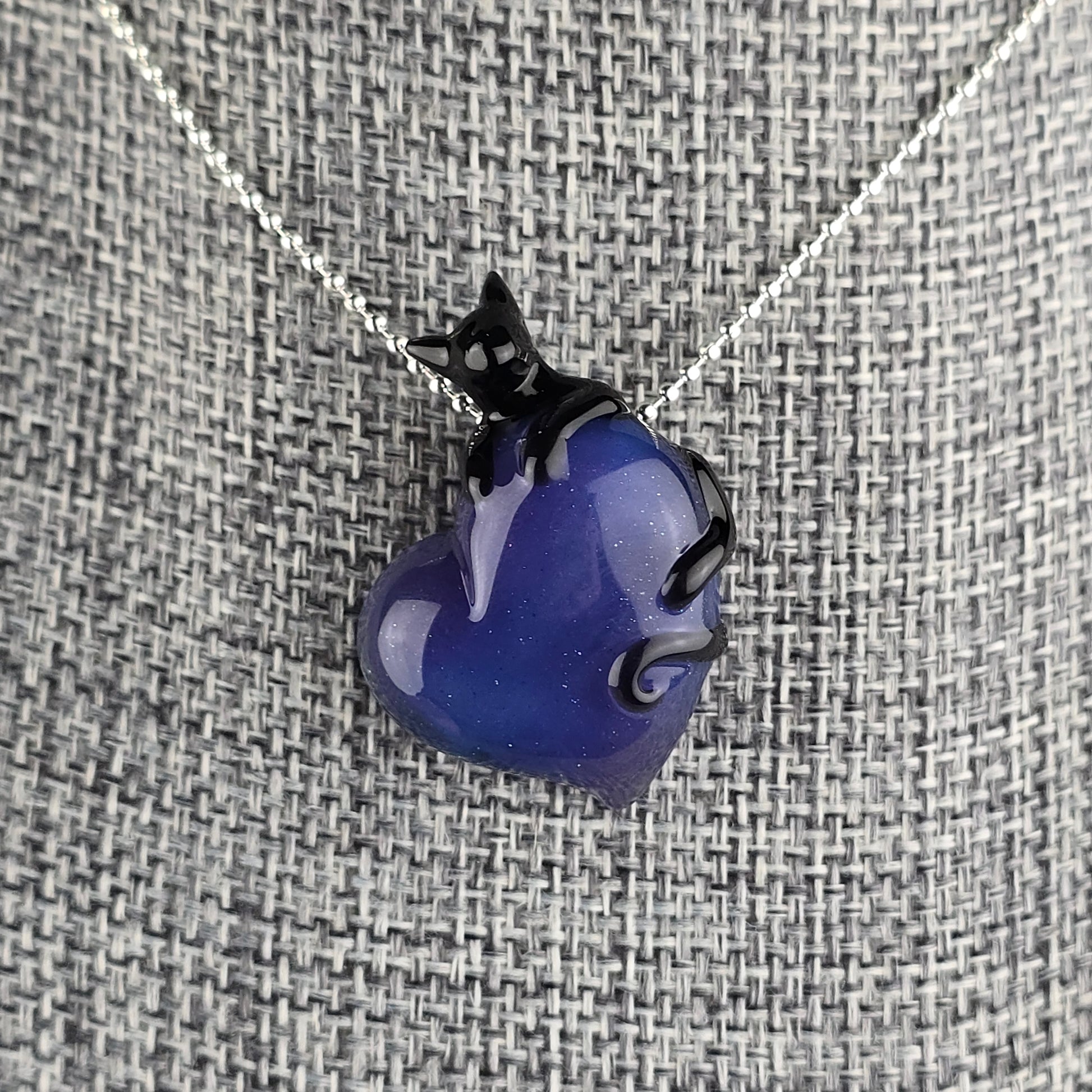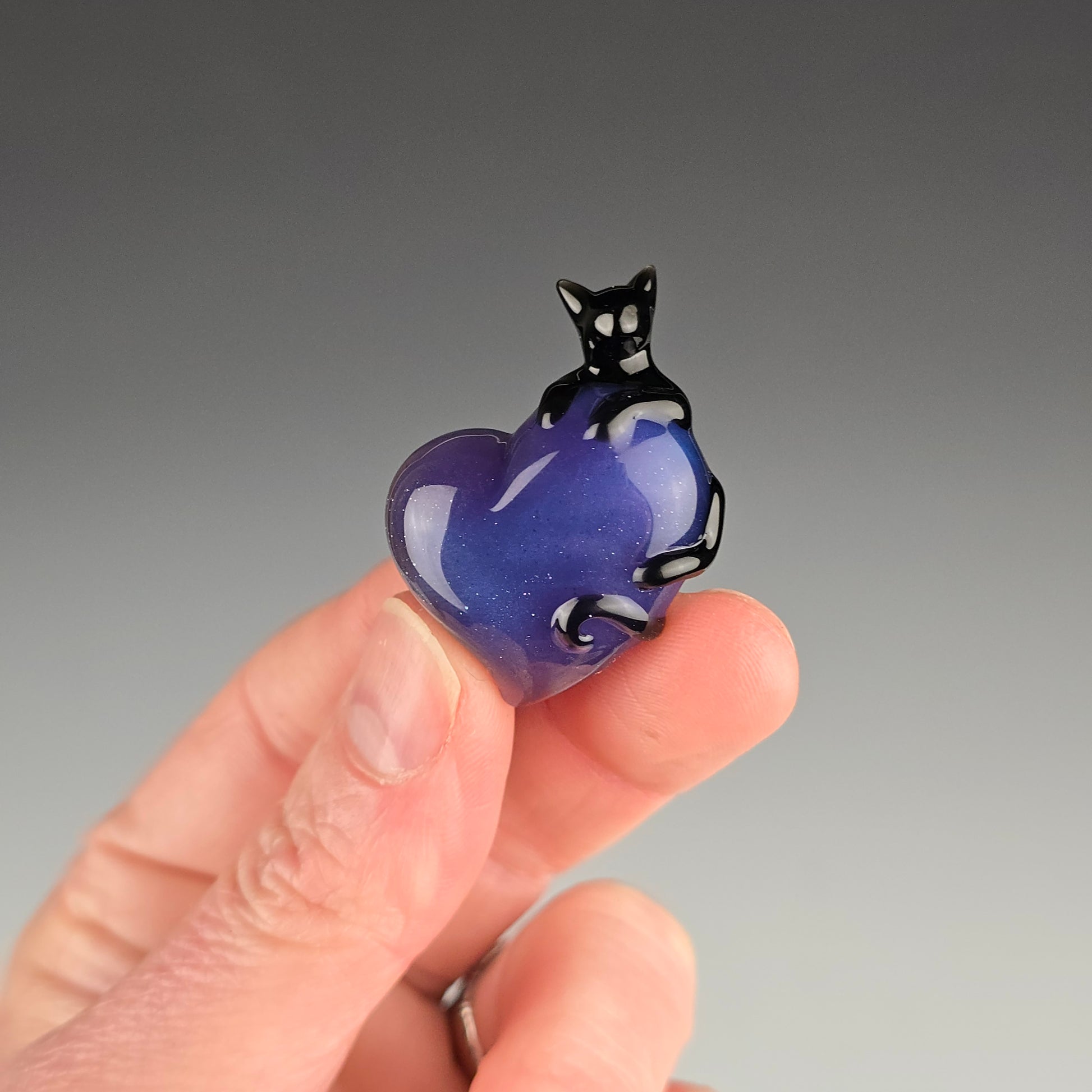 Onyx Black Clingy Kitty on a Blue Stardust over Wildberry Heart. See photos for size reference.