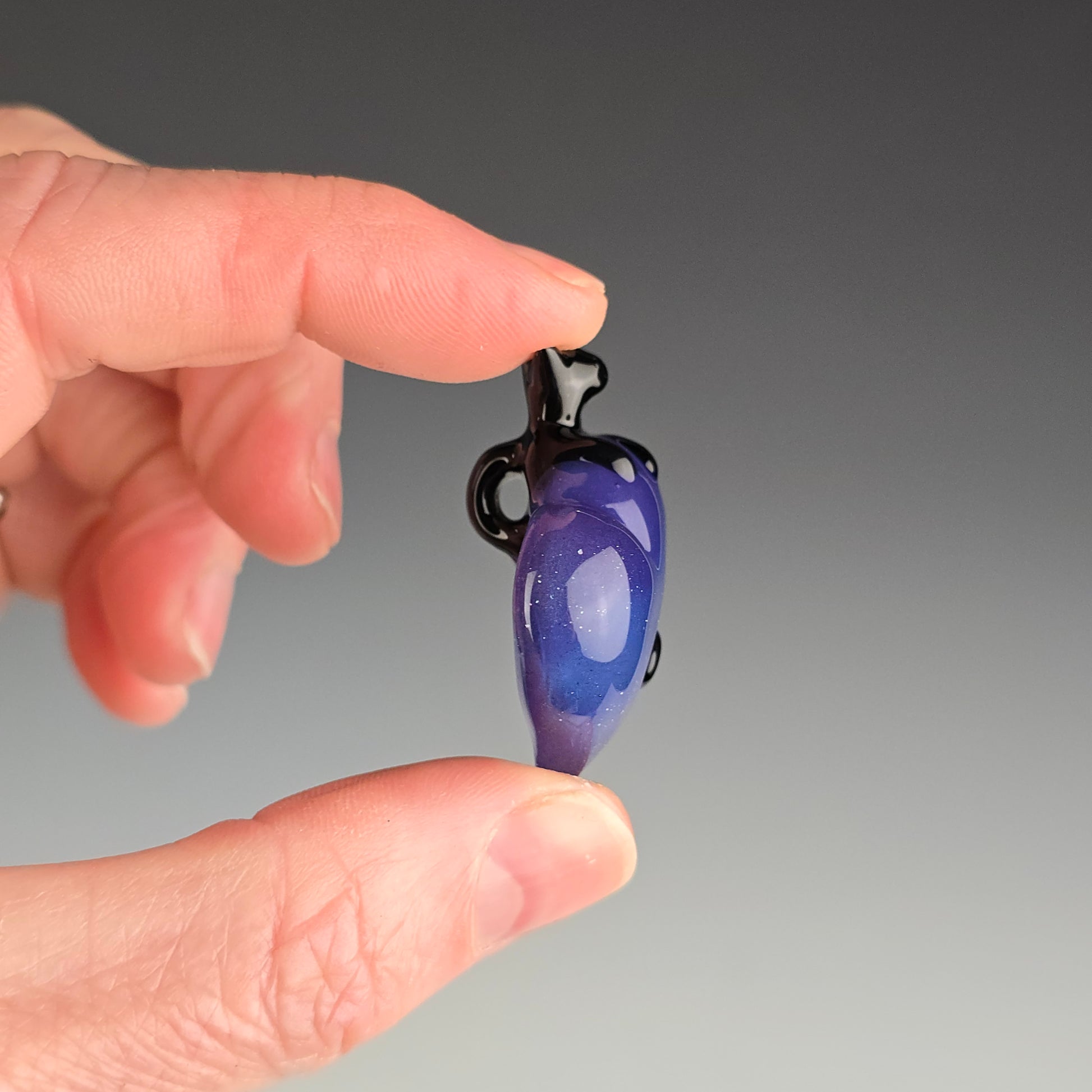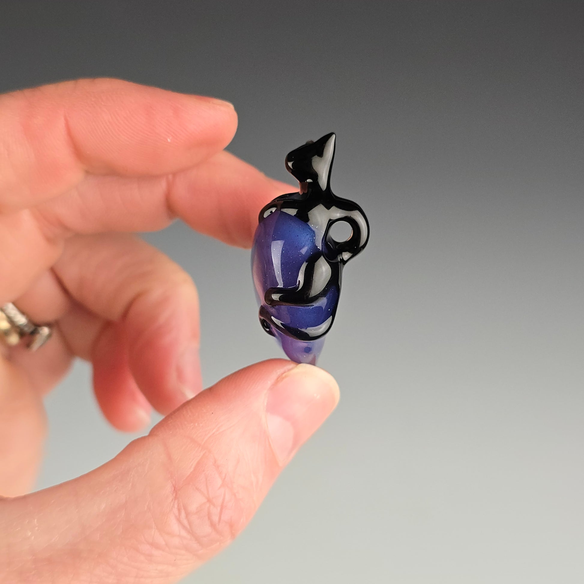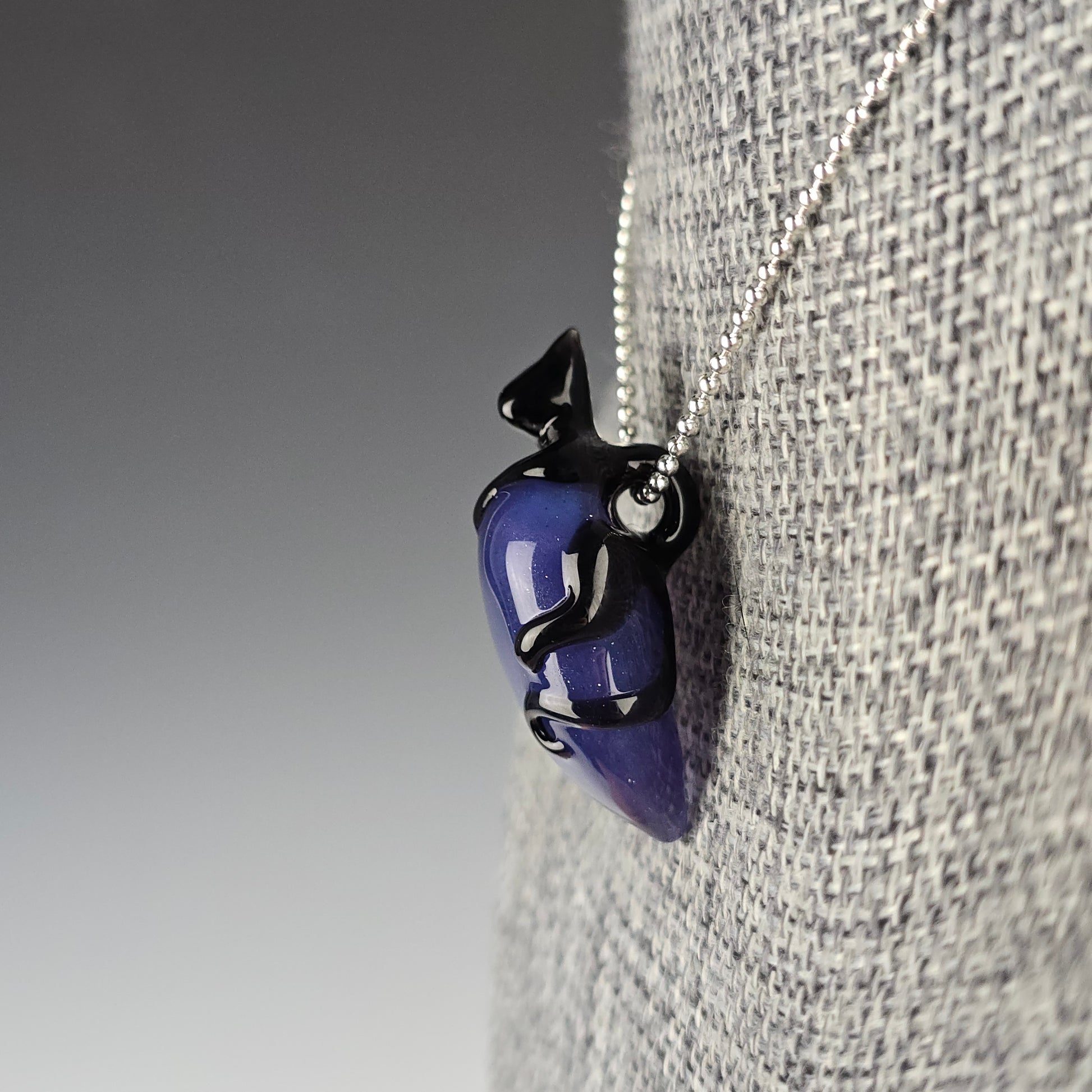Onyx Black Clingy Kitty on a Blue Stardust over Wildberry Heart. See photos for size reference.