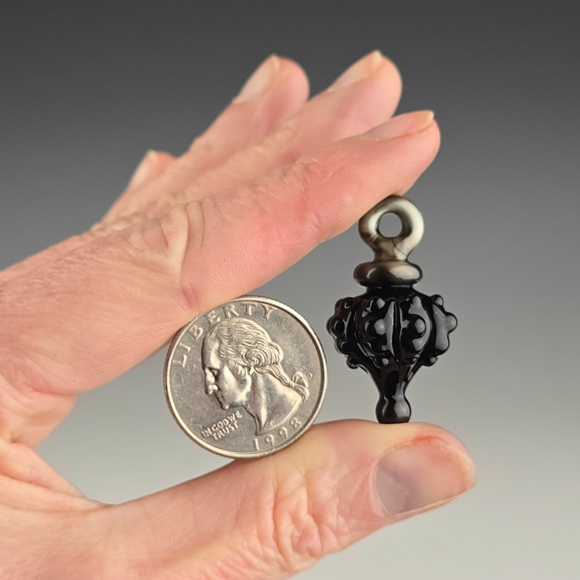 Comes boxed with a ball chain. If you’d like a different color than the one shown or prefer a colored hemp cord instead, please let me know in the special instruction box at the bottom of the cart page before you checkout.