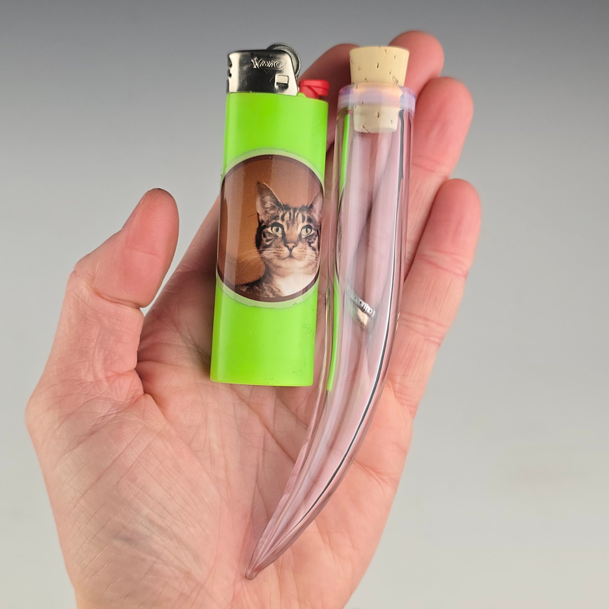 While this keeper was specifically designed in the shape of a whisker, it can hold more than just found whiskers. It can also serve as a unique place to store other cherished keepsakes, such as fur, kitten teeth, or a small amount of cremains.