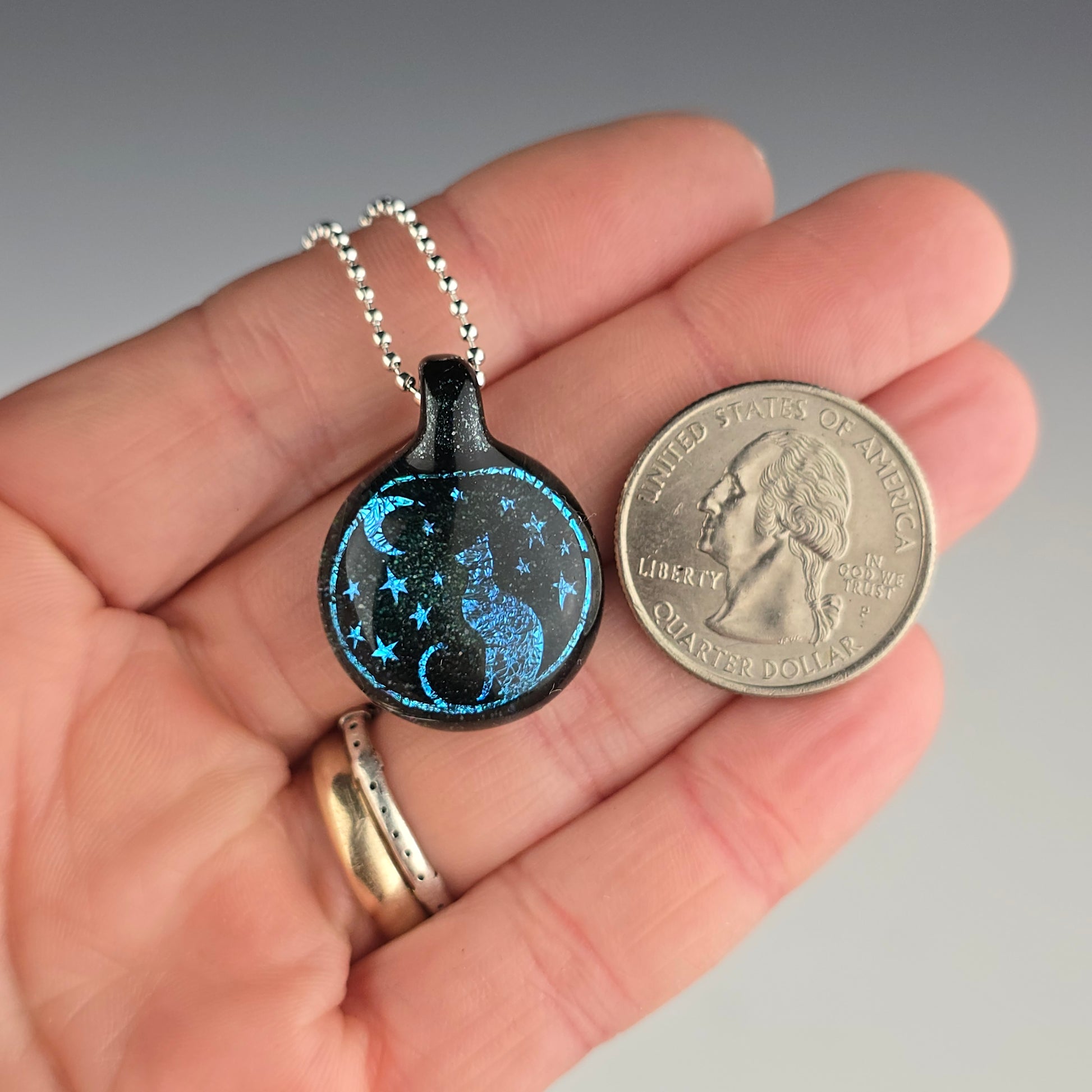 Comes boxed with a ball chain & sticker. If you’d like a different color than the one shown or prefer a colored hemp cord instead, please let me know in the special instruction box at the bottom of the cart page before you checkout.