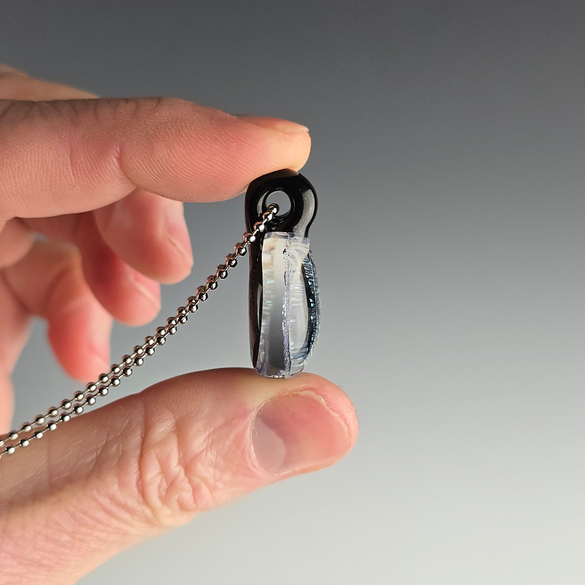 Comes boxed with a ball chain & sticker. If you’d like a different color than the one shown or prefer a colored hemp cord instead, please let me know in the special instruction box at the bottom of the cart page before you checkout.