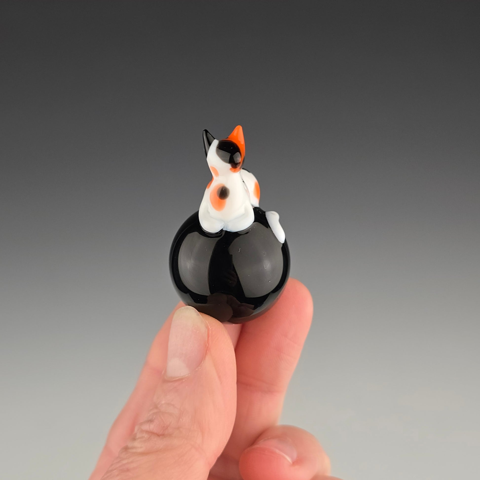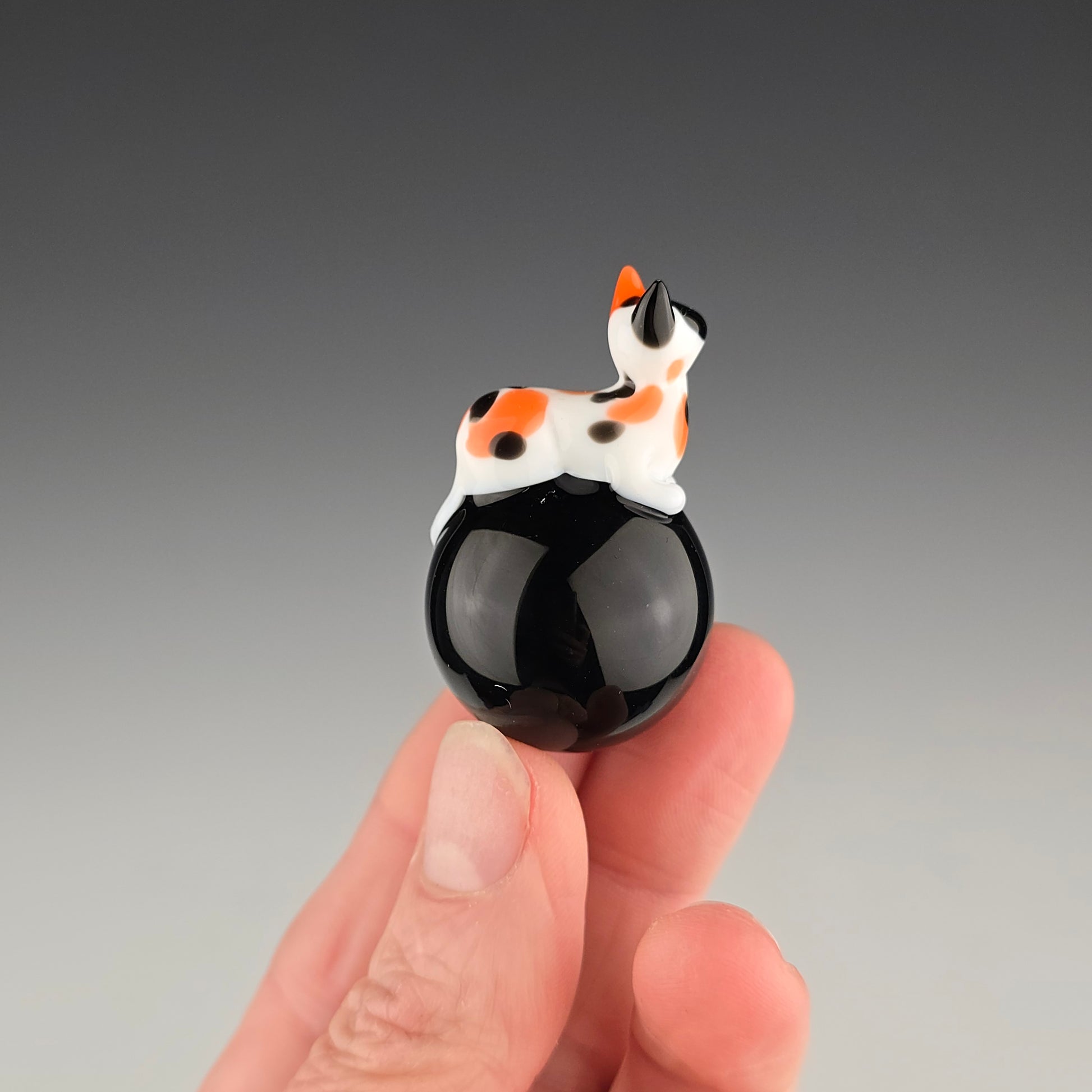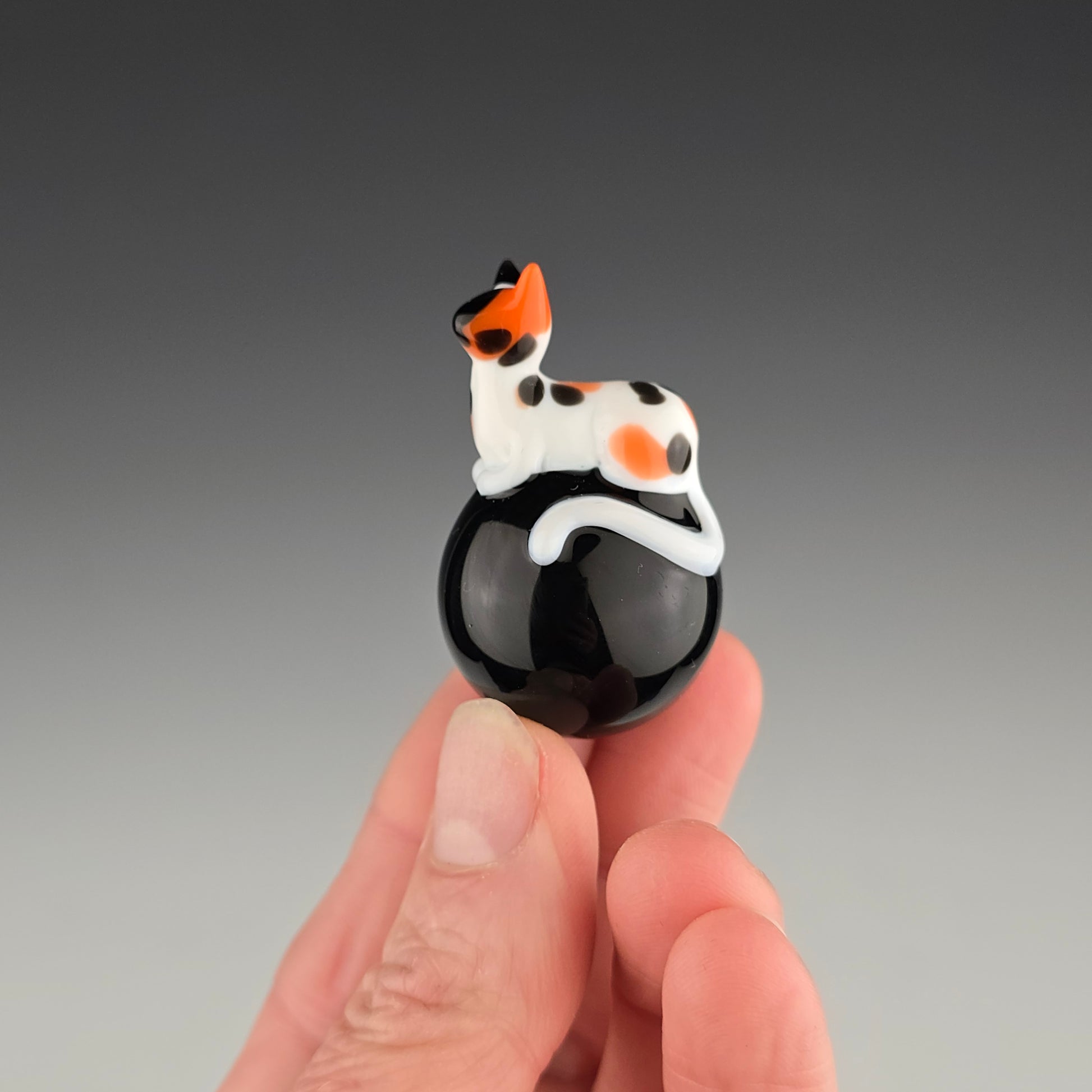 This 25.5mm Meowble is made with Onyx by Northstar and has a Calico loaf. Comes boxed with a sticker & rubber grommet to use as a marble stand.