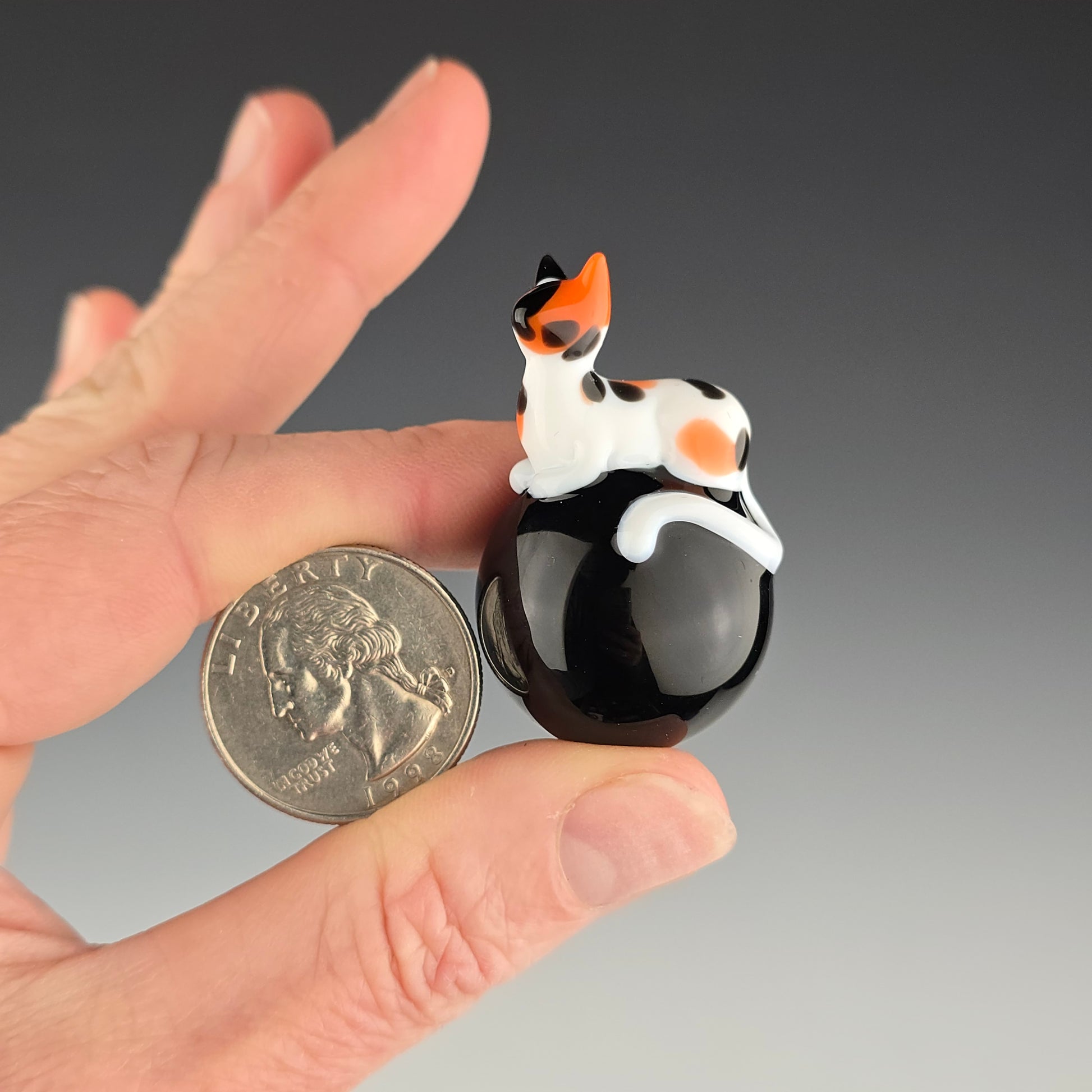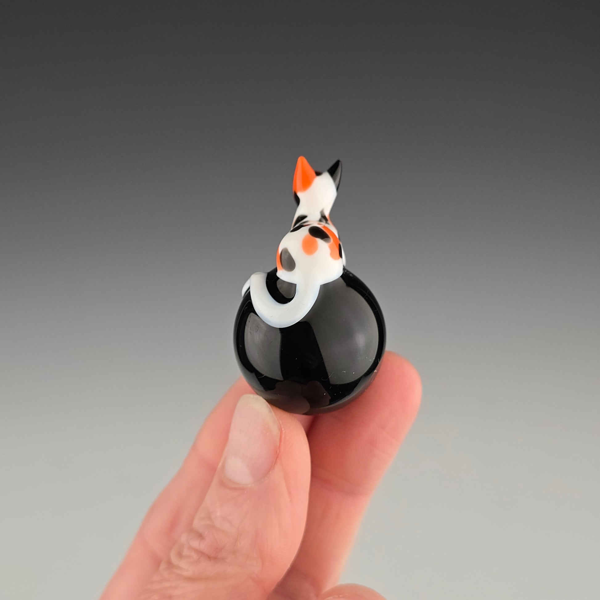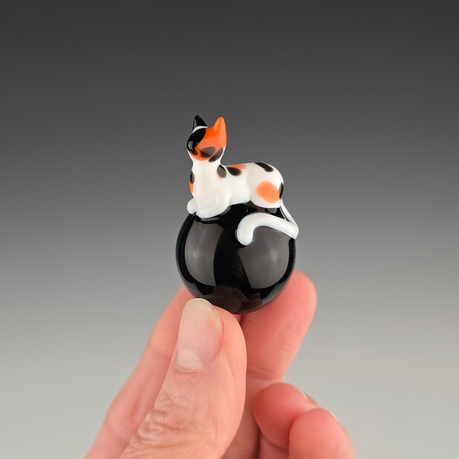 This 25.5mm Meowble is made with Onyx by Northstar and has a Calico loaf. Comes boxed with a sticker & rubber grommet to use as a marble stand.