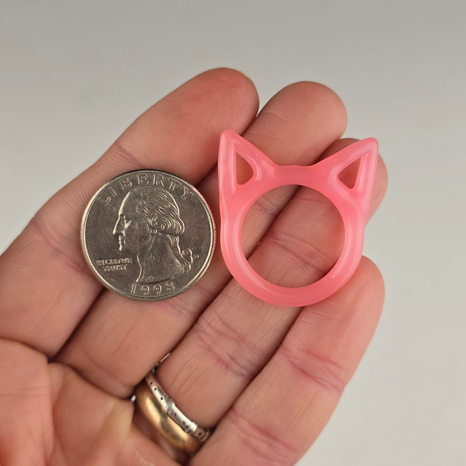 Made with CFL Shifty Peach Satin so this kitty shifts from a vibrant pink to pale pastel peach depending on the light source. This color is so hard to photograph so expect it to be slightly more vibrant than shown (I do my best to match real life color with my product photos, but this color is impossible!). See photos for size reference.