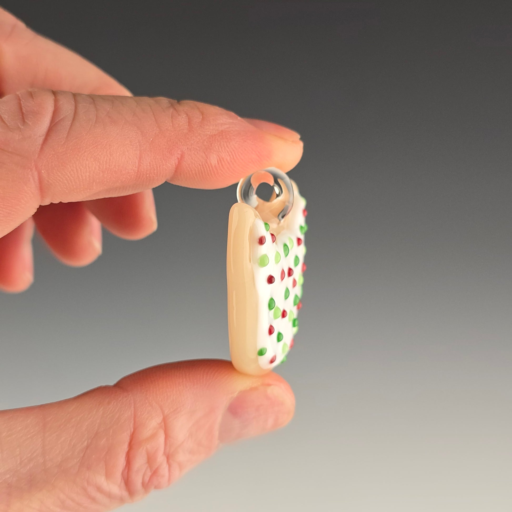 Red & Green sprinkles on a White frosted Kitty Face Sugar Cookie. See photos for size reference.