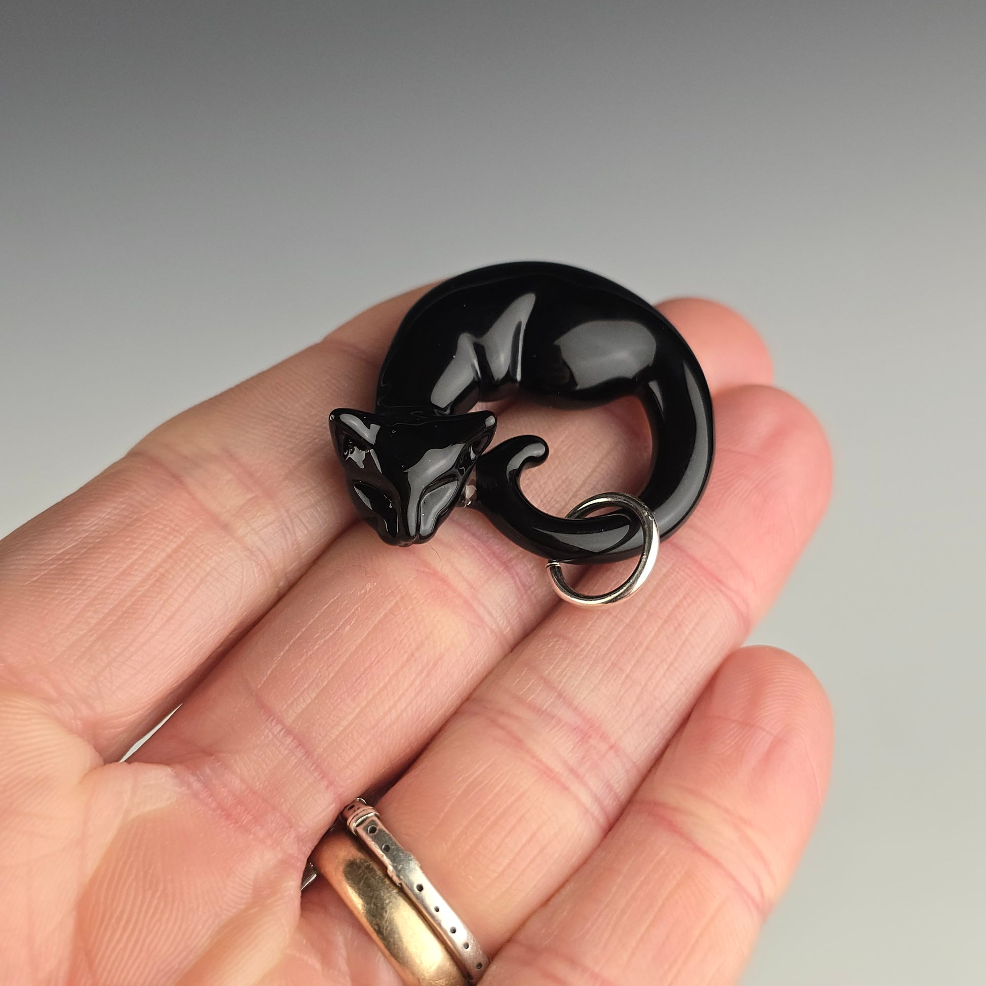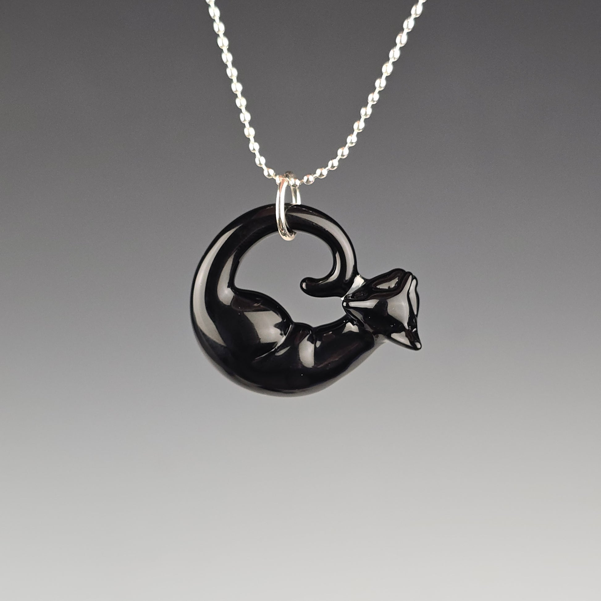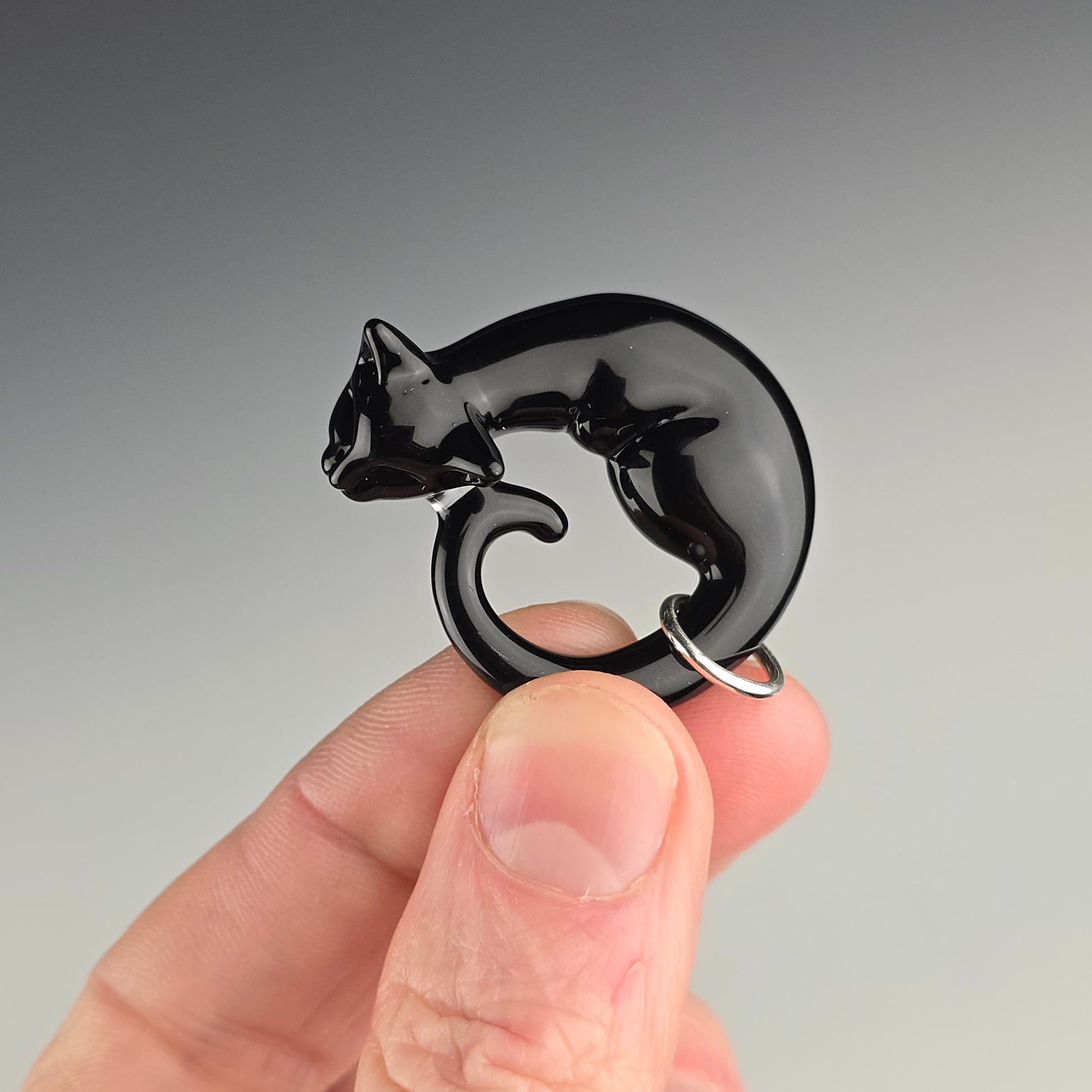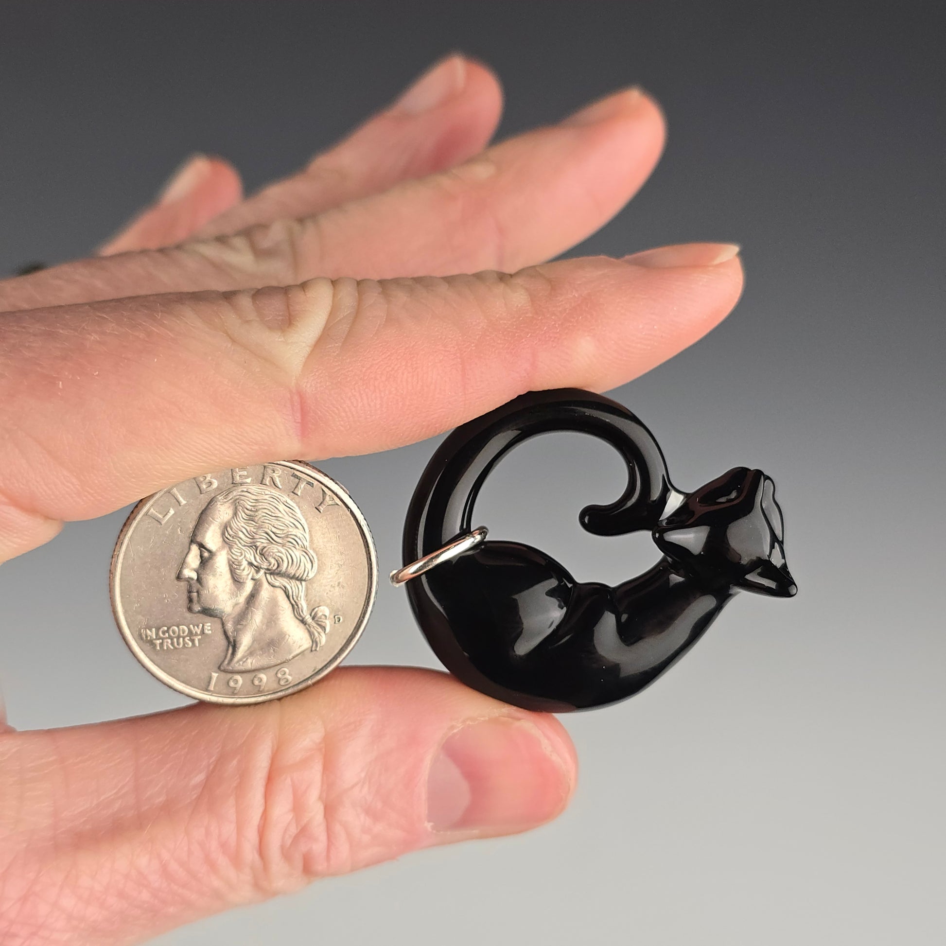 Mini sized pendant. Made with Onyx. This little kitty has an extra belly roll because it loves snackies. See photos for size reference. Pendant comes signed and dated with a titanium pen.