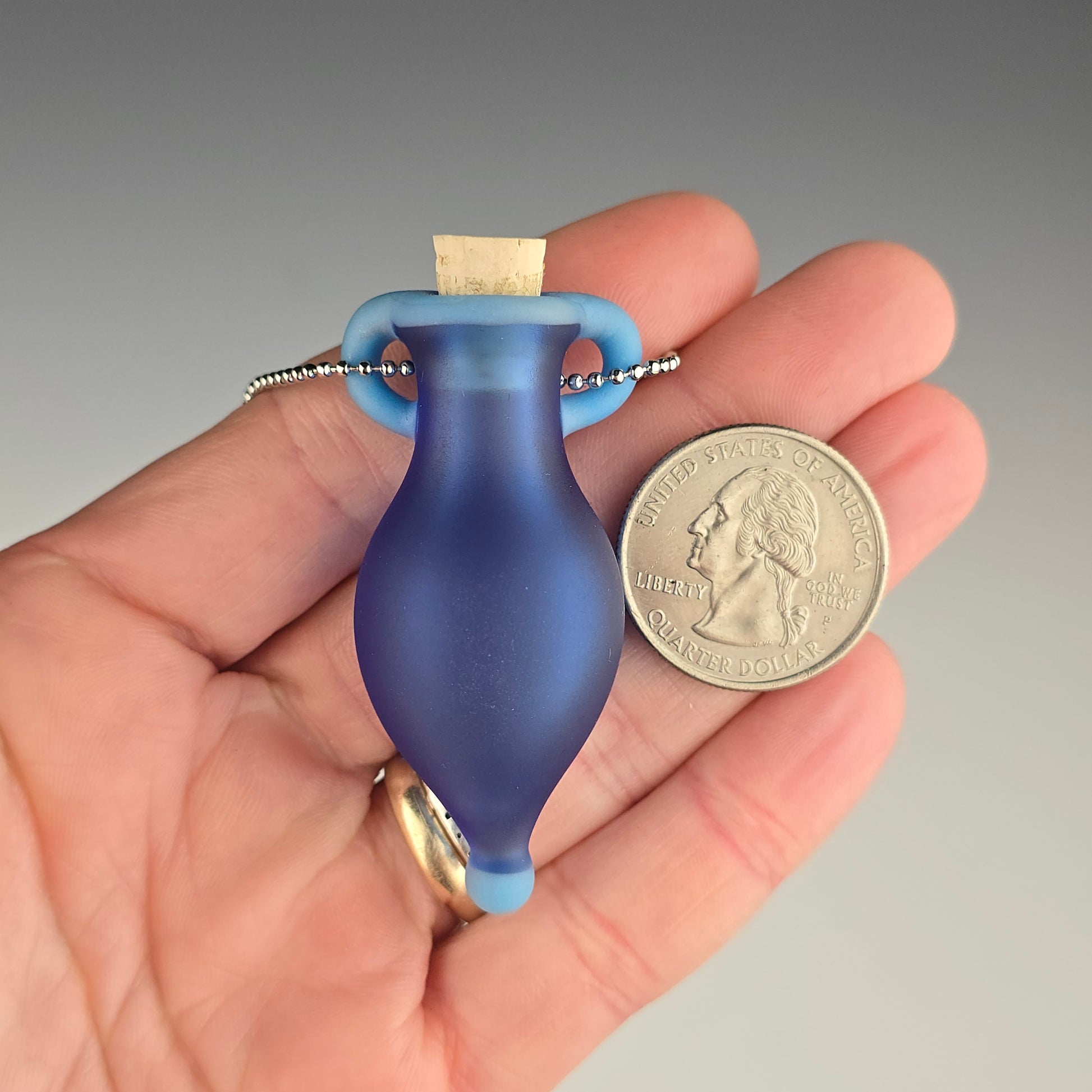 Made with Cobalt tubing and Parramore Sibera accents. This keeper jar has been sandblasted then rubbed with mineral oil, to reduce the appearance of finger prints. See photos for size reference.
