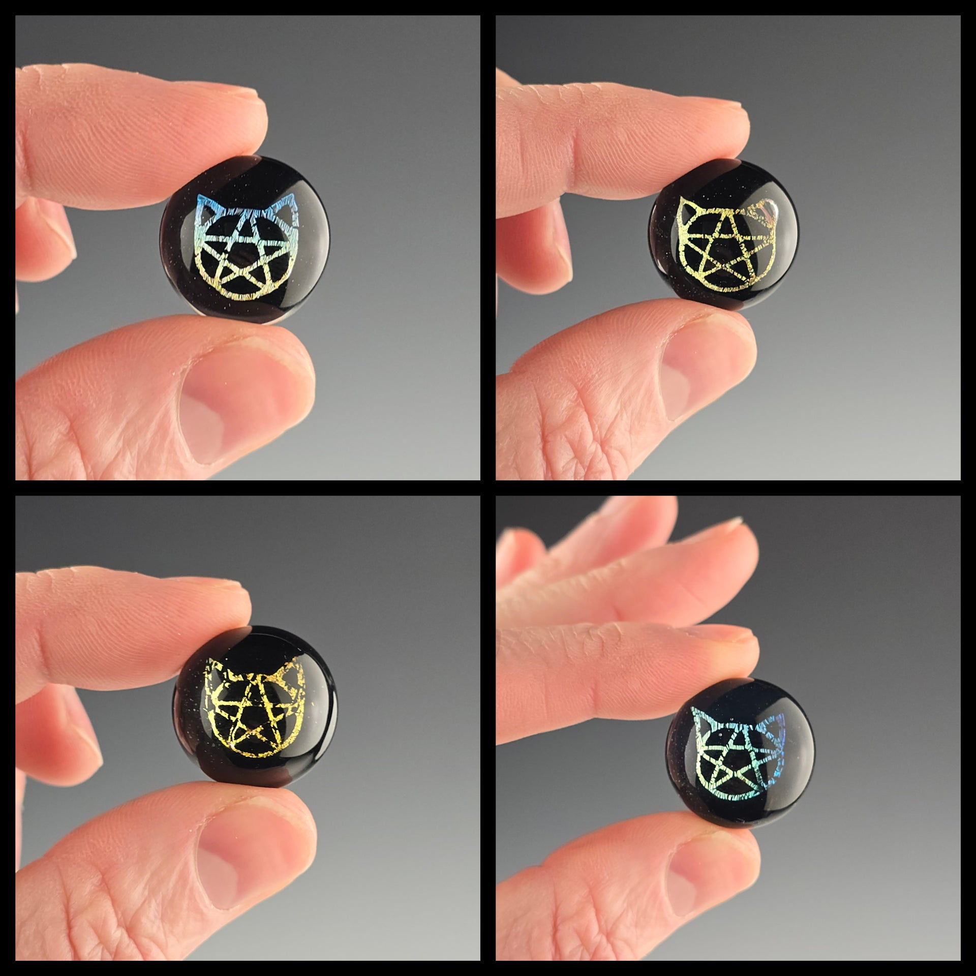 I consider these impurrrfect Dichro images for one reason or another. So, instead of tossing them, I glue a super strong neodymium magnet to the back and they make perfect magnets for the fridge! See photos for size reference.
