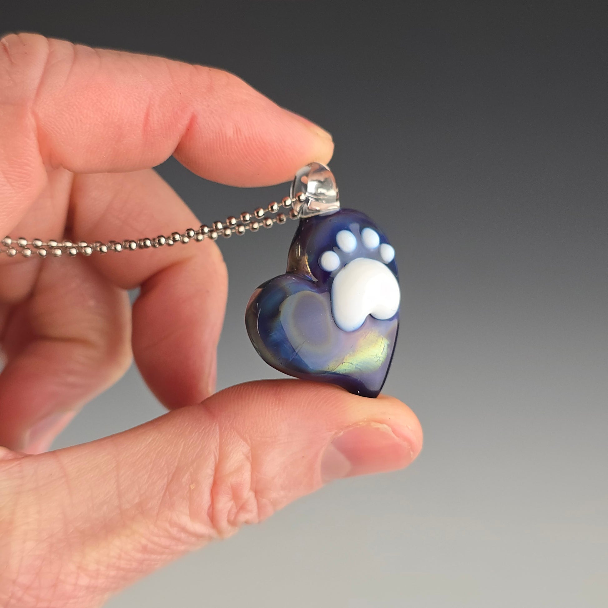 Lotus White paw print on a Double Amber Purple heart & clear bale. See photos for size reference.