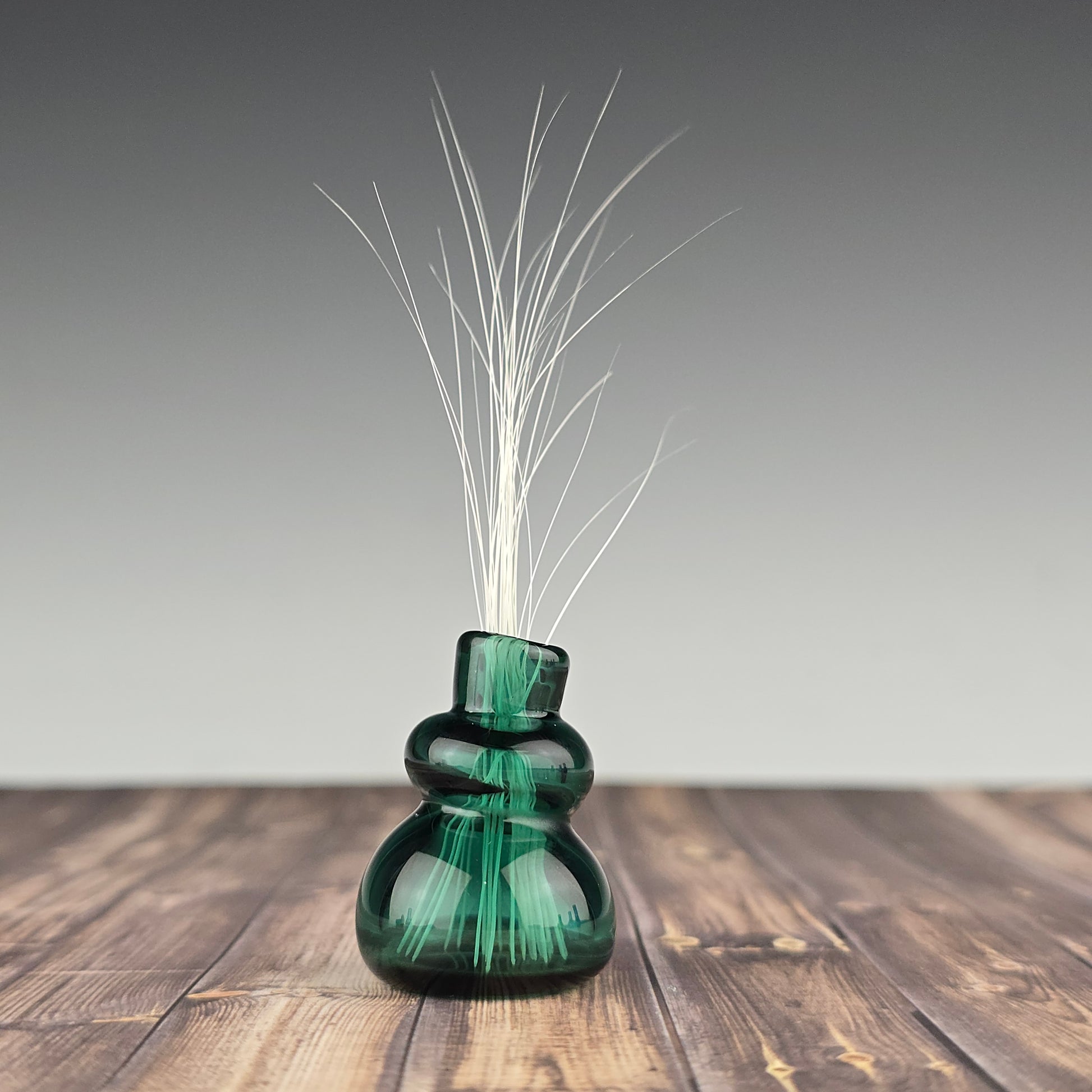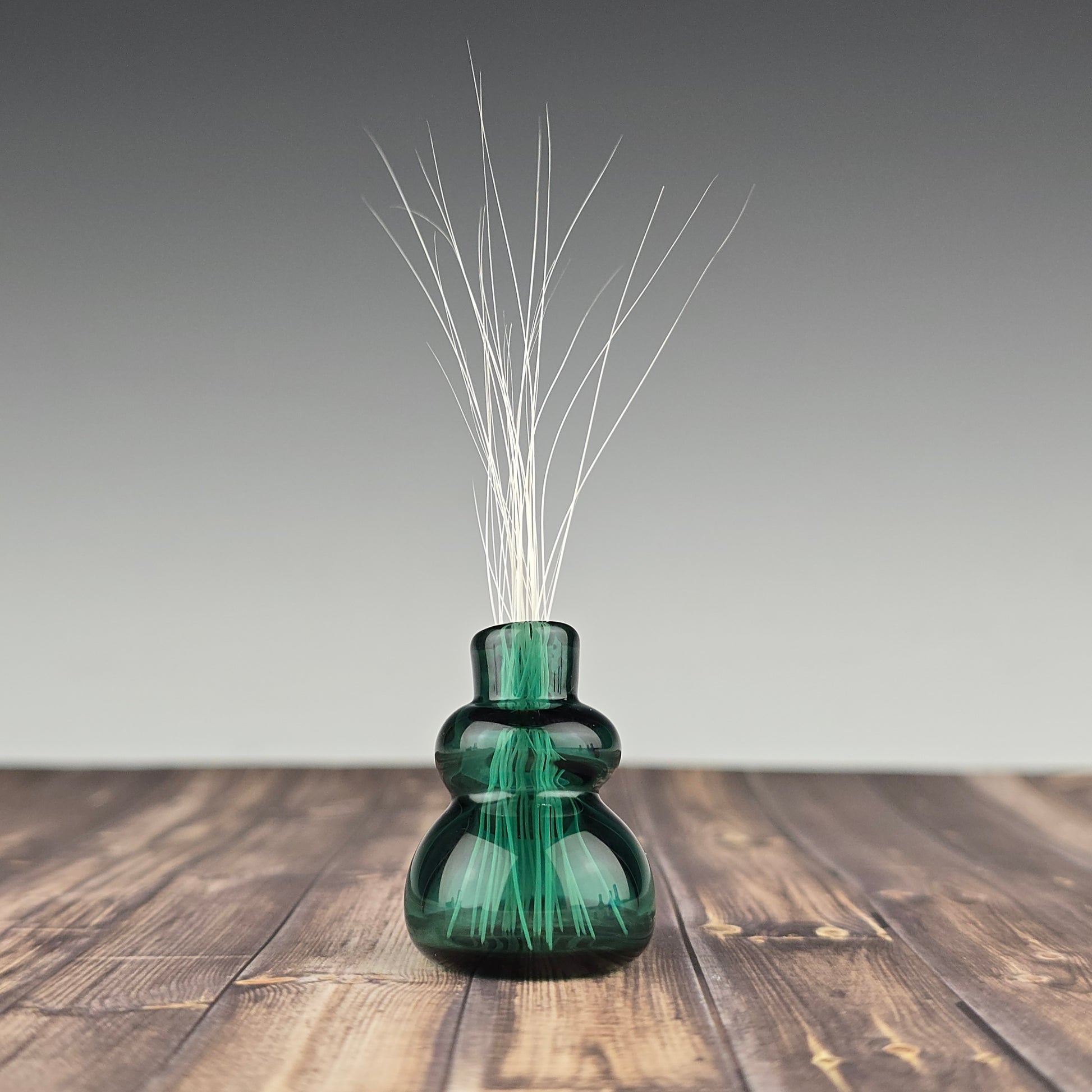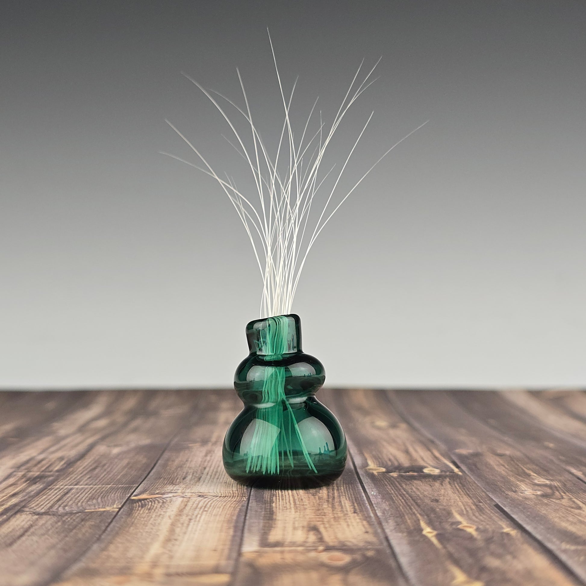 Whether you use it to store found whiskers, a feather, or a tiny flower, this adorable miniature vase will surely add charm to your trinket shelf. Made with Emerald Green tubing, this little vase has a retro vibe and some funky attitude. See photos for size reference.