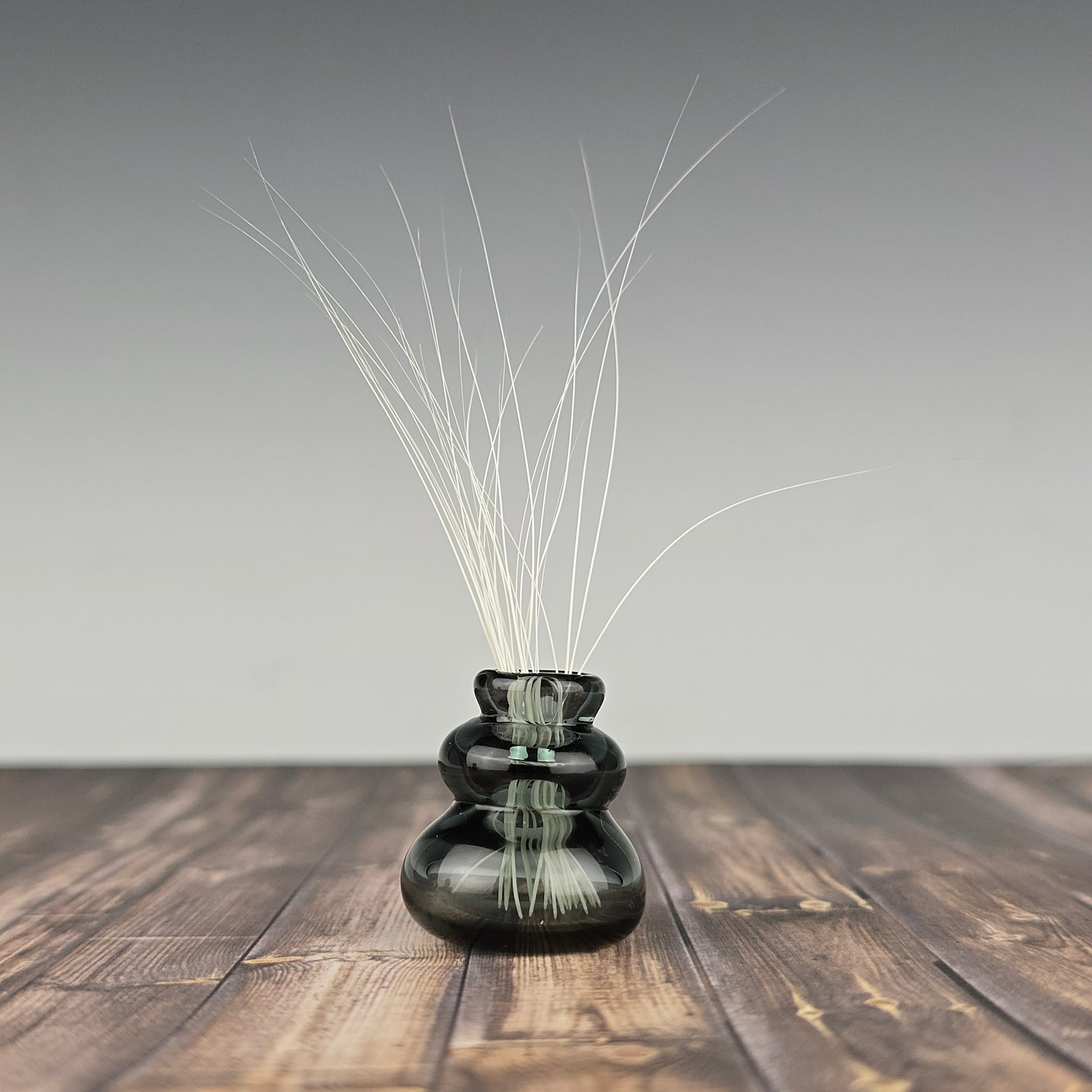 Whether you use it to store found whiskers, a feather, or a tiny flower, this adorable miniature vase will surely add charm to your trinket shelf. Made with Emerald Green tubing, this little vase has a retro vibe and some funky attitude. See photos for size reference.