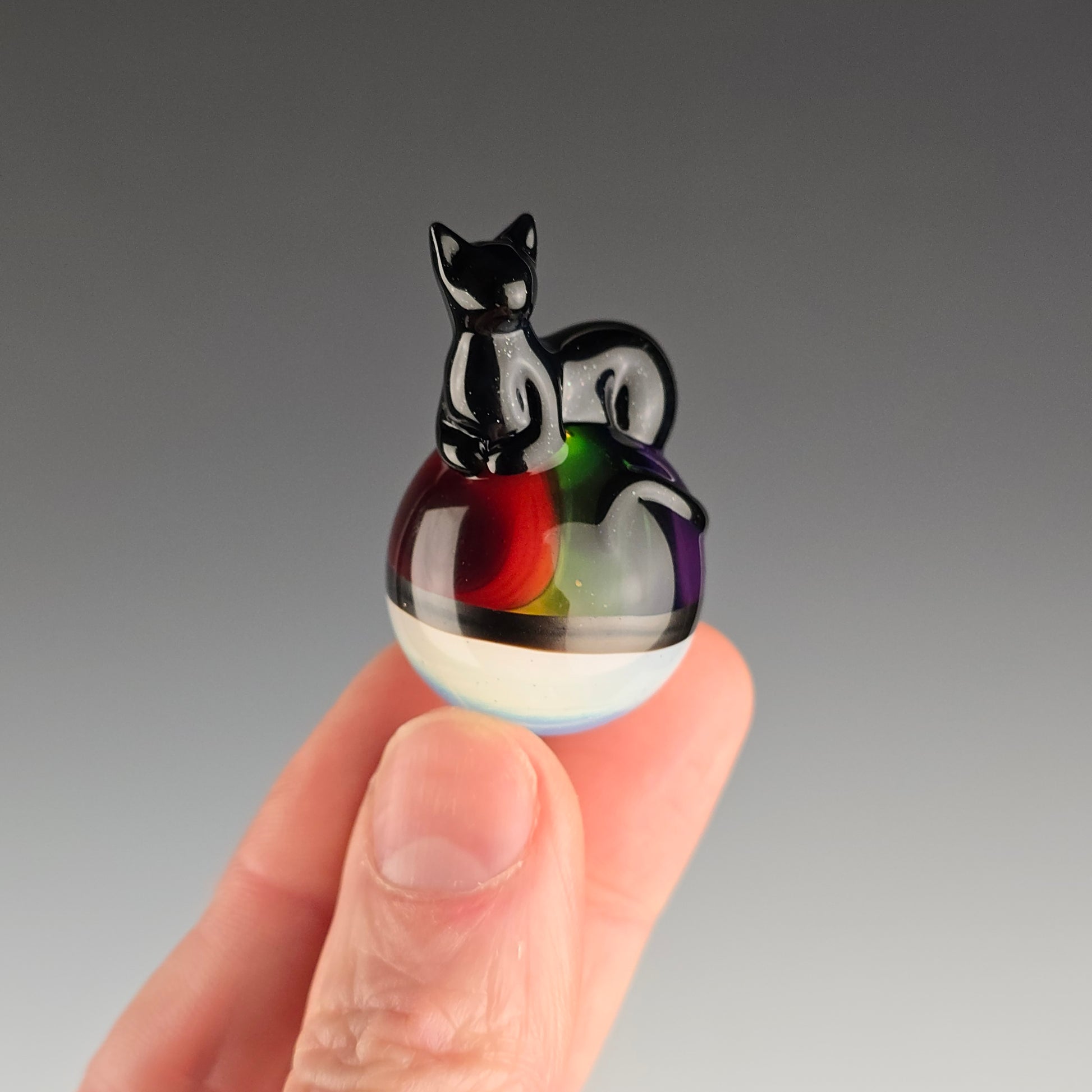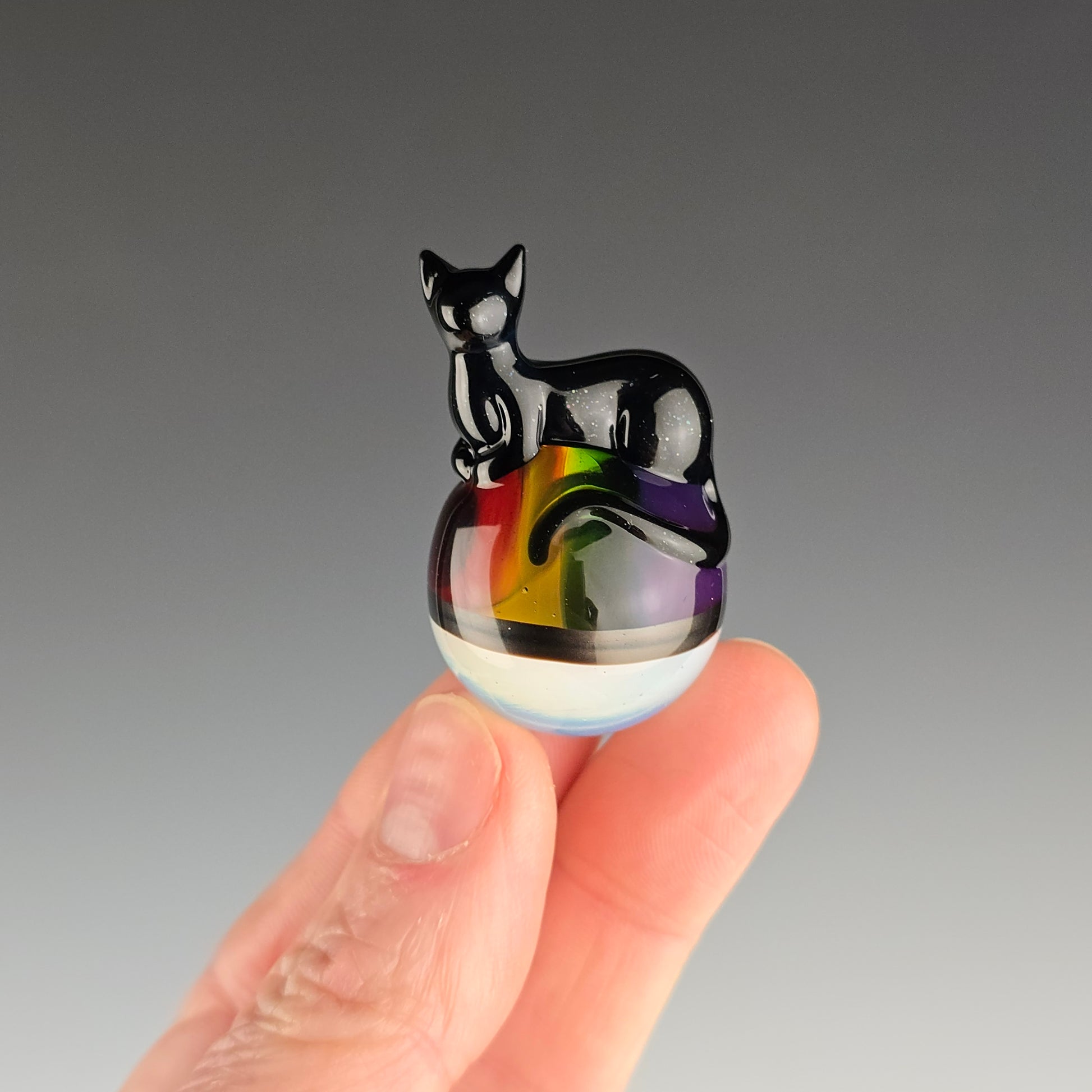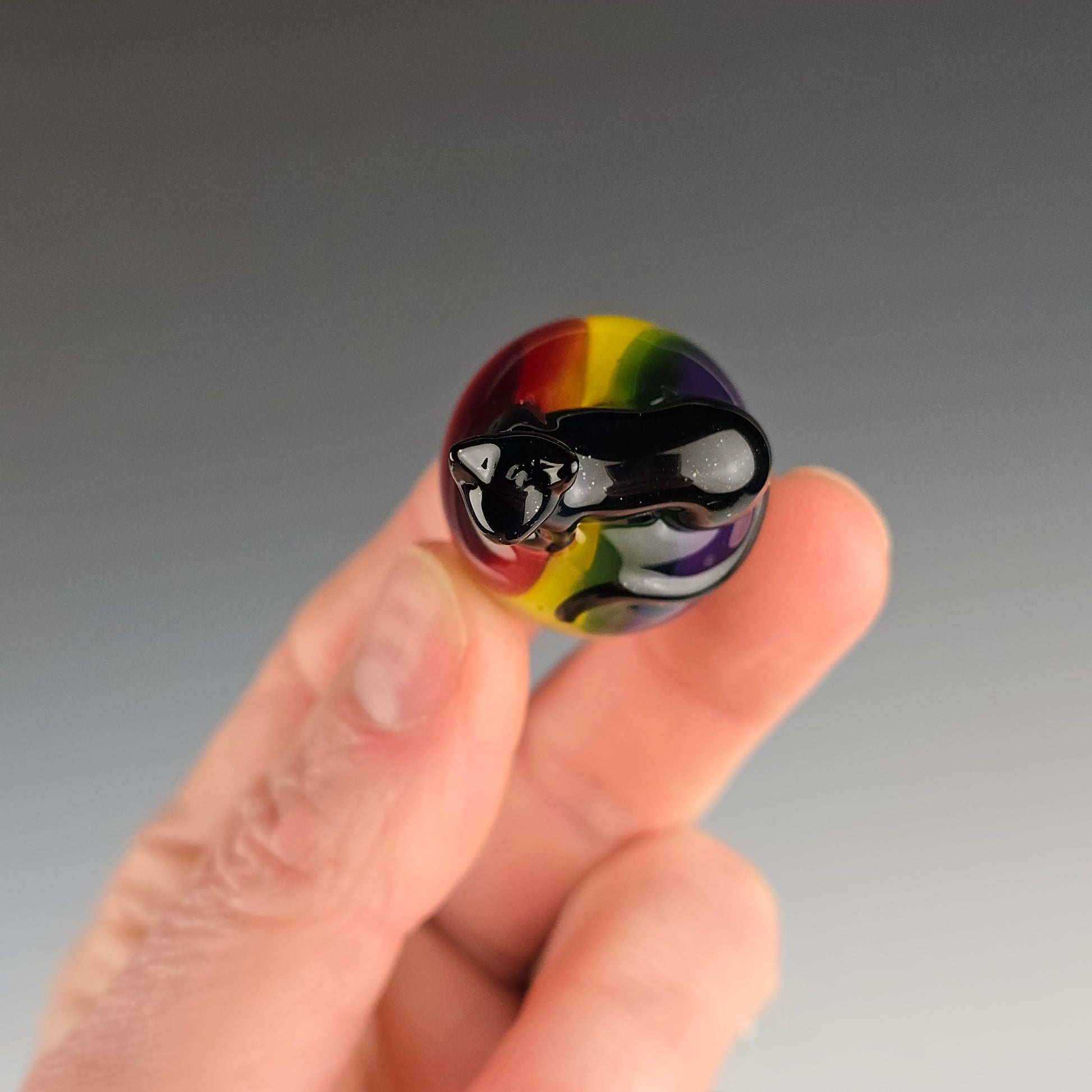 This 24.5mm Meowble is made with Moonstone, Electrum & a transparent rainbow mash up. The loaf is made with Galaxy Black.