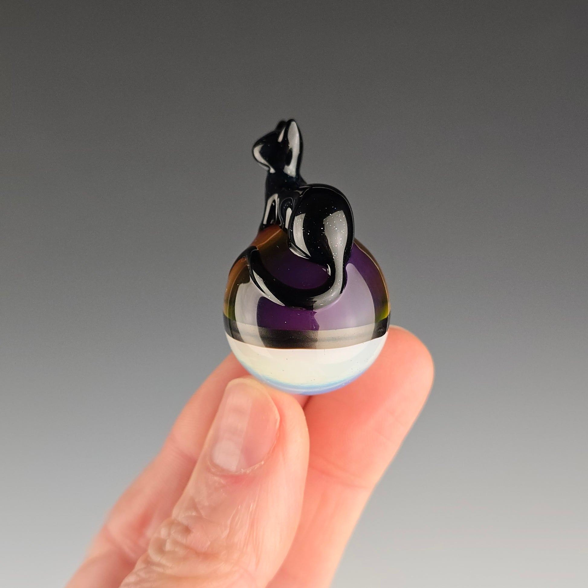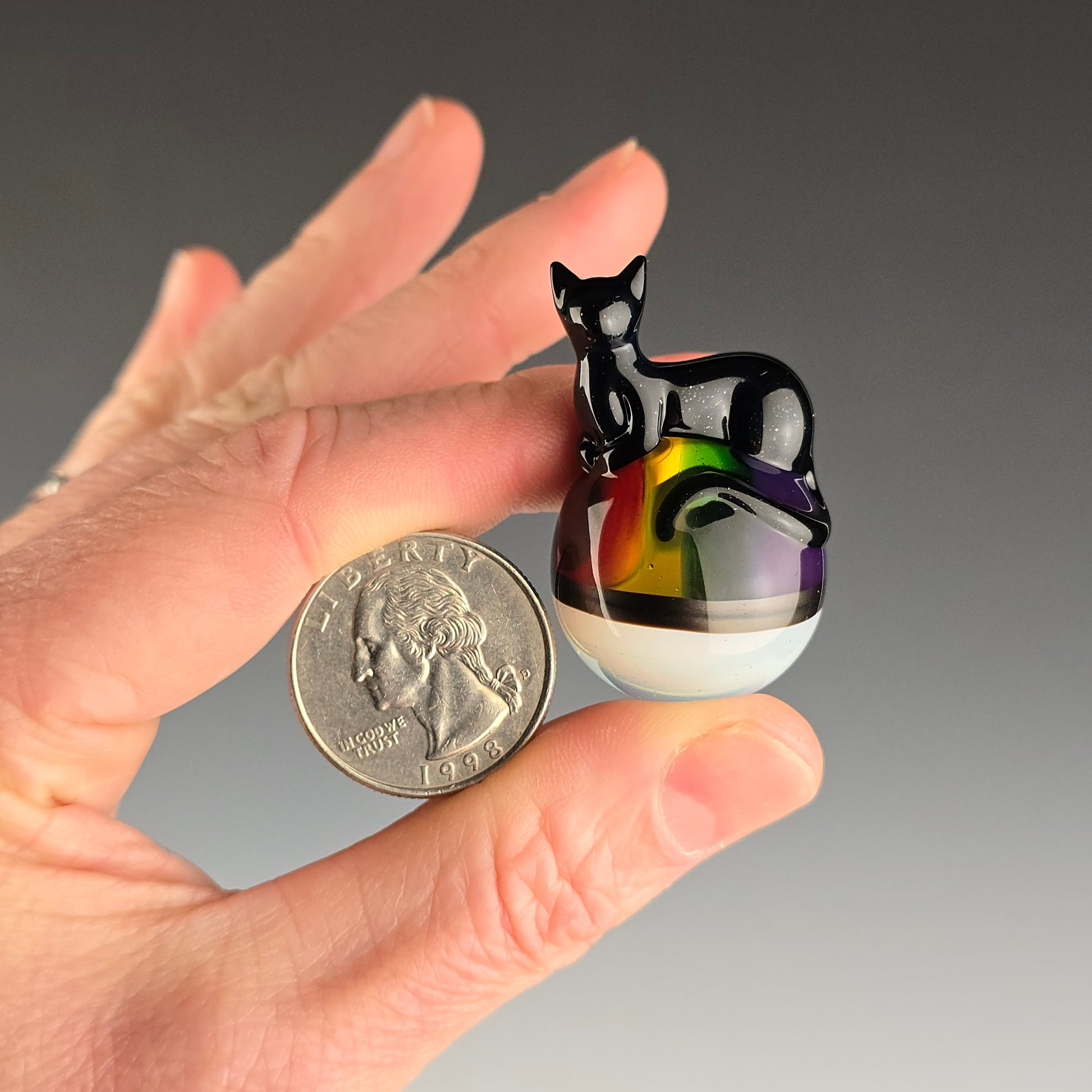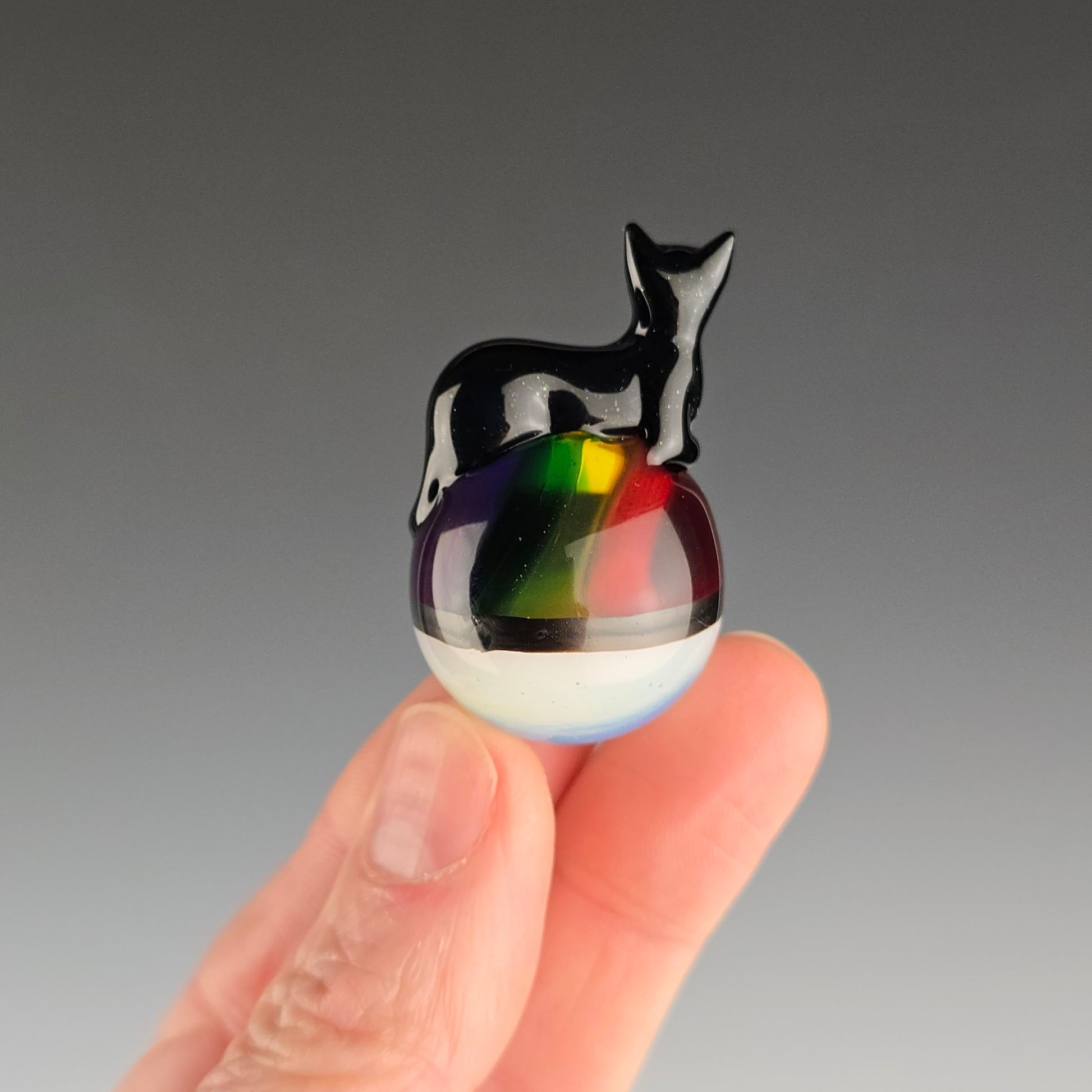 This 24.5mm Meowble is made with Moonstone, Electrum & a transparent rainbow mash up. The loaf is made with Galaxy Black.