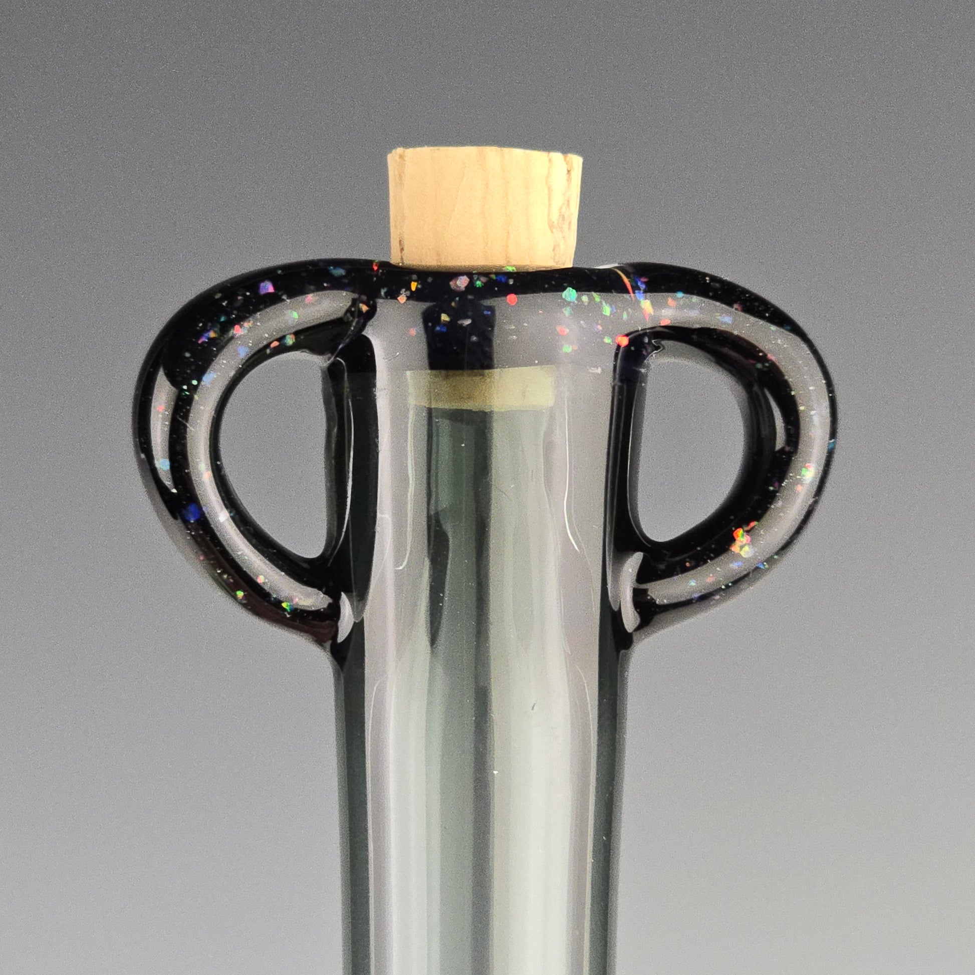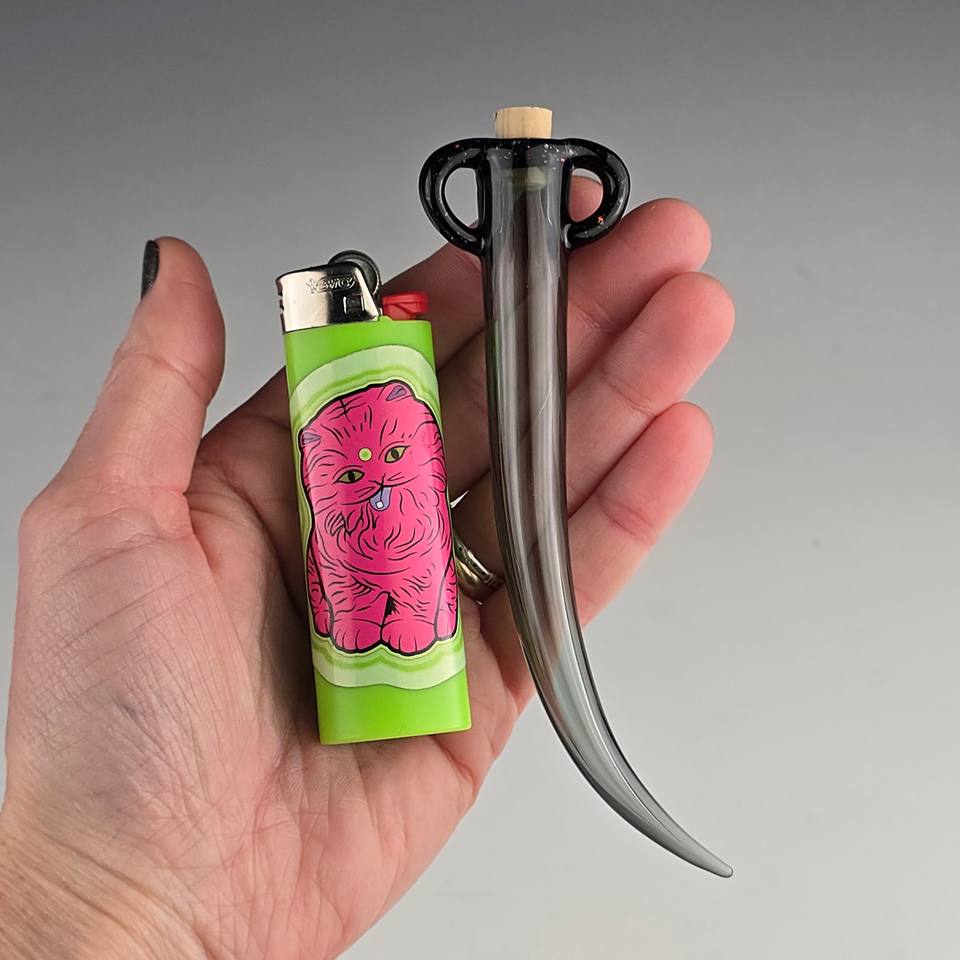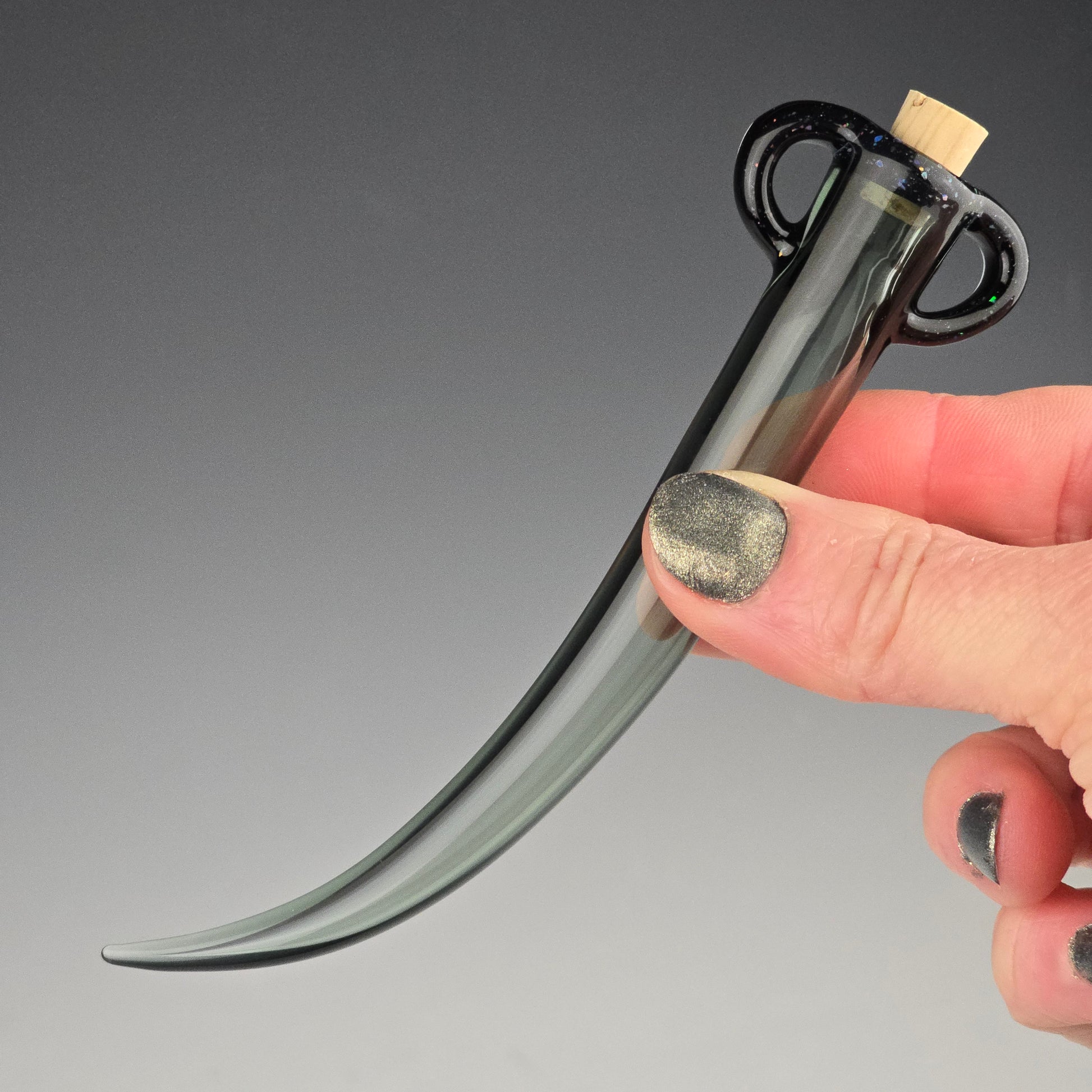 Made with dusk colored tubing and Galaxy Black with crushed Opal accents. See photos for size reference.