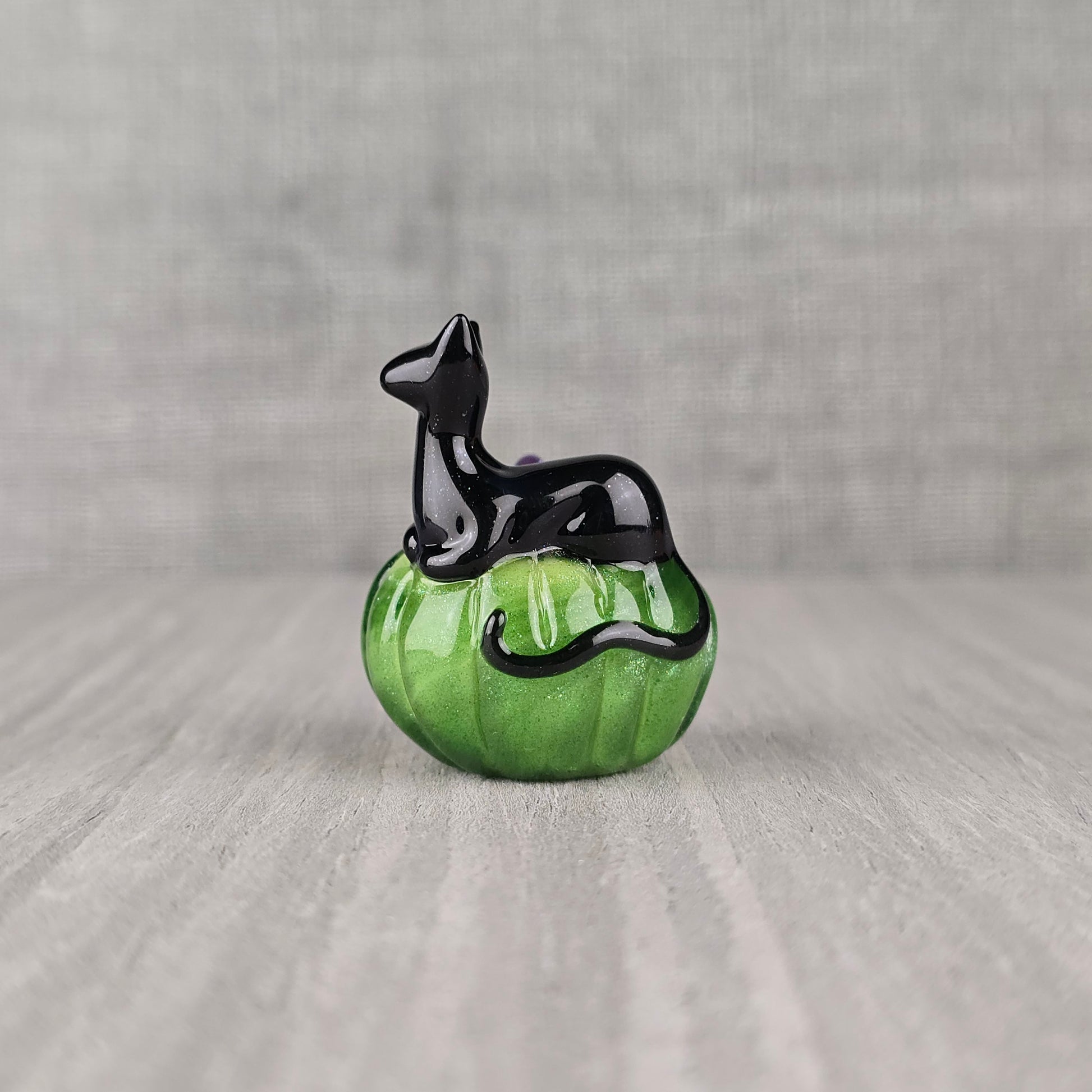 Galaxy Black Kitty loafing on a Parramore VW Green coated in Green Stardust Pumpkin Trinket. See photos for size reference.