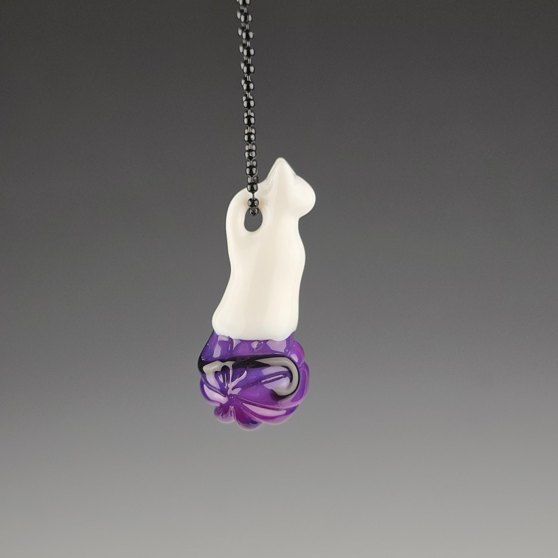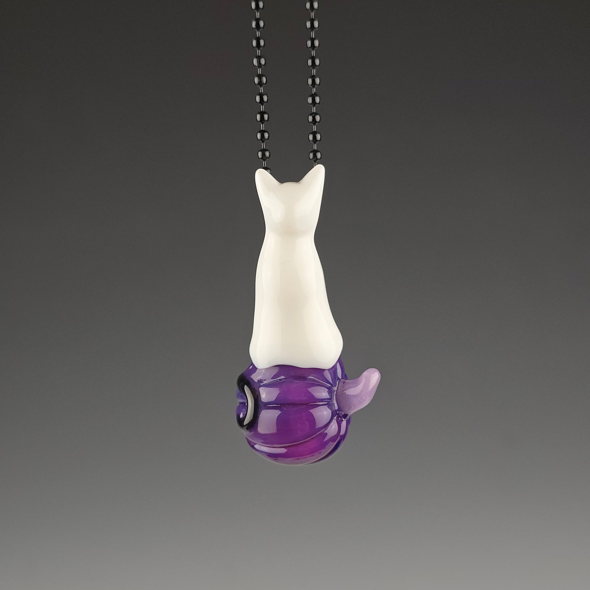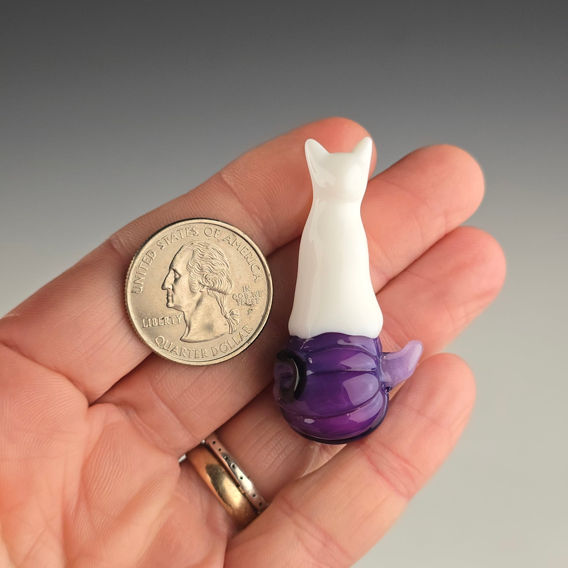 Ghost Kitty sitting atop a Royal Jelly Pumpkin with Black stem. See photos for size reference.