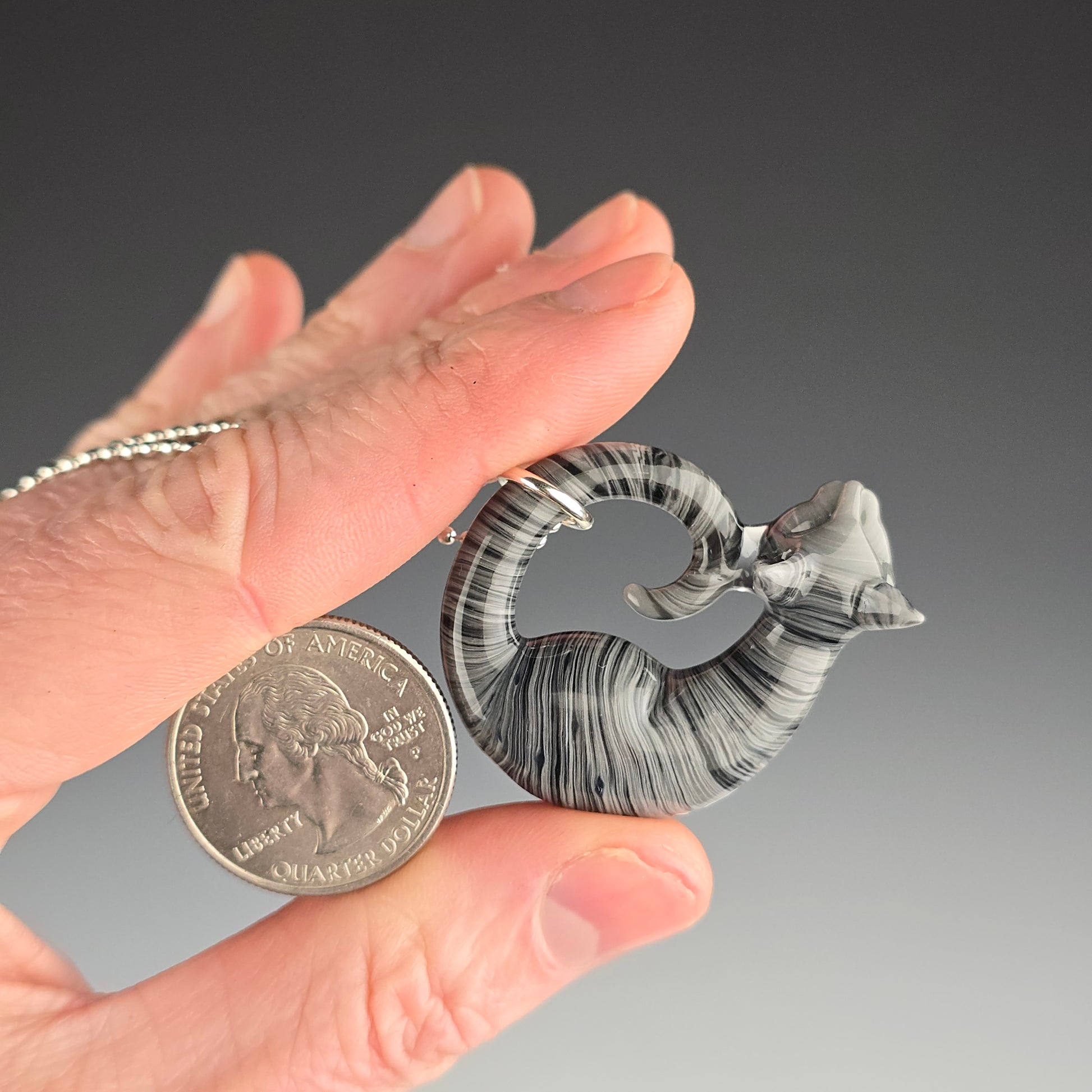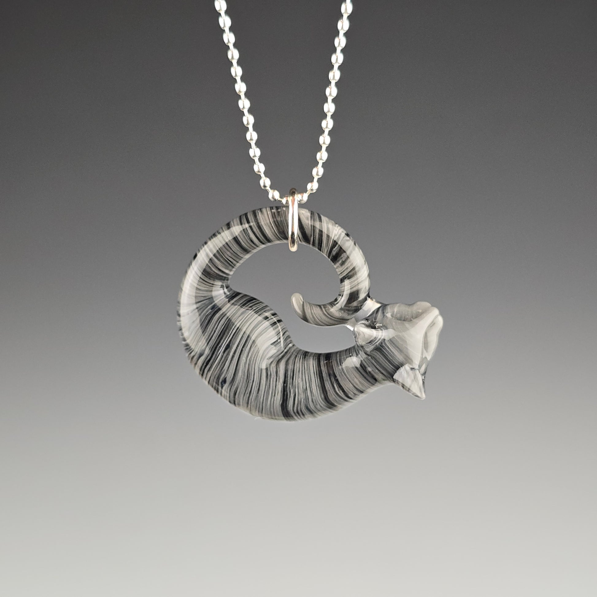 Small sized pendant. Made with my Gray & Black Tabby blend. See photos for size reference. Pendant comes signed and dated with a titanium pen.