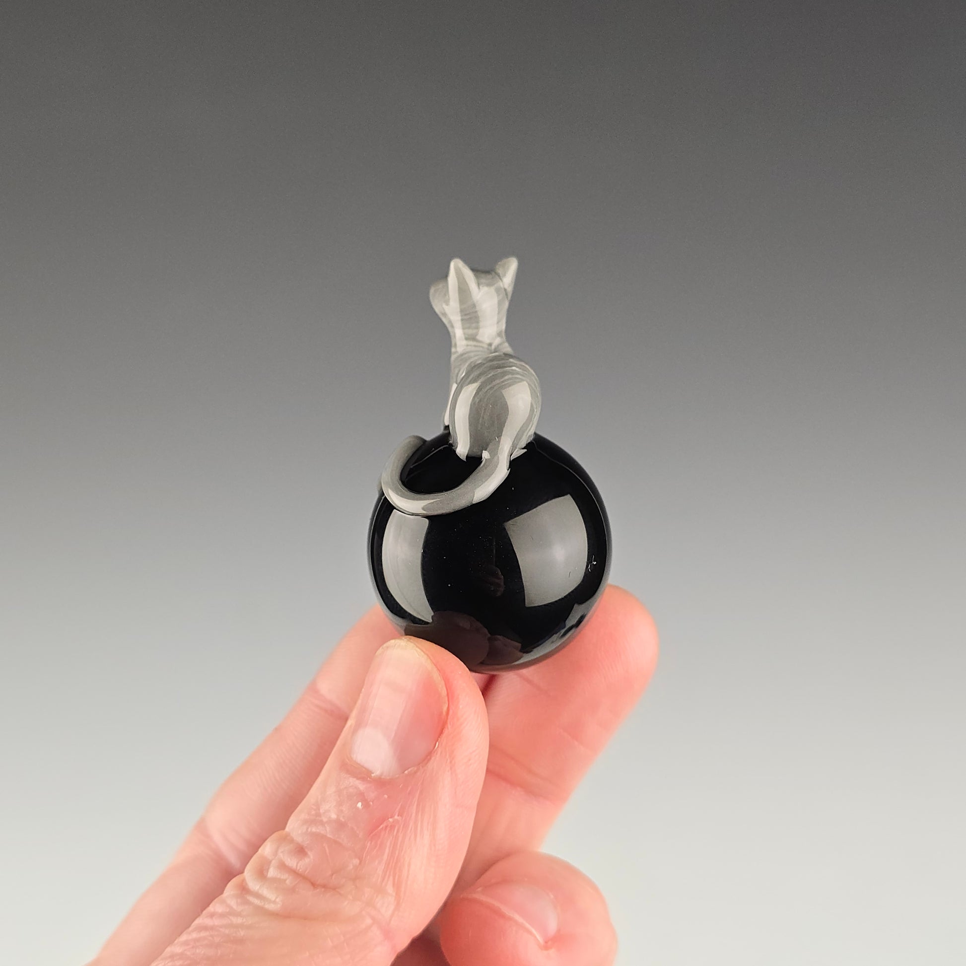 This 26mm Meowble is made with Northstar Onyx and has a Gray Tabby Kitty loafing on it.