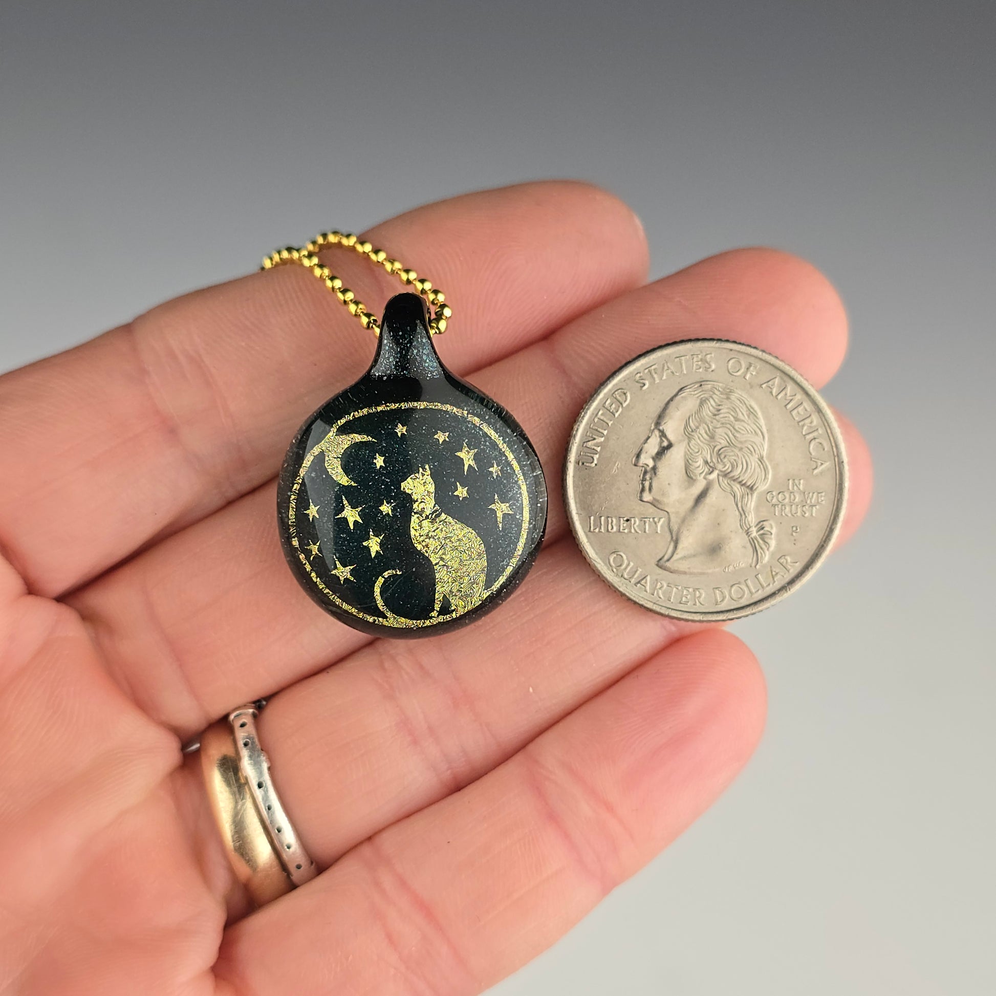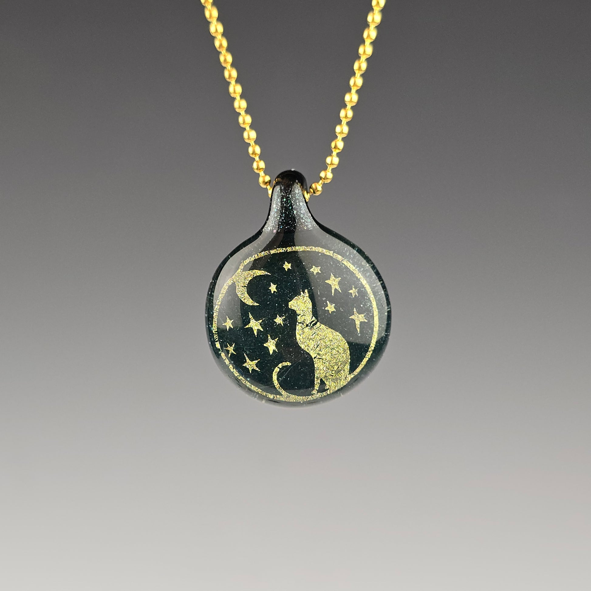 Gold Moon & Stars Kitty image with Sapphire background and a Heavy Blue Leprechaun bale. See photos for size reference.