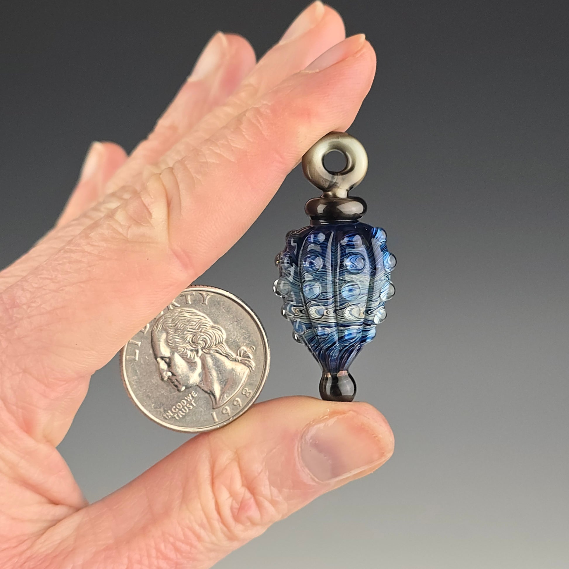 Comes boxed with a ball chain. If you’d like a different color than the one shown or prefer a colored hemp cord instead, please let me know in the special instruction box at the bottom of the cart page before you checkout.