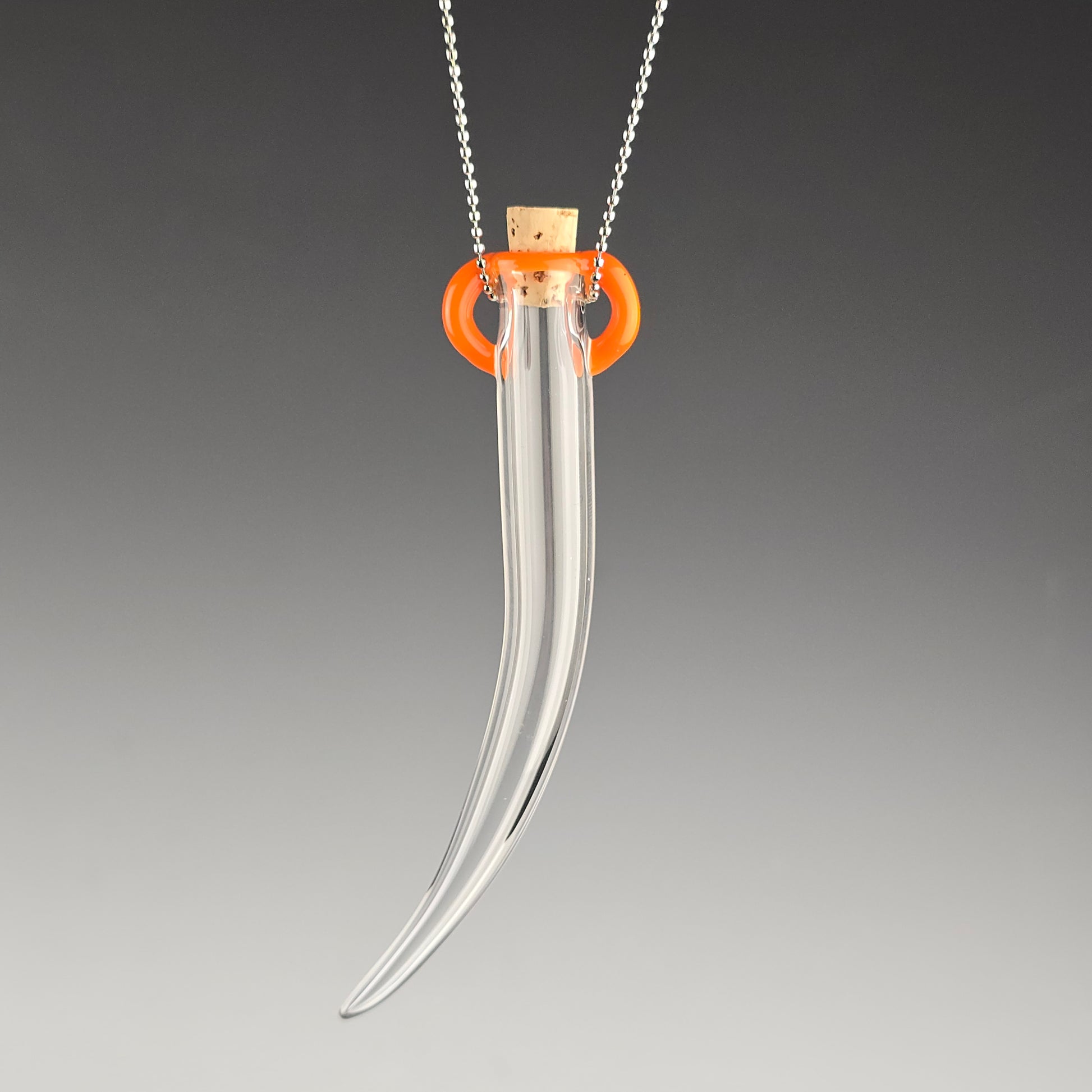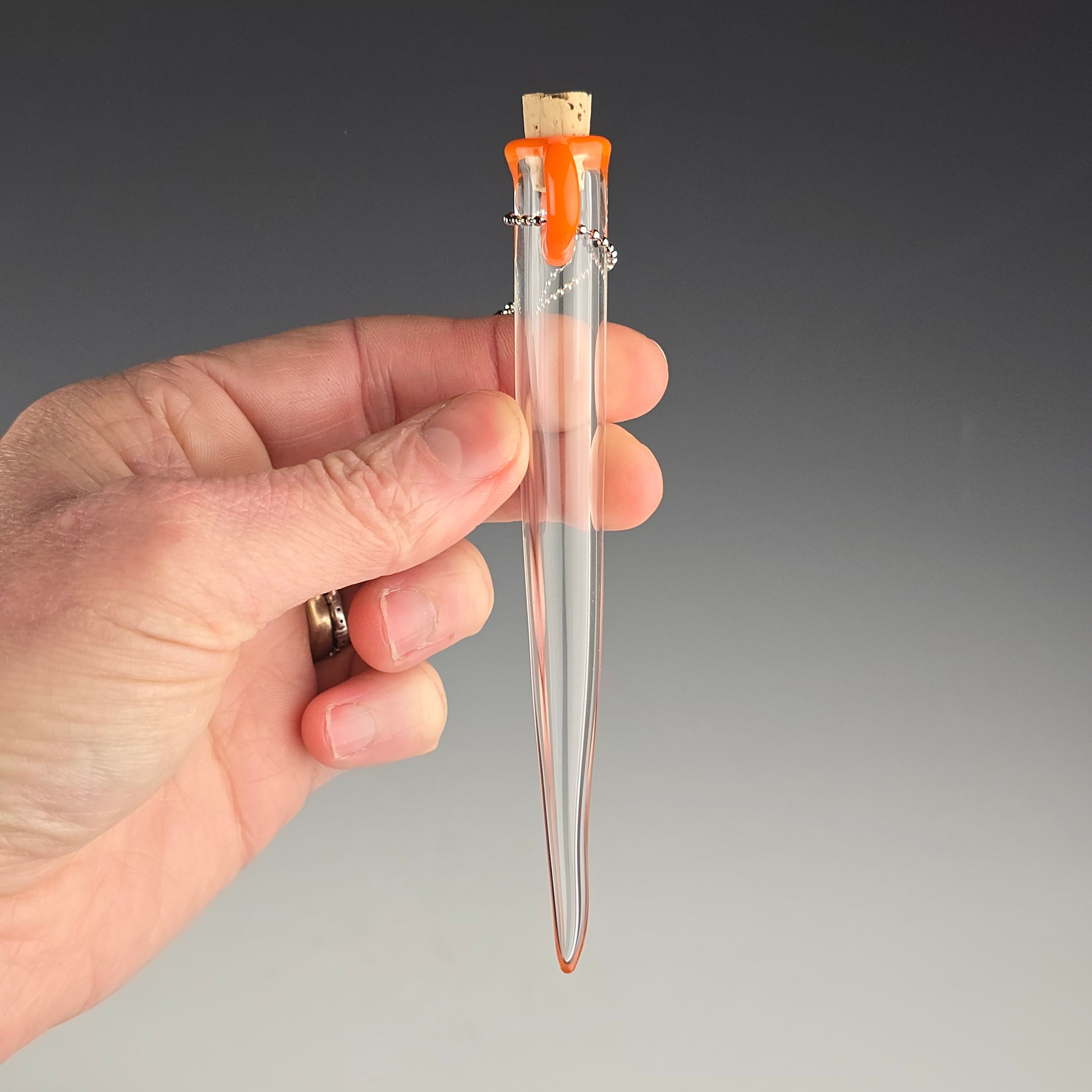 Will hold whiskers up to 4" long. Lava orange accents on clear tubing. See photos for size reference.
