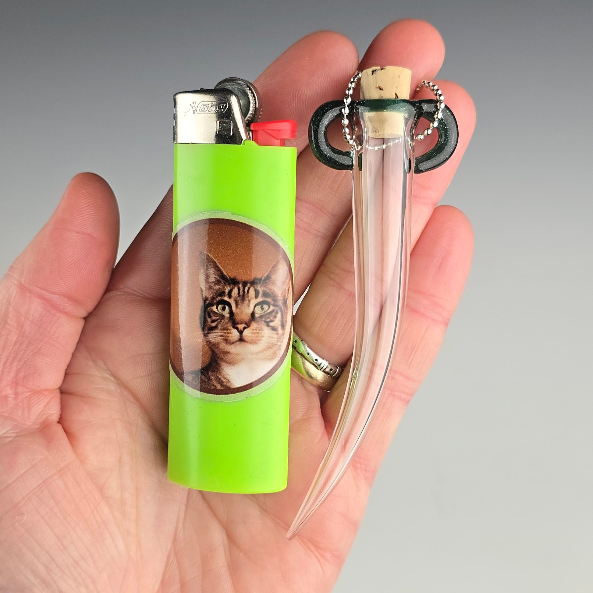 While this keeper was specifically designed in the shape of a whisker, it can hold more than just found whiskers. It can also serve as a unique place to store other cherished keepsakes, such as fur, kitten teeth, or a small amount of cremains.