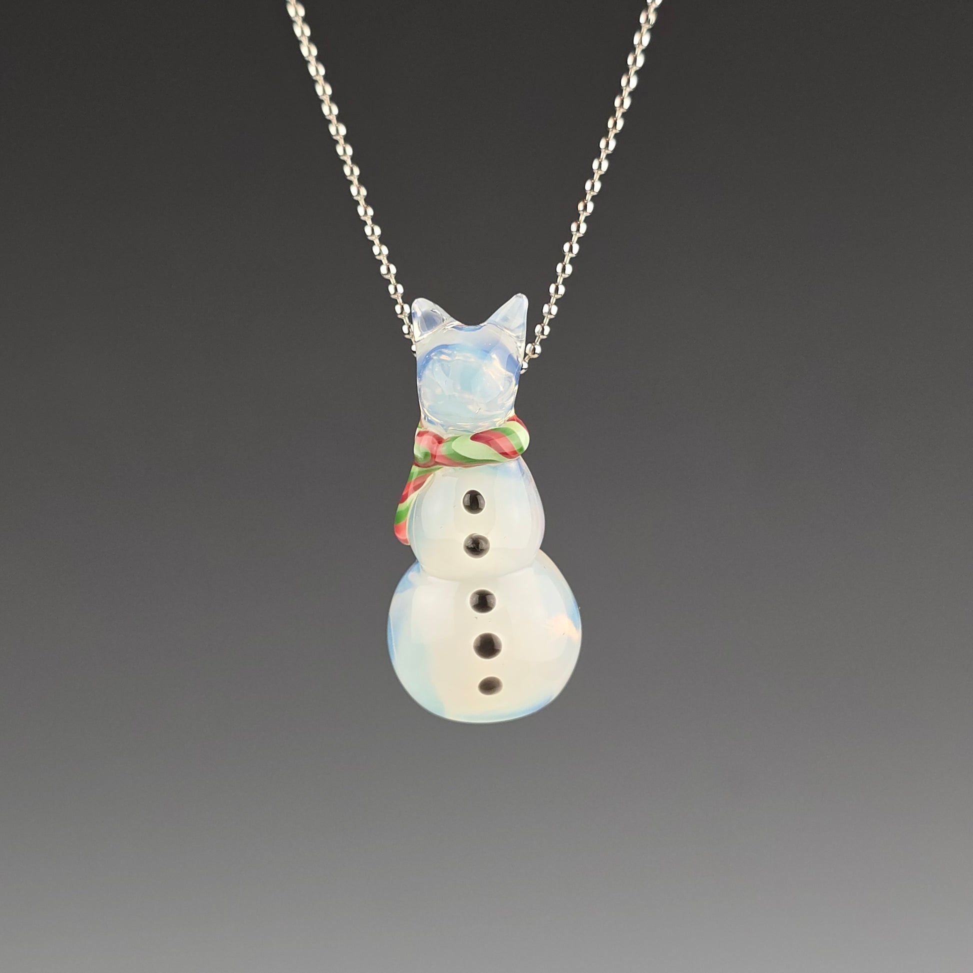 This little "Ice" Snowman Kitty made with Ghost and is wearing a red & green striped scarf. See photos for size reference.