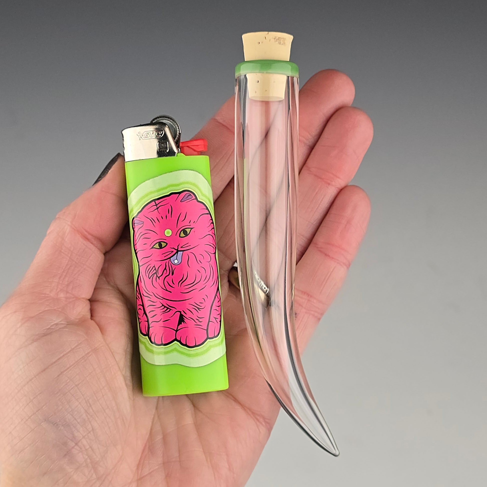 Holds Whiskers up to 4.25" long. Jade Green color accent with clear tubing. See photos for size reference.
