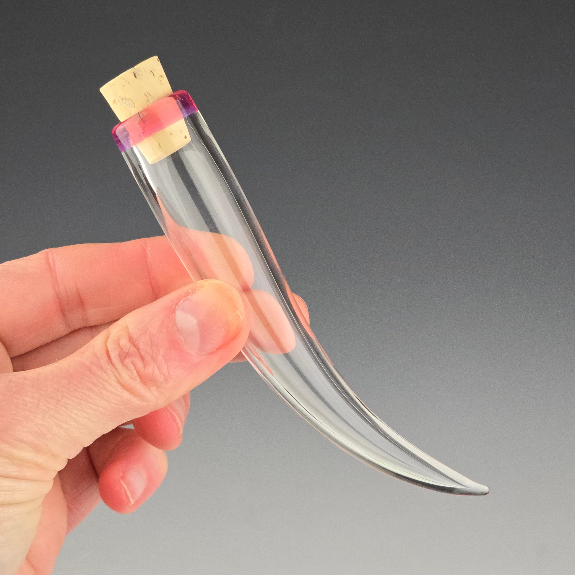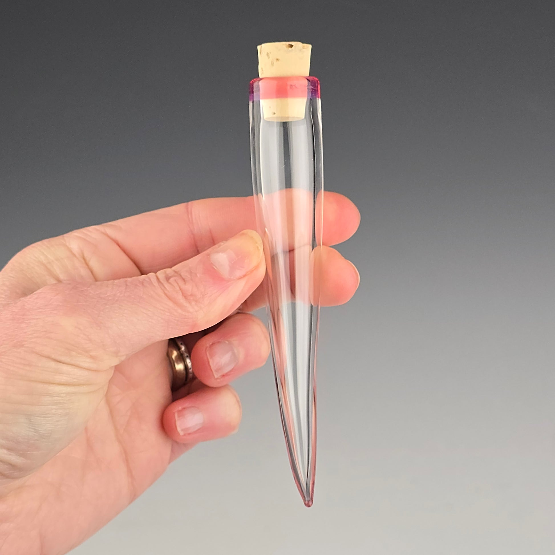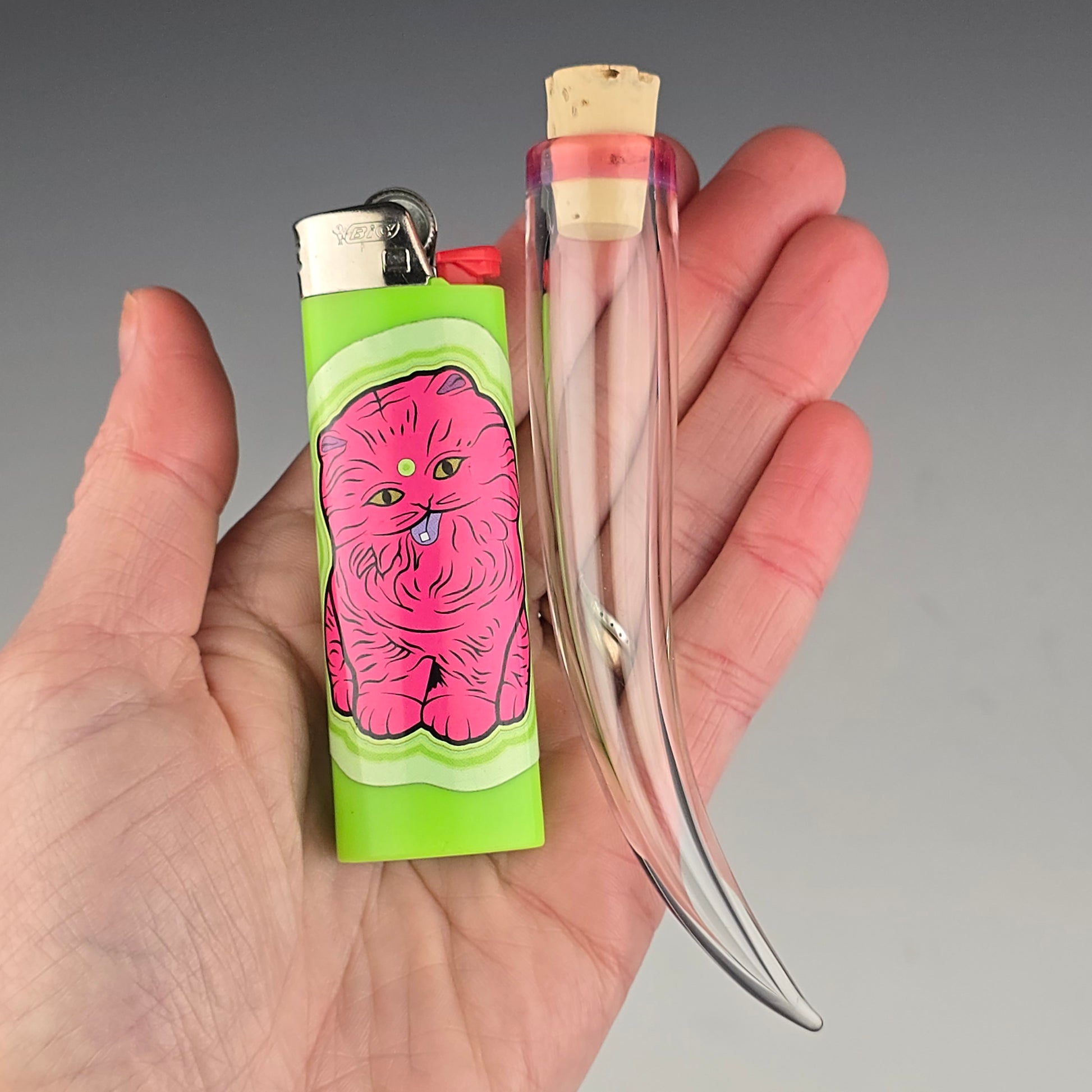 Made with clear tubing and a Karmaline color accent. See photos for size reference.