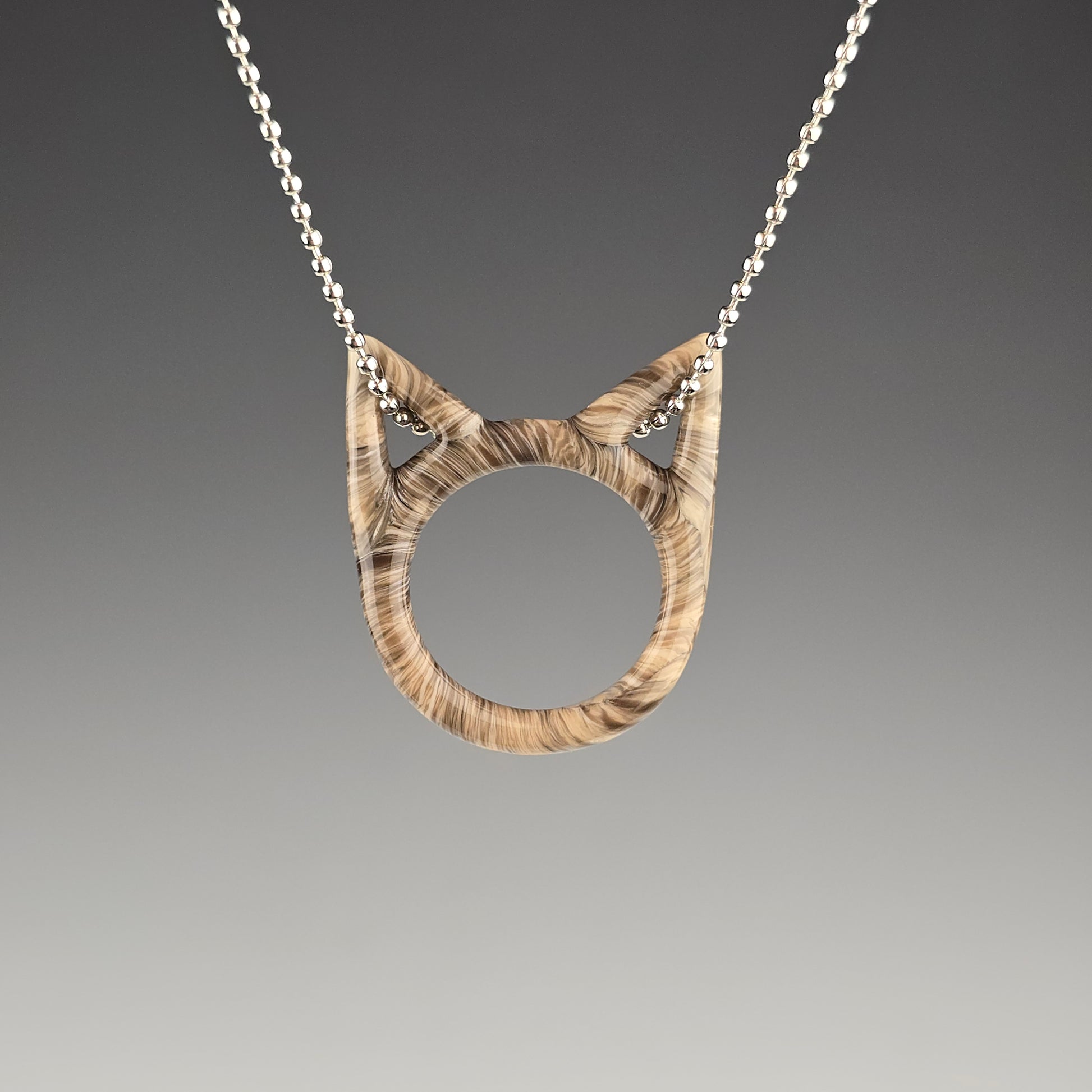 Light Brown tabby kitty face pendant made with one of my special tabby color blends. See photos for size reference.