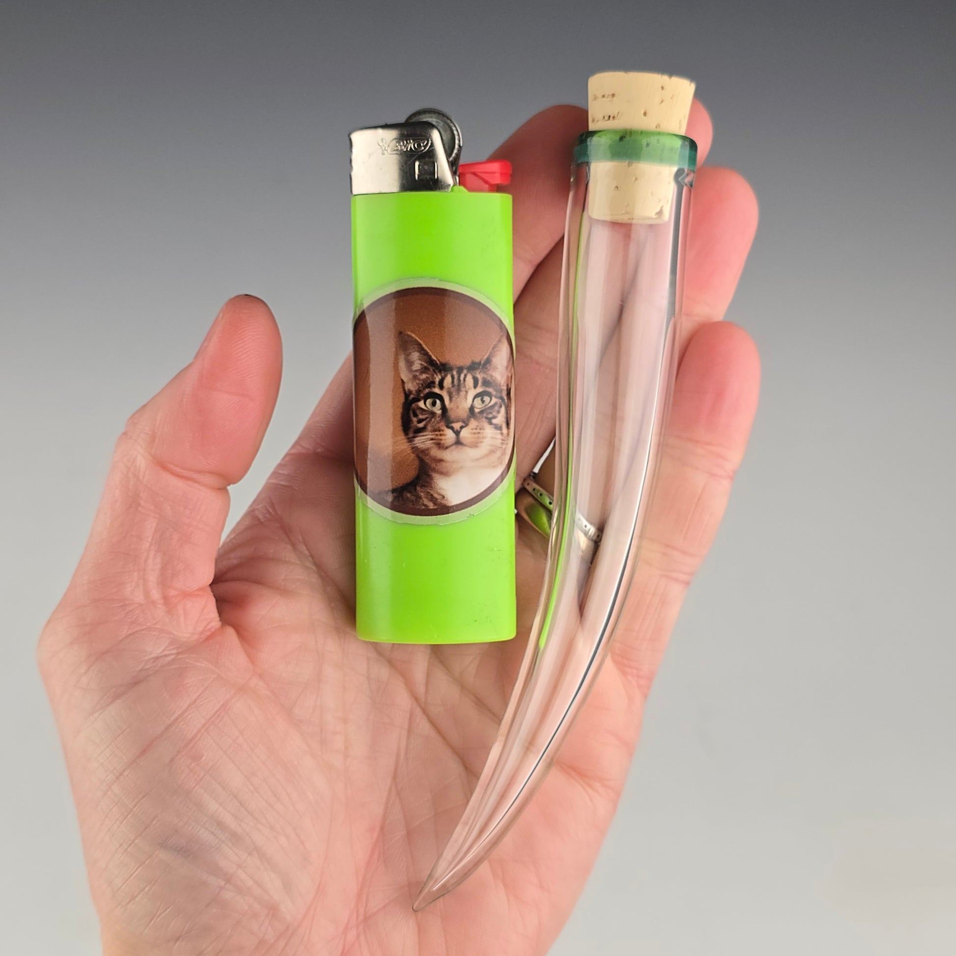 While this keeper was specifically designed in the shape of a whisker, it can hold more than just found whiskers. It can also serve as a unique place to store other cherished keepsakes, such as fur, kitten teeth, or a small amount of cremains.
