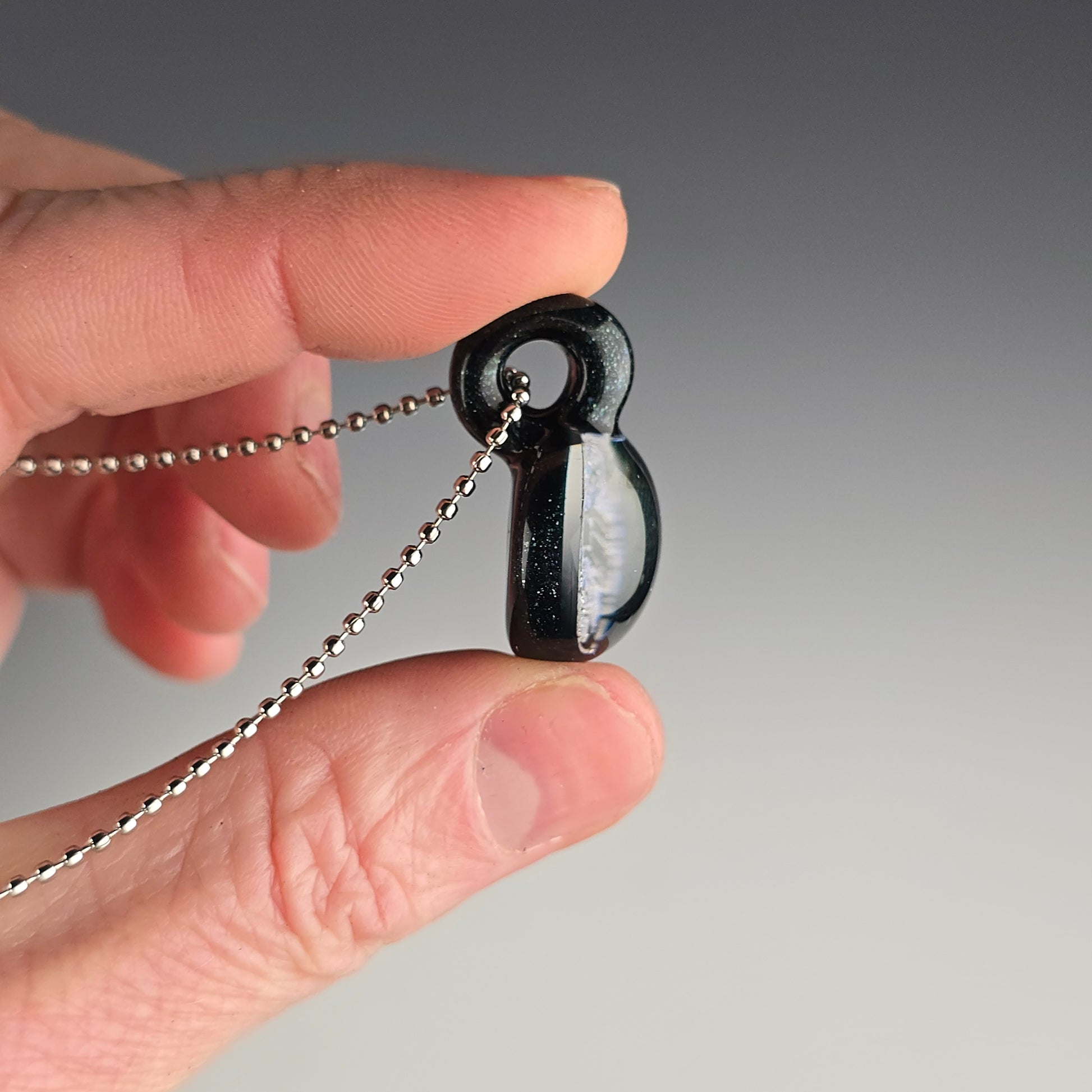Comes boxed with a ball chain & sticker. If you’d like a different color than the one shown or prefer a colored hemp cord instead, please let me know in the special instruction box at the bottom of the cart page before you checkout.
