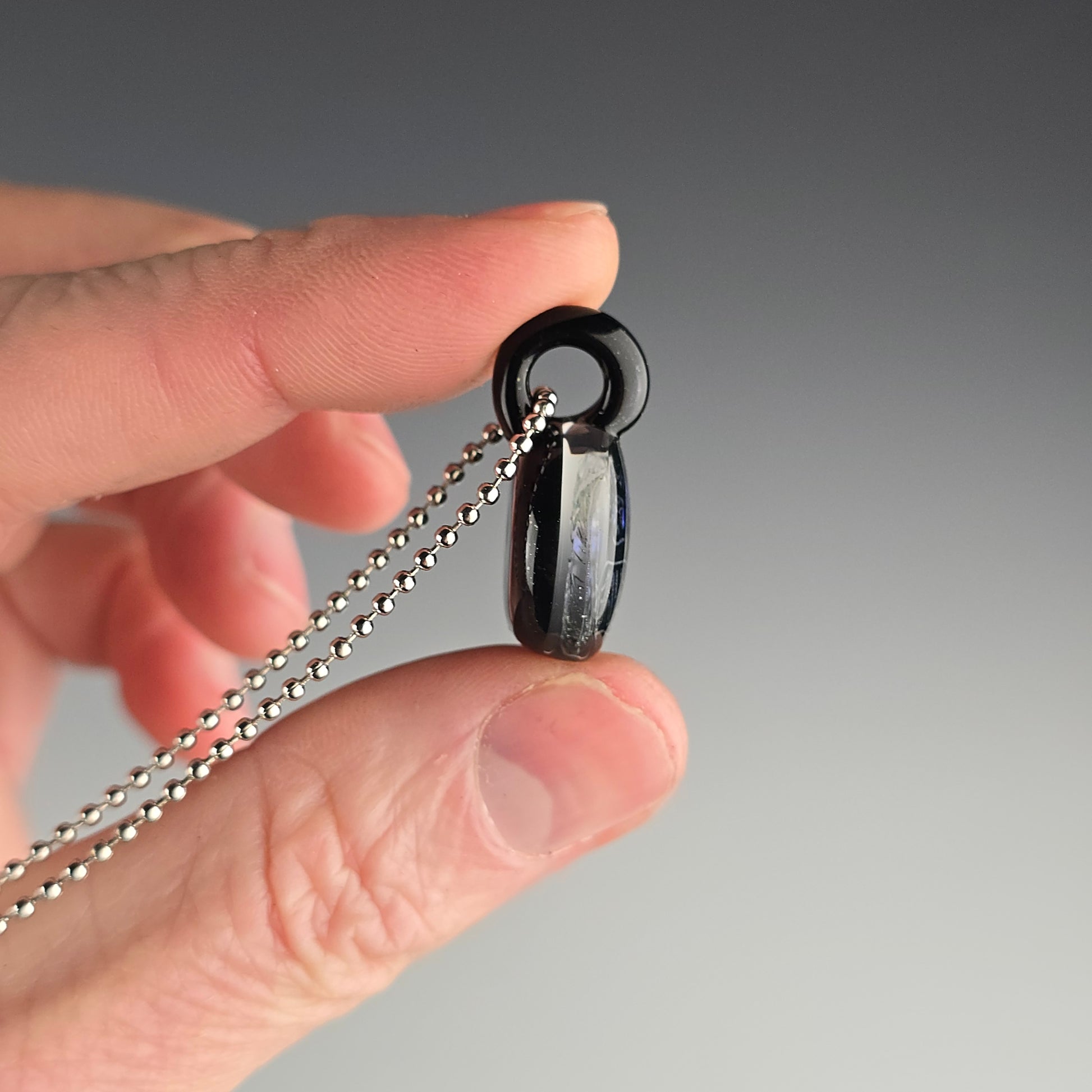 Your pendant will come boxed with a ball chain & sticker. If you prefer a different colored ball chain than the one photographed, please leave that info in the notes section when you check out. Available colors: black, bronze, silver, gold and white silver. I can also replace the ball chain with colored hemp string or suede if you have metal sensitivities.