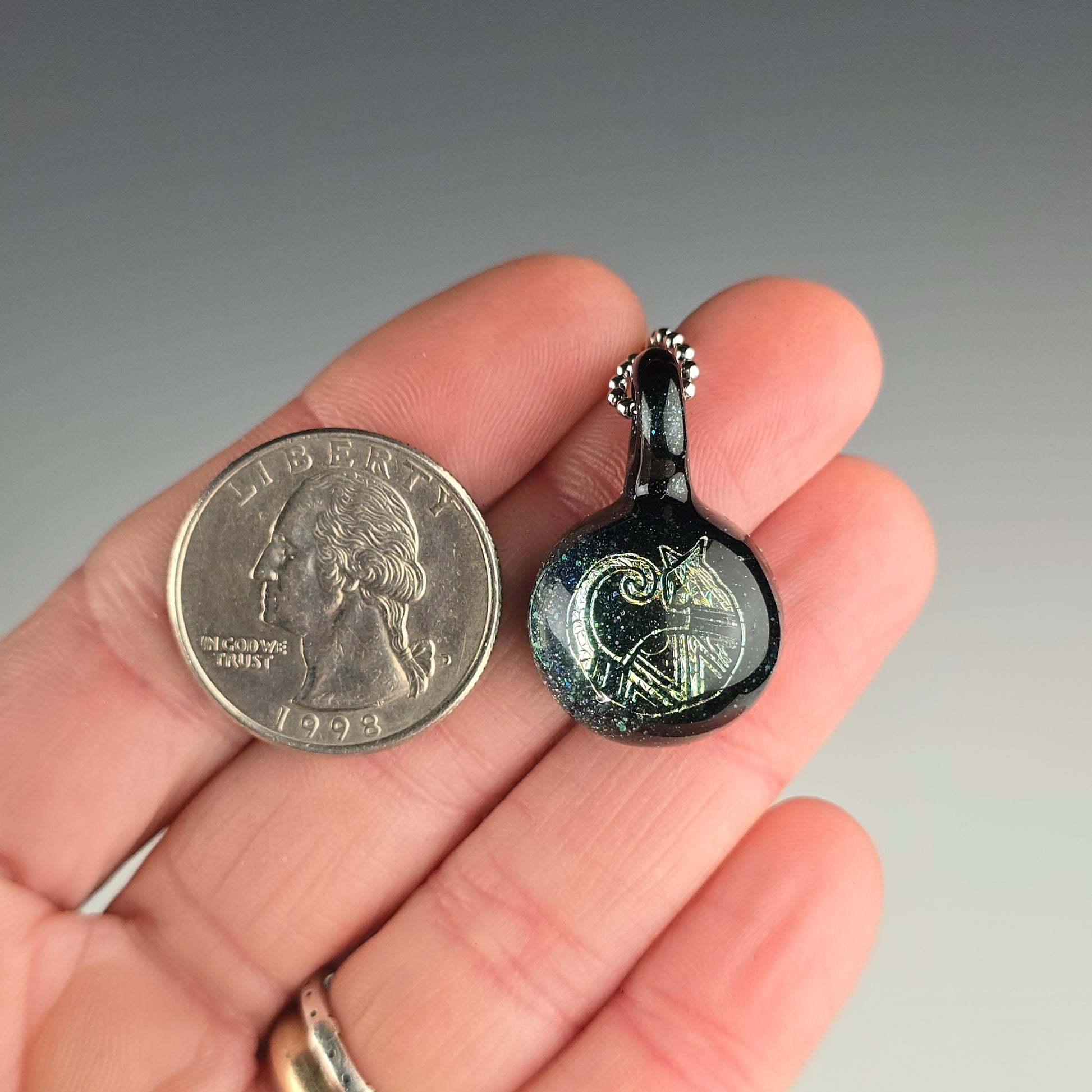 Your pendant will come boxed with a ball chain & sticker. If you prefer a different colored ball chain than the one photographed, please leave that info in the notes section when you check out. Available colors: black, bronze, silver, gold and white silver. I can also replace the ball chain with colored hemp string or suede if you have metal sensitivities.
