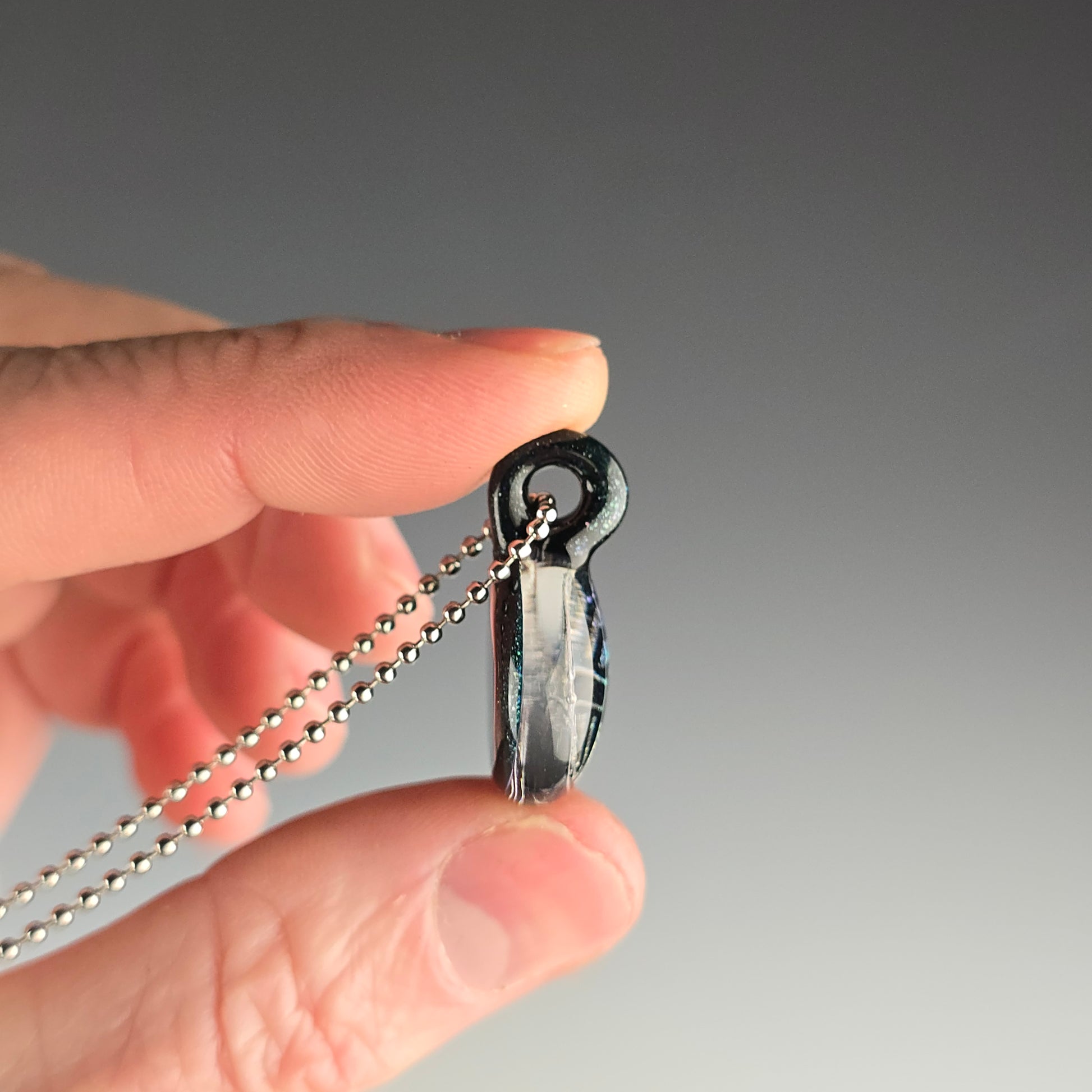 Comes boxed with a ball chain & sticker. If you’d like a different color than the one shown or prefer a colored hemp cord instead, please let me know in the special instruction box at the bottom of the cart page before you checkout.