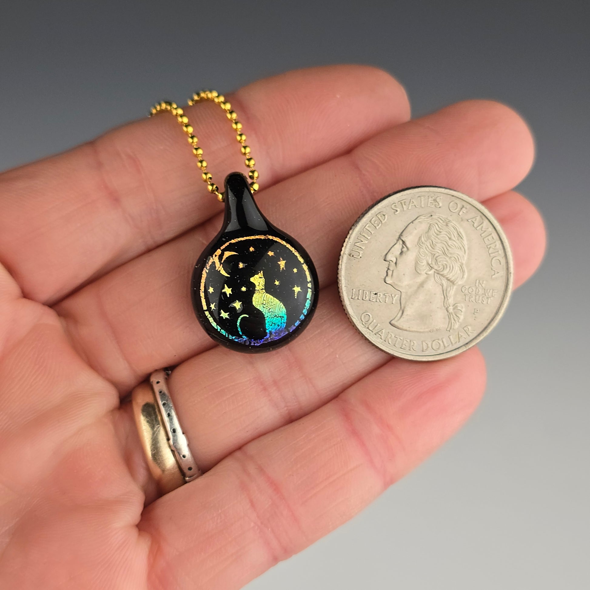 Your pendant will come boxed with a ball chain & sticker. If you prefer a different colored ball chain than the one photographed, please leave that info in the notes section when you check out. Available colors: black, bronze, silver, gold and white silver. I can also replace the ball chain with colored hemp string or suede if you have metal sensitivities.