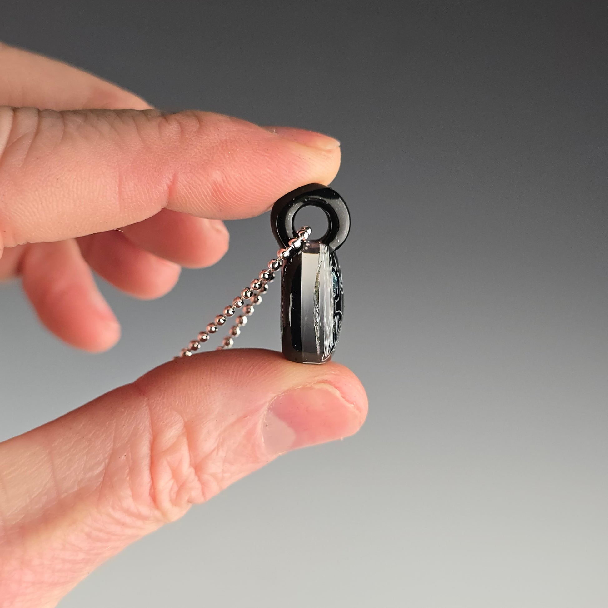 Comes boxed with a ball chain & sticker. If you’d like a different color than the one shown or prefer a colored hemp cord instead, please let me know in the special instruction box at the bottom of the cart page before you checkout.