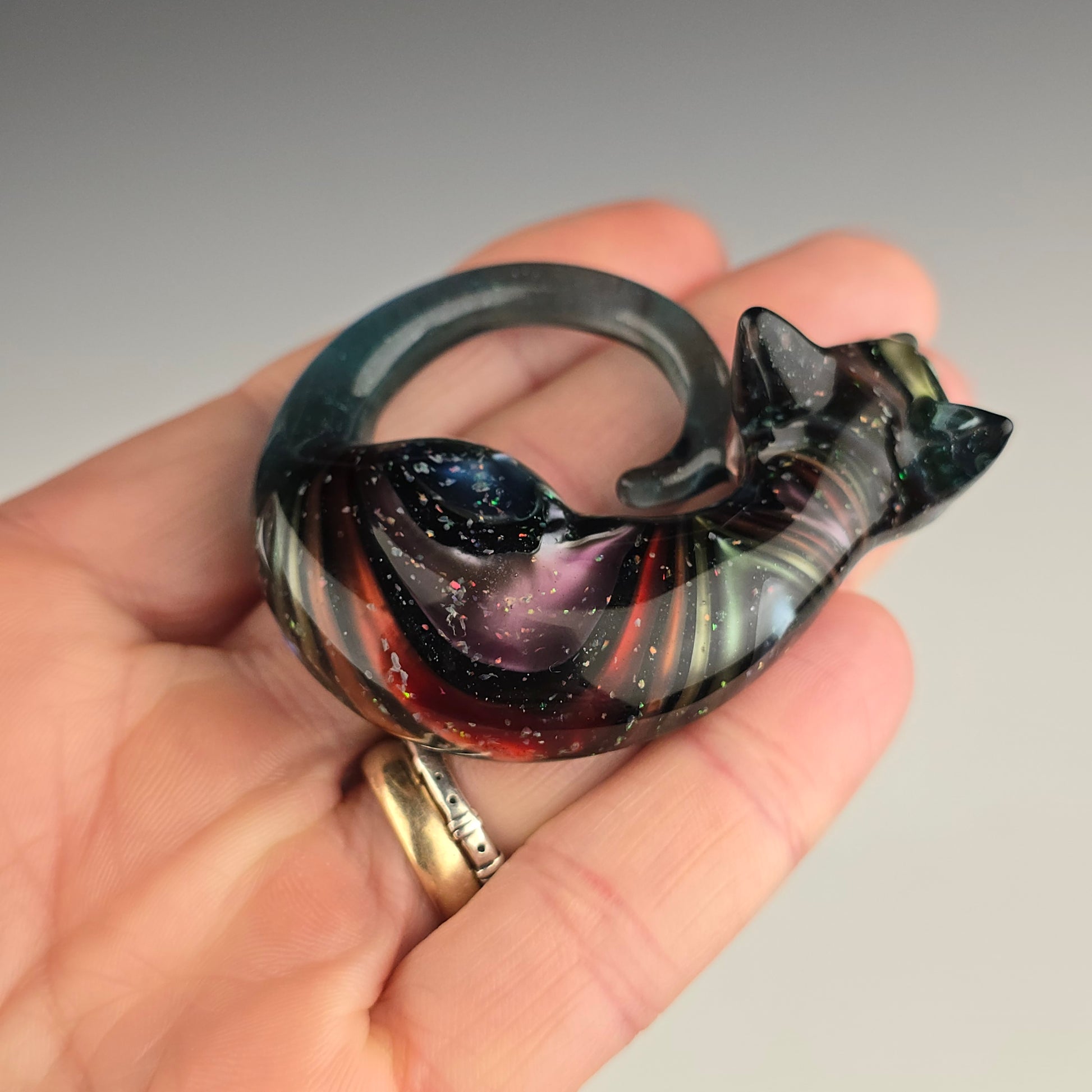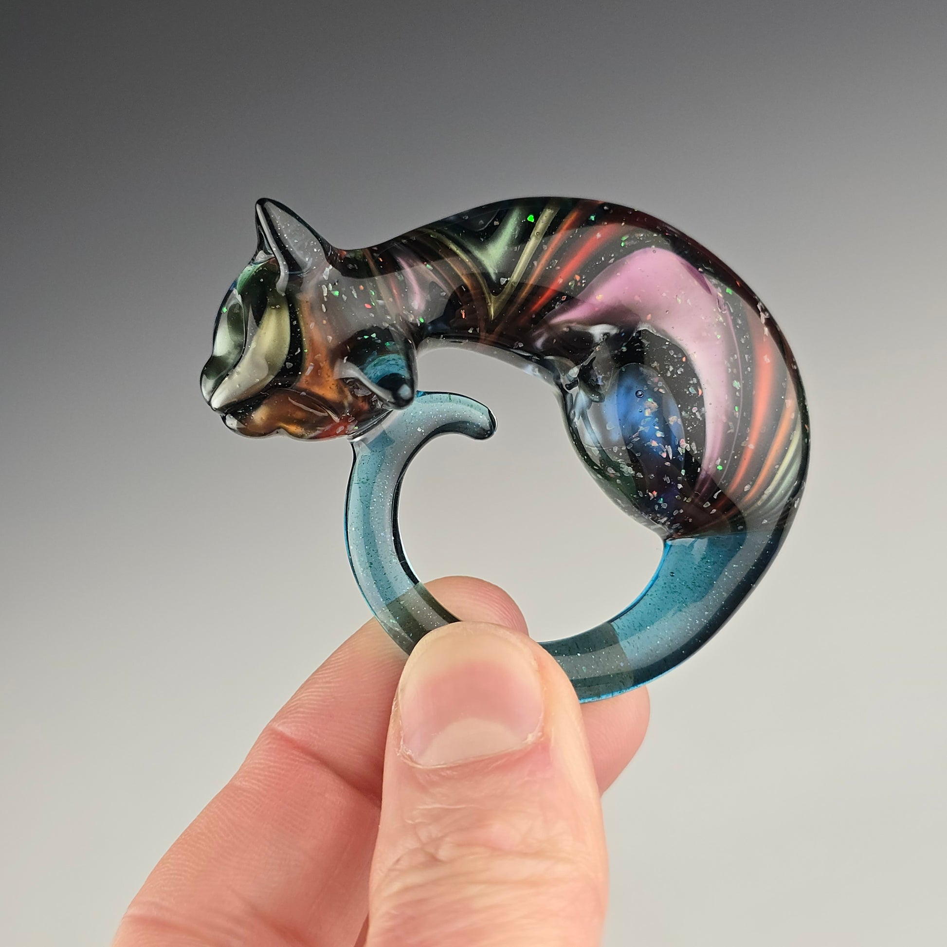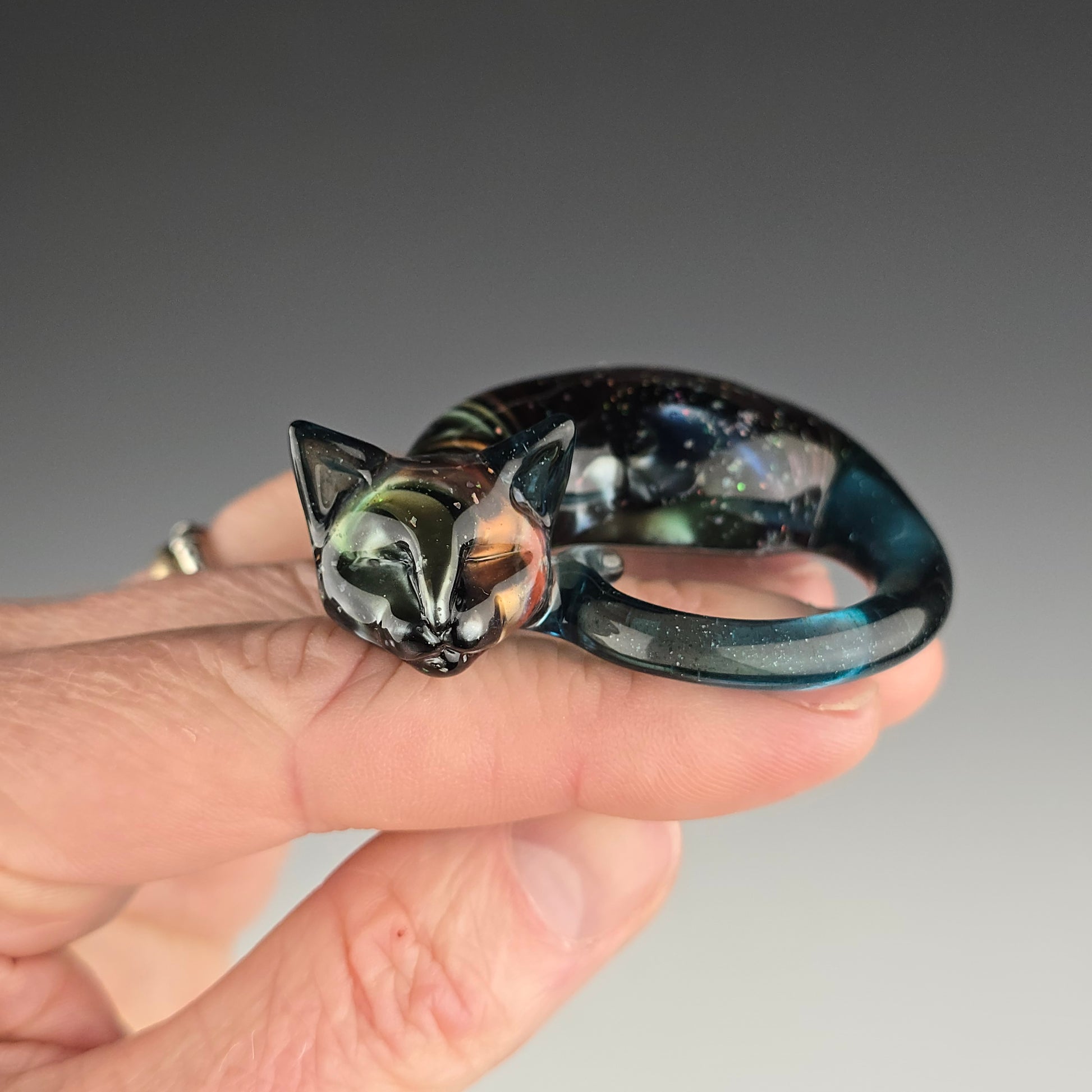 All Sleeping Kitties are individually handcrafted from COE 33 borosilicate glass and kiln annealed to 1050°F to ensure strength and durability. Each one is carefully shaped and carved using graphite & metal tools while glass is hot, making every piece one of a kind. The kitty shown in the listing is the exact one you will receive.