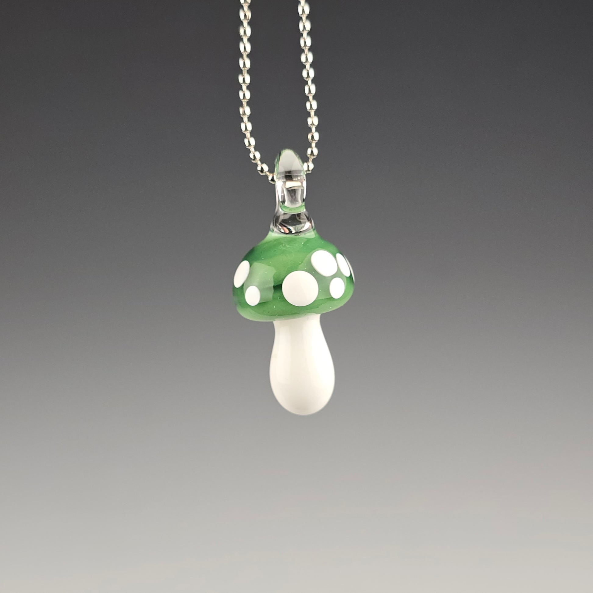 Large Mint Green glass mushroom pendant. See photos for size reference.